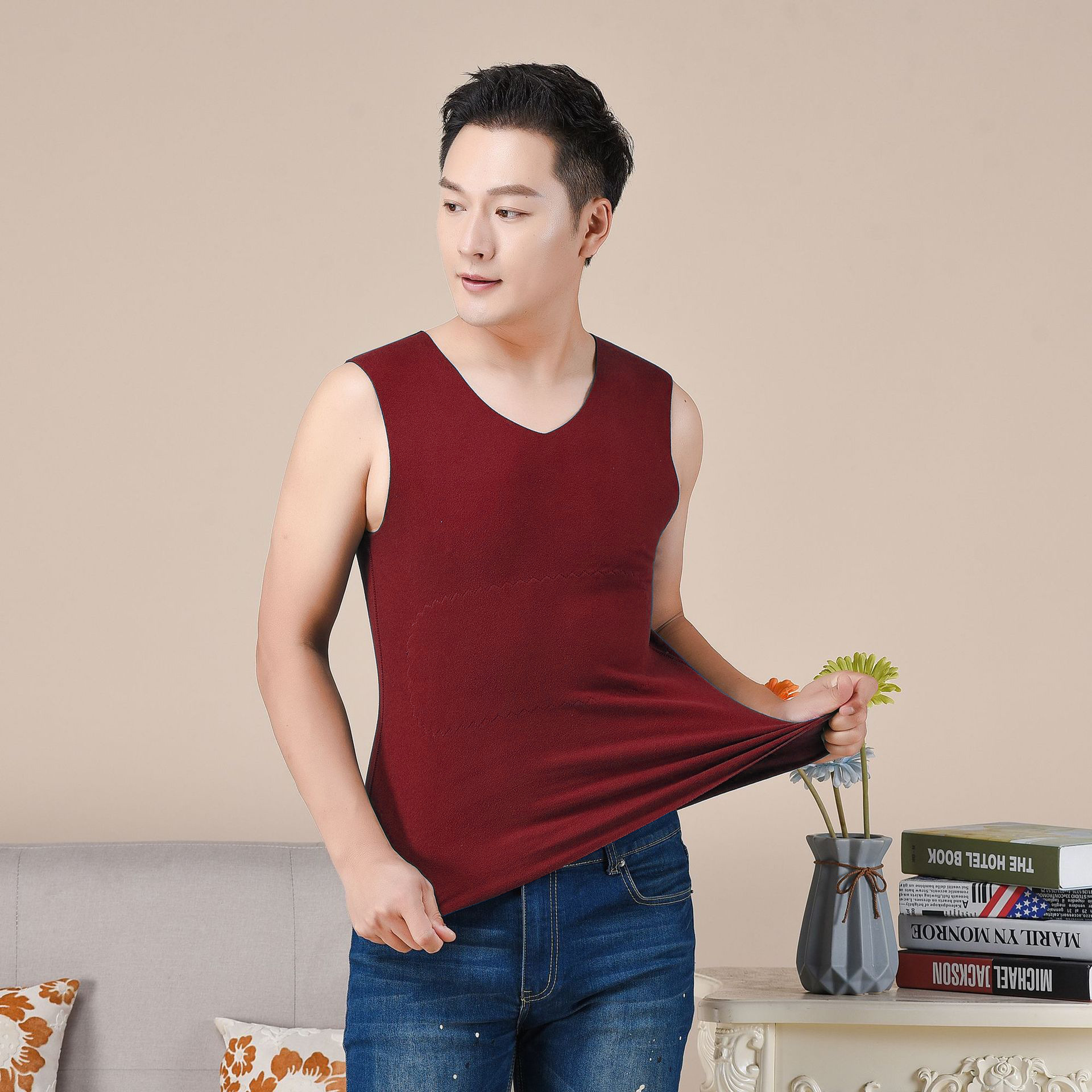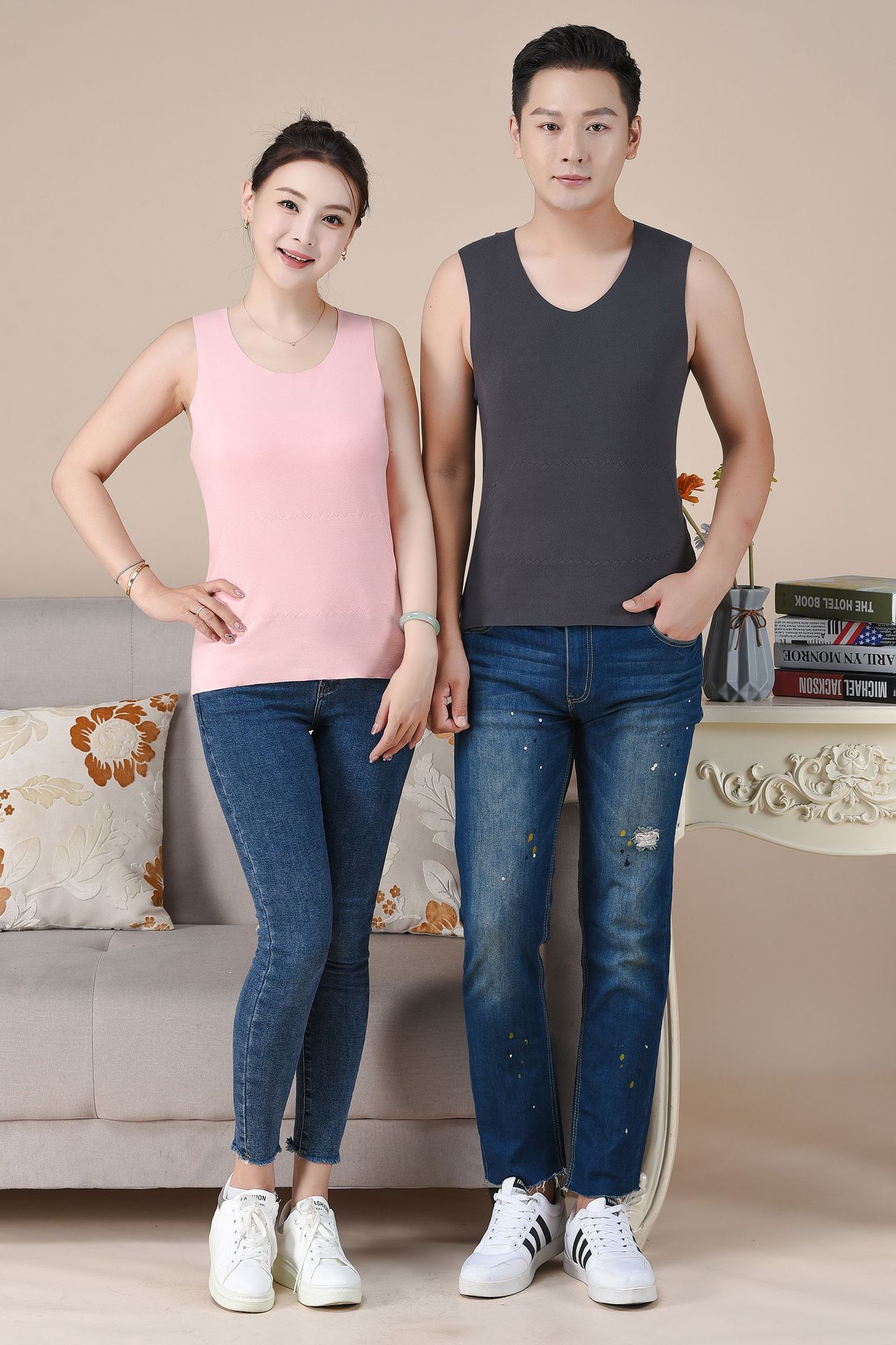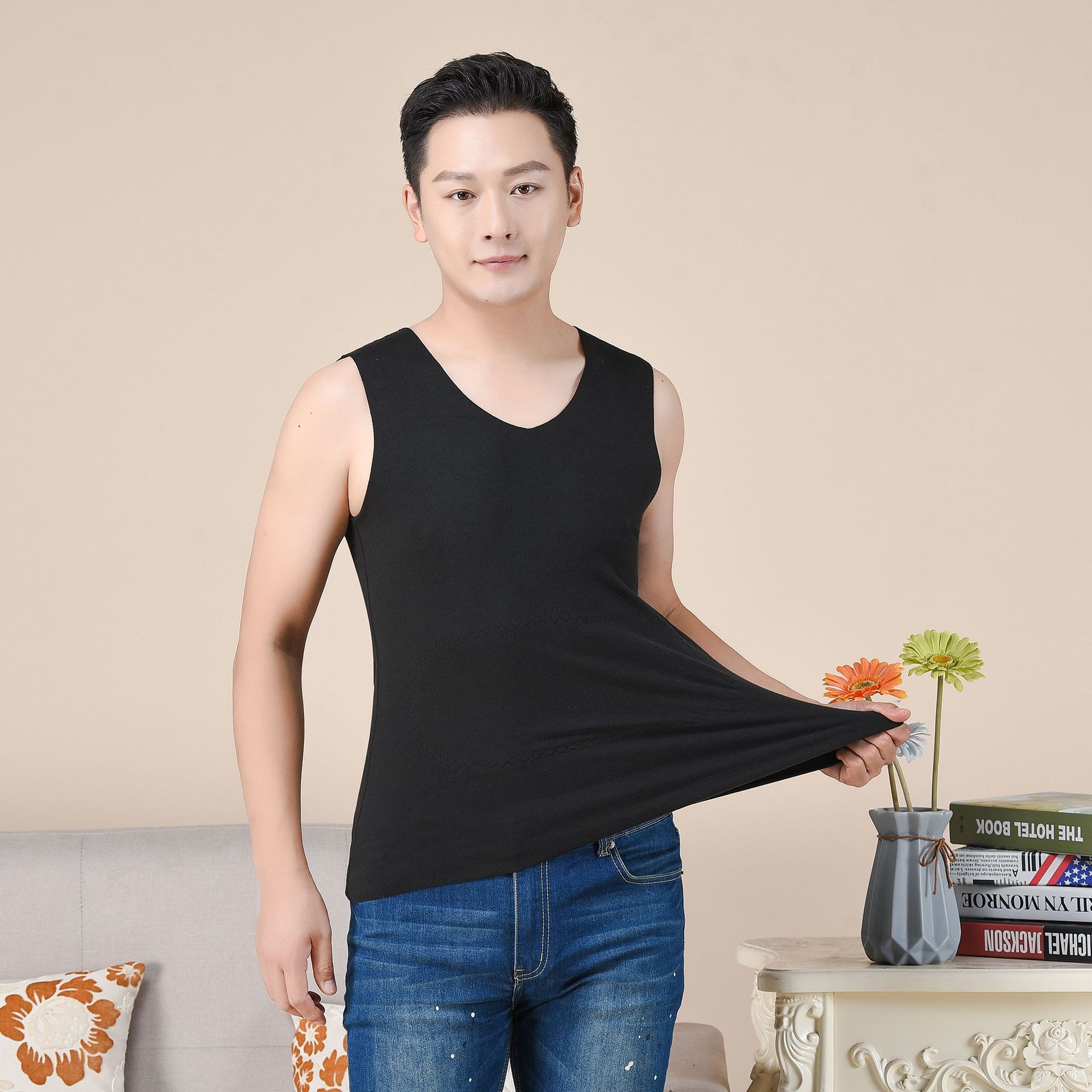 가을 겨울 새로운 스타일의 남성용 따뜻한 조끼 및 여성용 속옷, 데가 벨벳 양면 기모 바닥 셔츠 및 속옷스토어 가기
