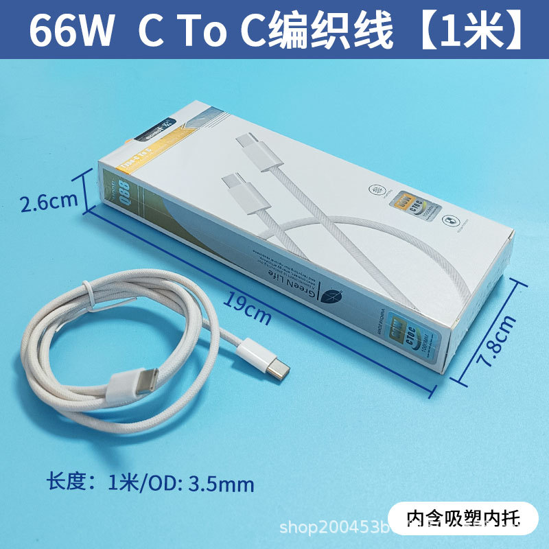 • 1.3m W Apple 15/16 c to c 인터페이스 편조 고속 충전 케이블(플라스틱 상자 내) [전체 구리 코어]