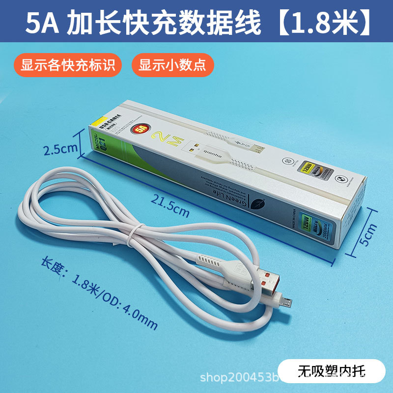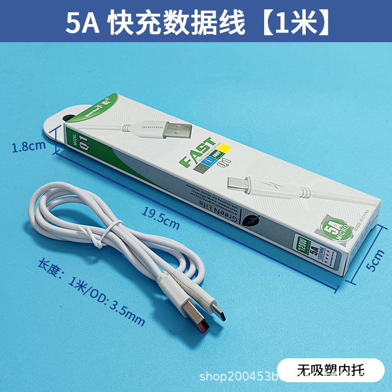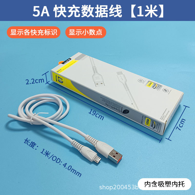 • 1.12m W Android 마이크로 사다리꼴 인터페이스 플라스틱 박스형 고속 충전 케이블 [전체 구리 코어 5.0 두꺼운 와이어]