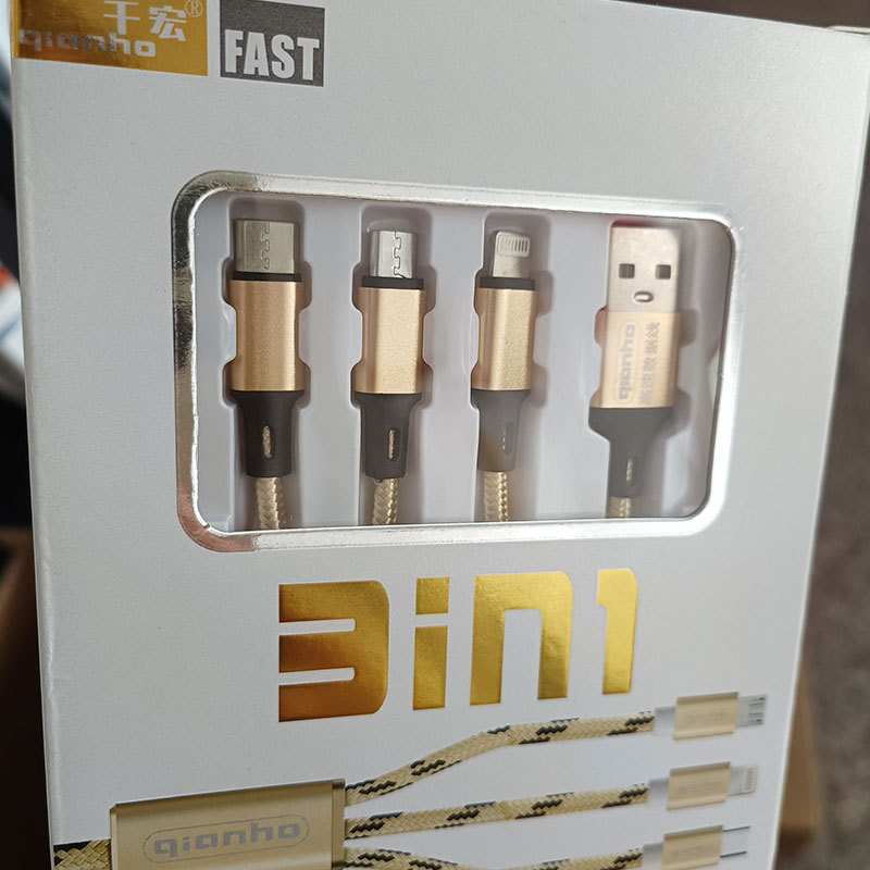 전체 구리 코어 박스형 휴대 전화 충전 데이터 케이블 도매 안드로이드 애플 타입-c 플래시 충전 화웨이 빠른 충전 라인스토어 가기