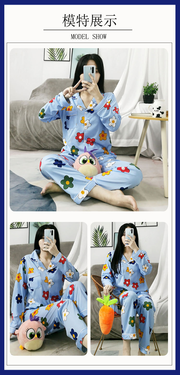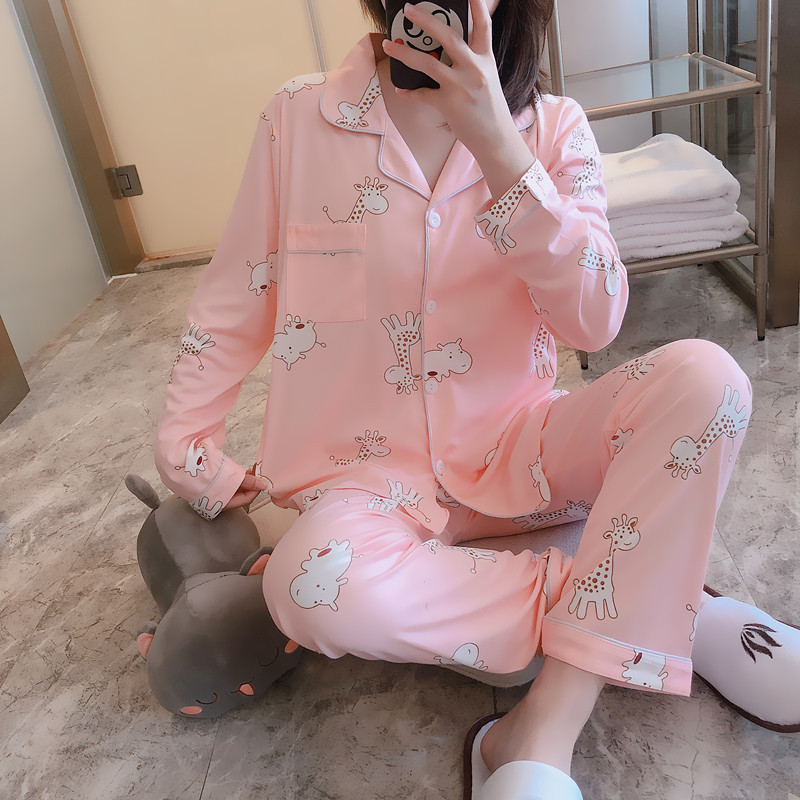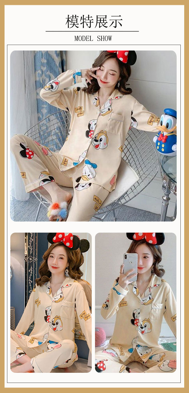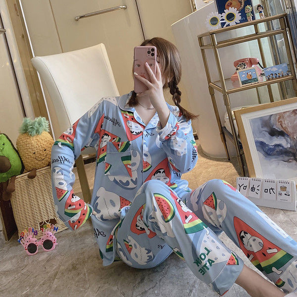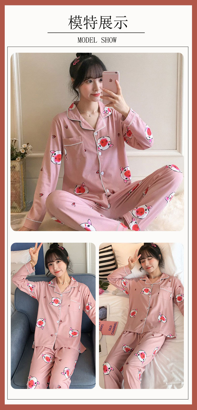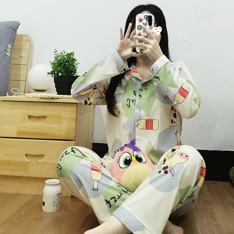 Vigor 소녀 만화 인형 잠옷 여성의 봄과 가을 옷깃 카디건 홈 옷 느슨한 젊은 여성의 세트스토어 가기