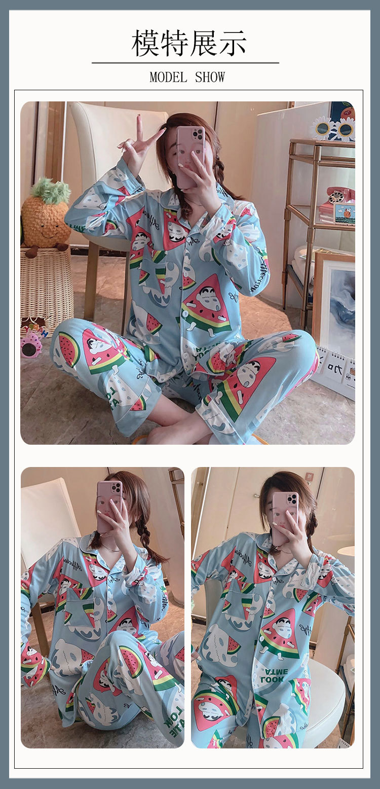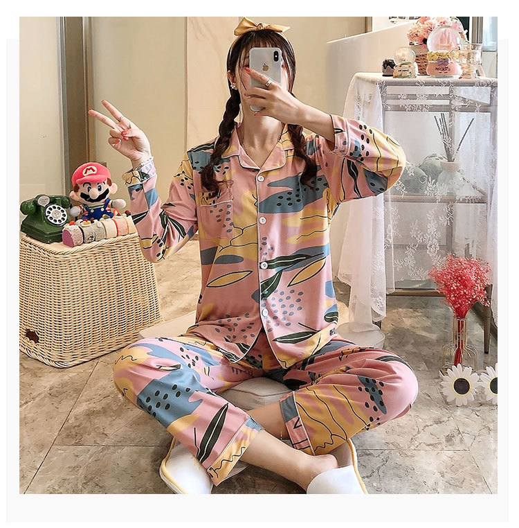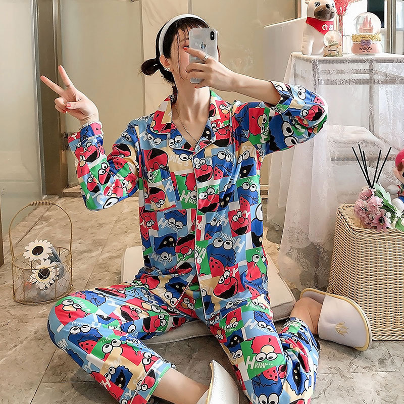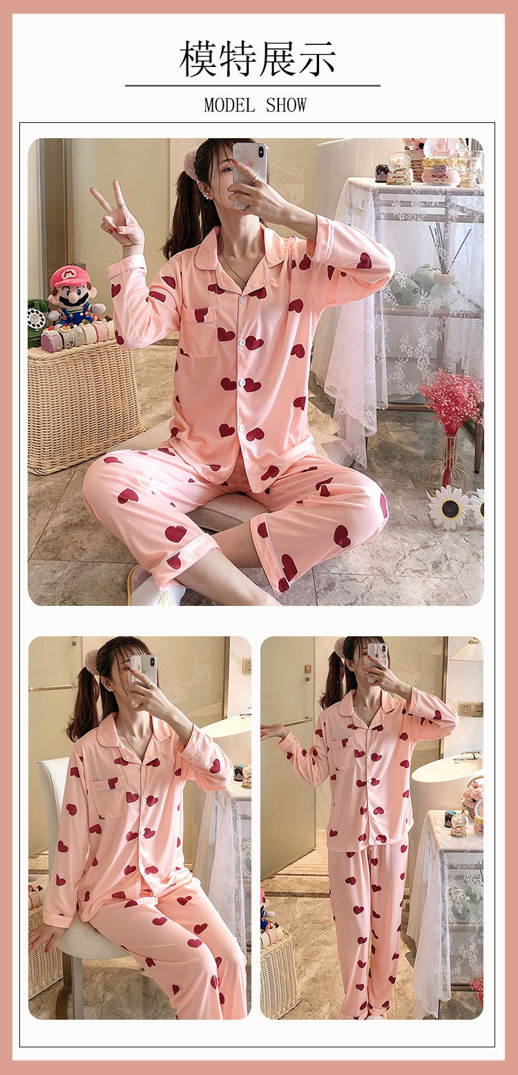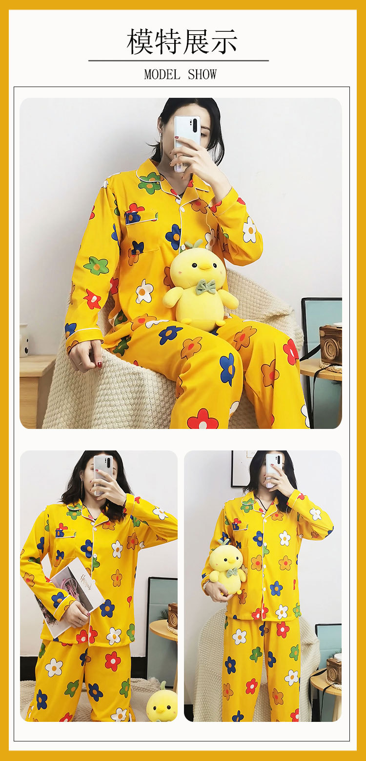 Vigor 소녀 만화 인형 잠옷 여성의 봄과 가을 옷깃 카디건 홈 옷 느슨한 젊은 여성의 세트스토어 가기