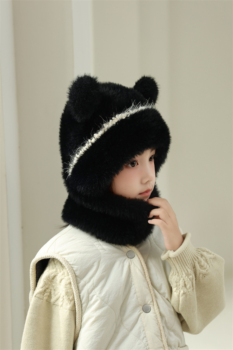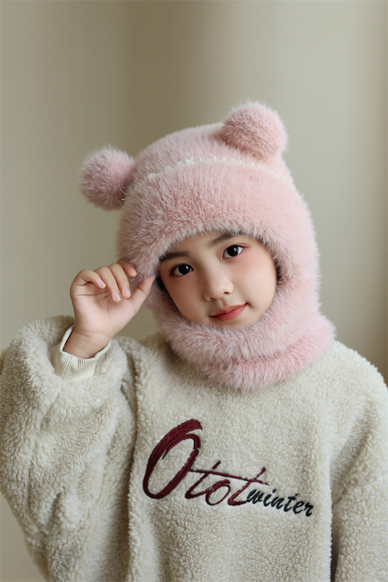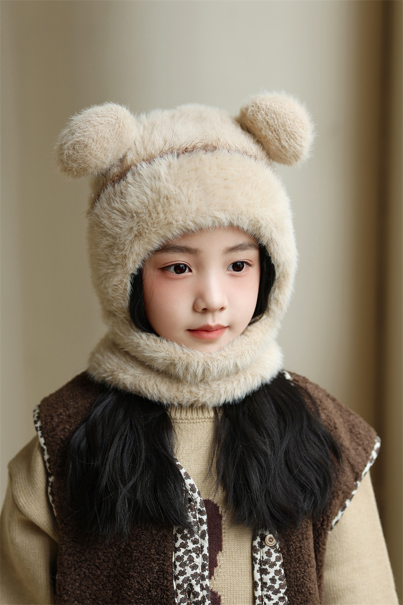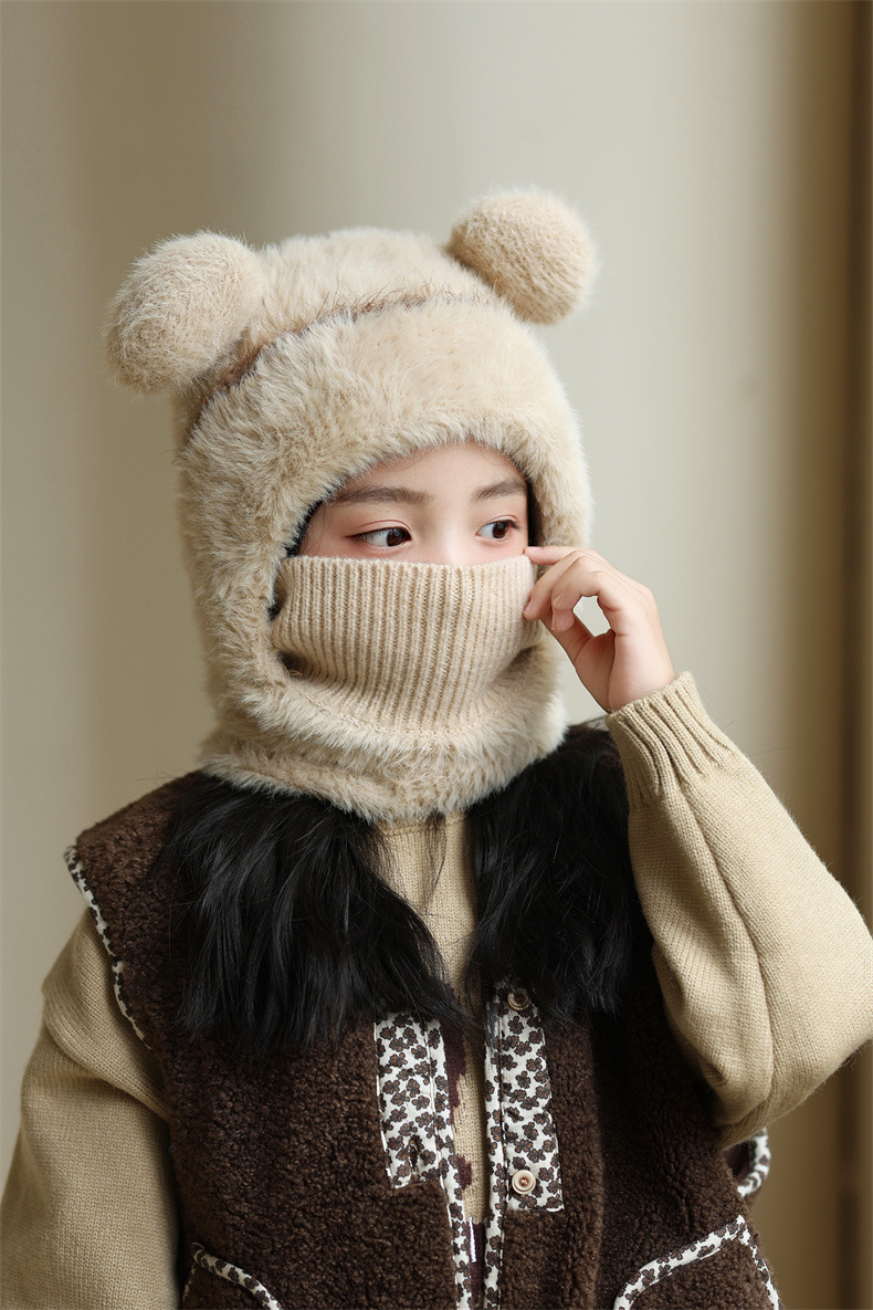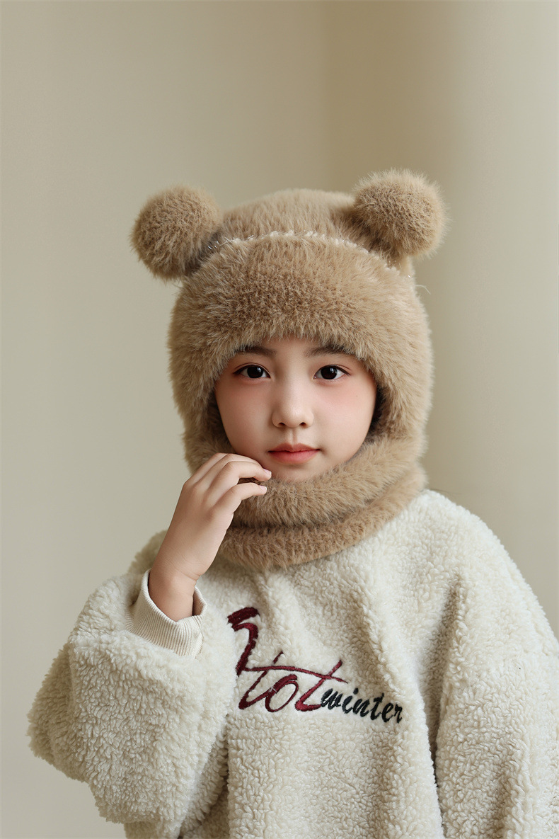 소녀와 소년을 위한 어린이 모직 니트 모자, 가을 겨울 스카프, 일체형 후드 아기 방풍 귀 보호 따뜻한 풀오버 모자