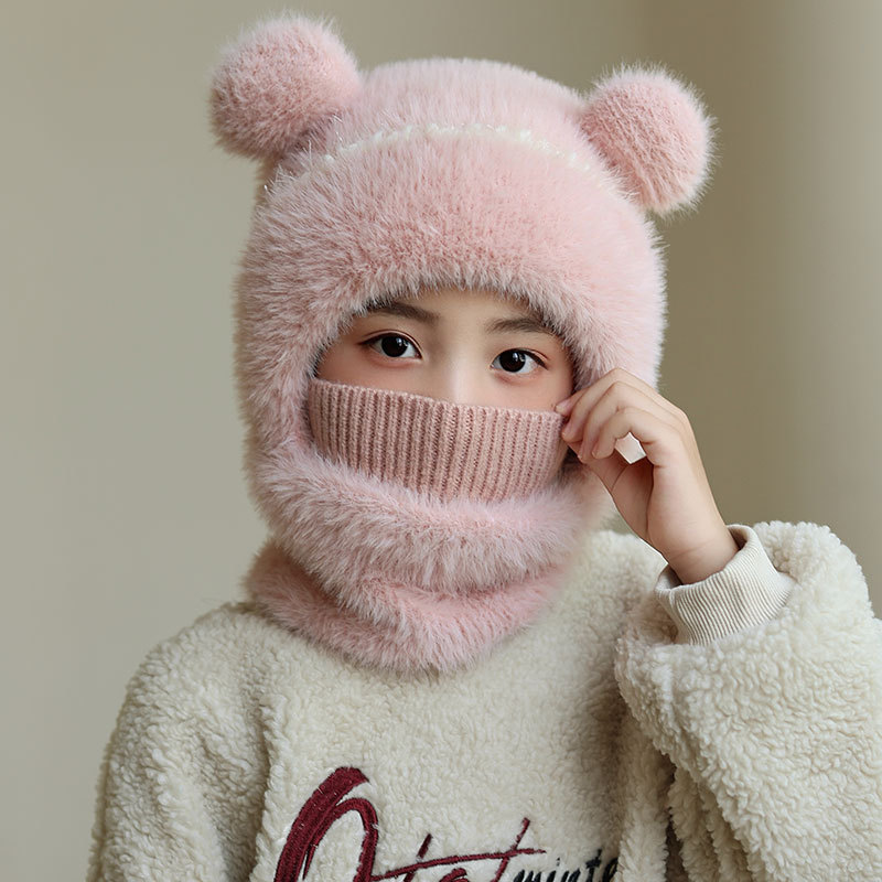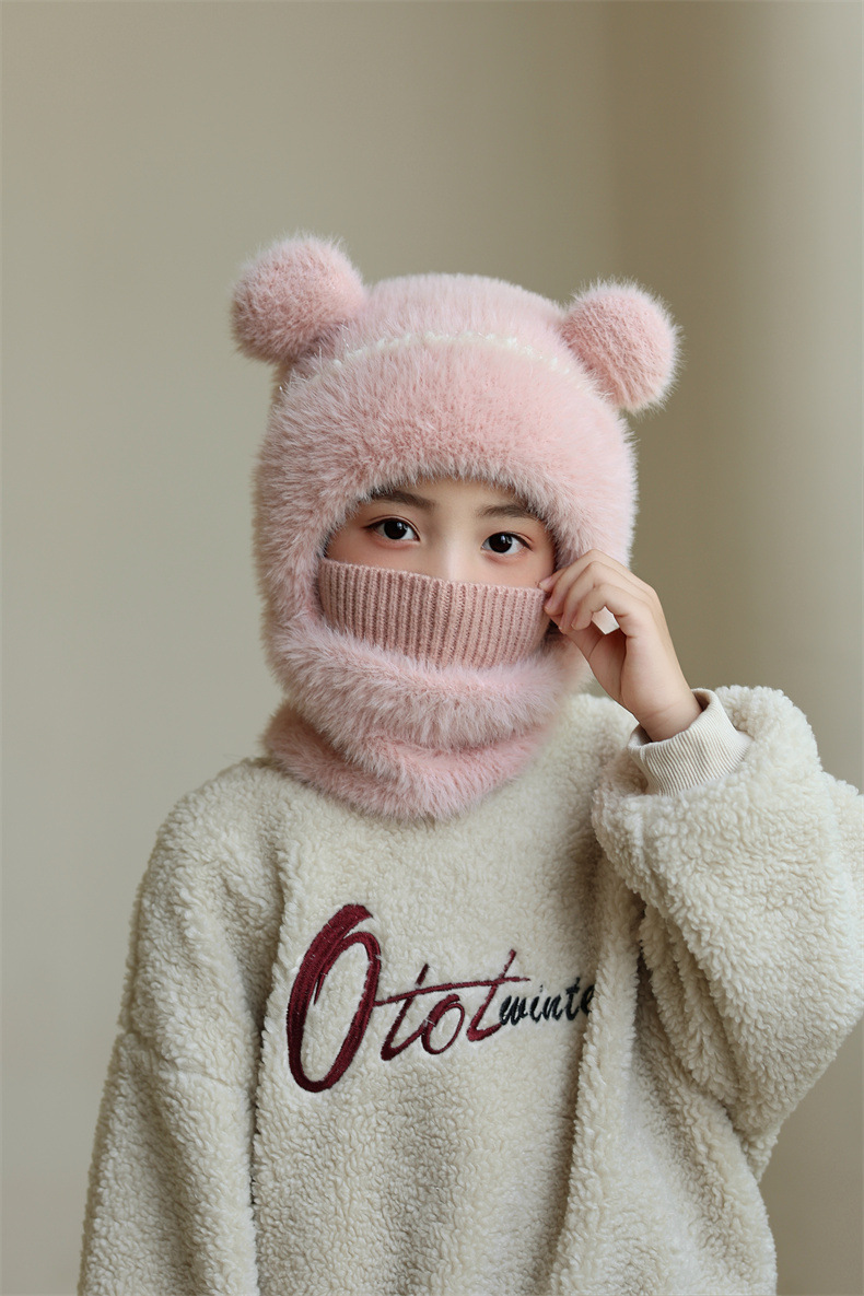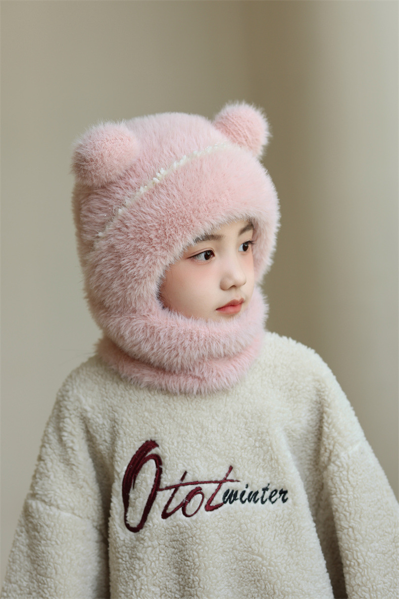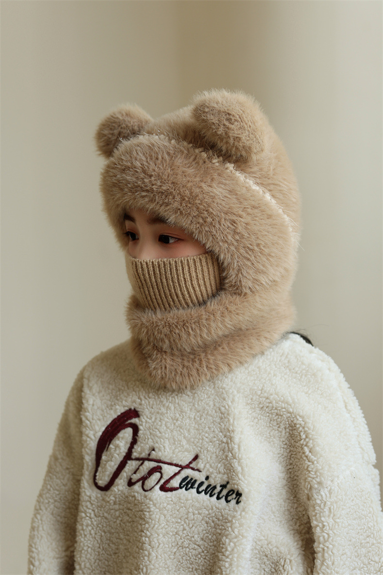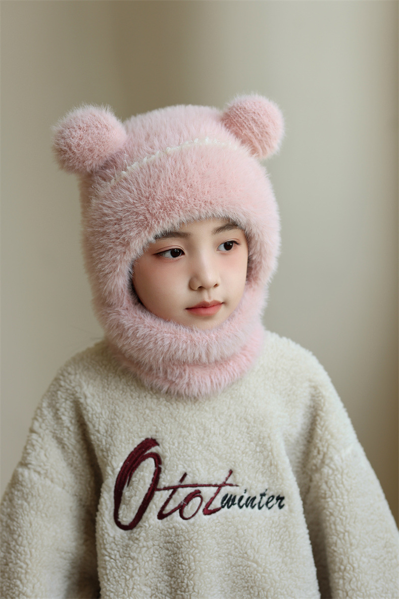 소녀와 소년을 위한 어린이 모직 니트 모자, 가을 겨울 스카프, 일체형 후드 아기 방풍 귀 보호 따뜻한 풀오버 모자