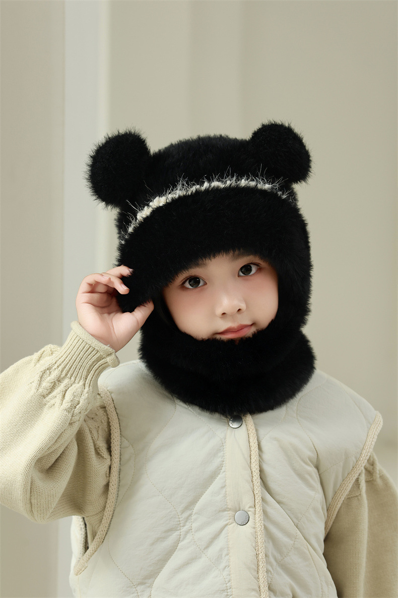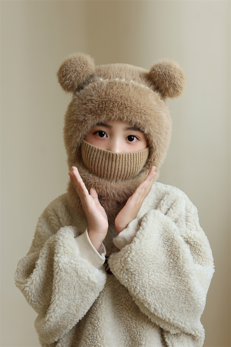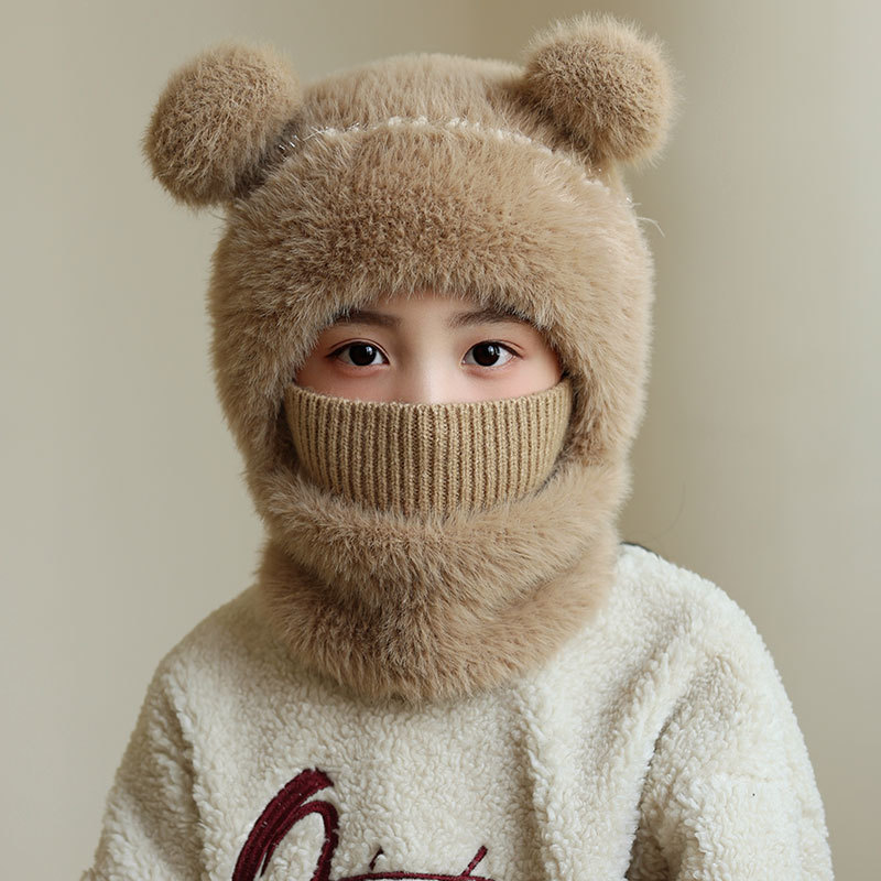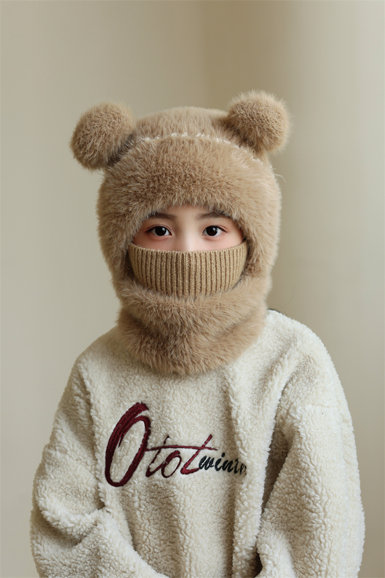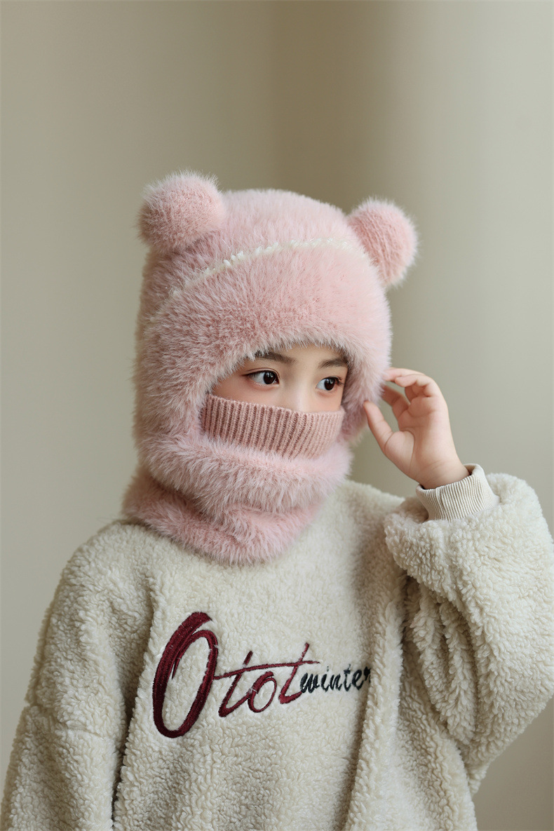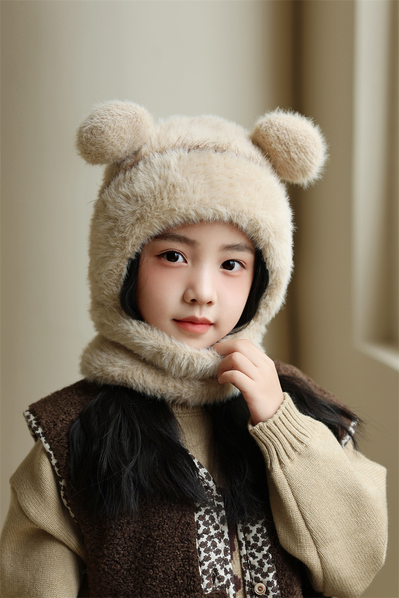 소녀와 소년을 위한 어린이 모직 니트 모자, 가을 겨울 스카프, 일체형 후드 아기 방풍 귀 보호 따뜻한 풀오버 모자