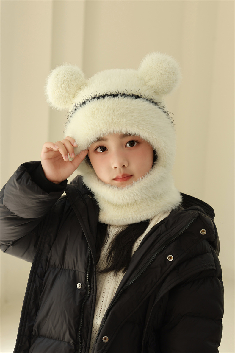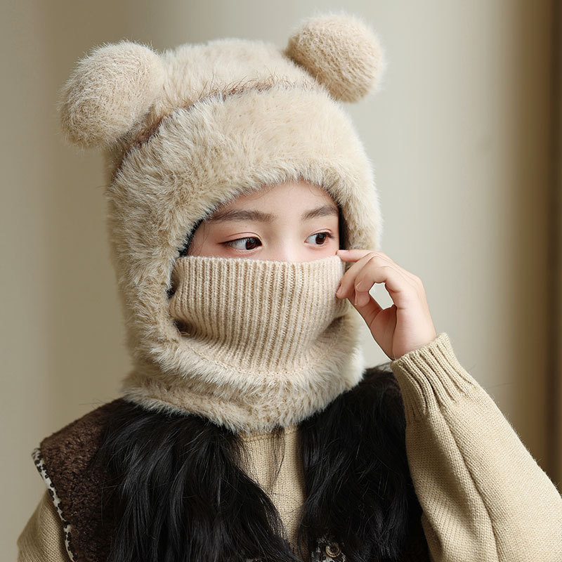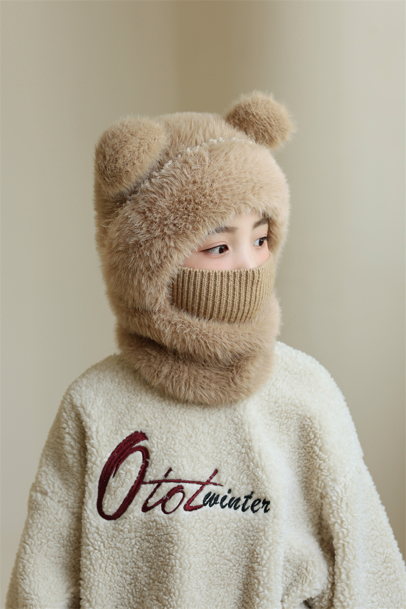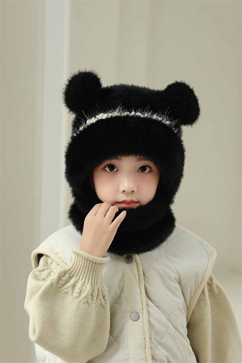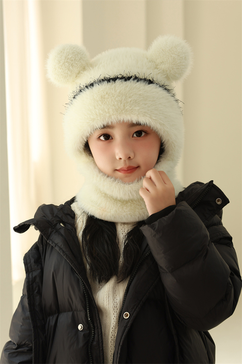 소녀와 소년을 위한 어린이 모직 니트 모자, 가을 겨울 스카프, 일체형 후드 아기 방풍 귀 보호 따뜻한 풀오버 모자