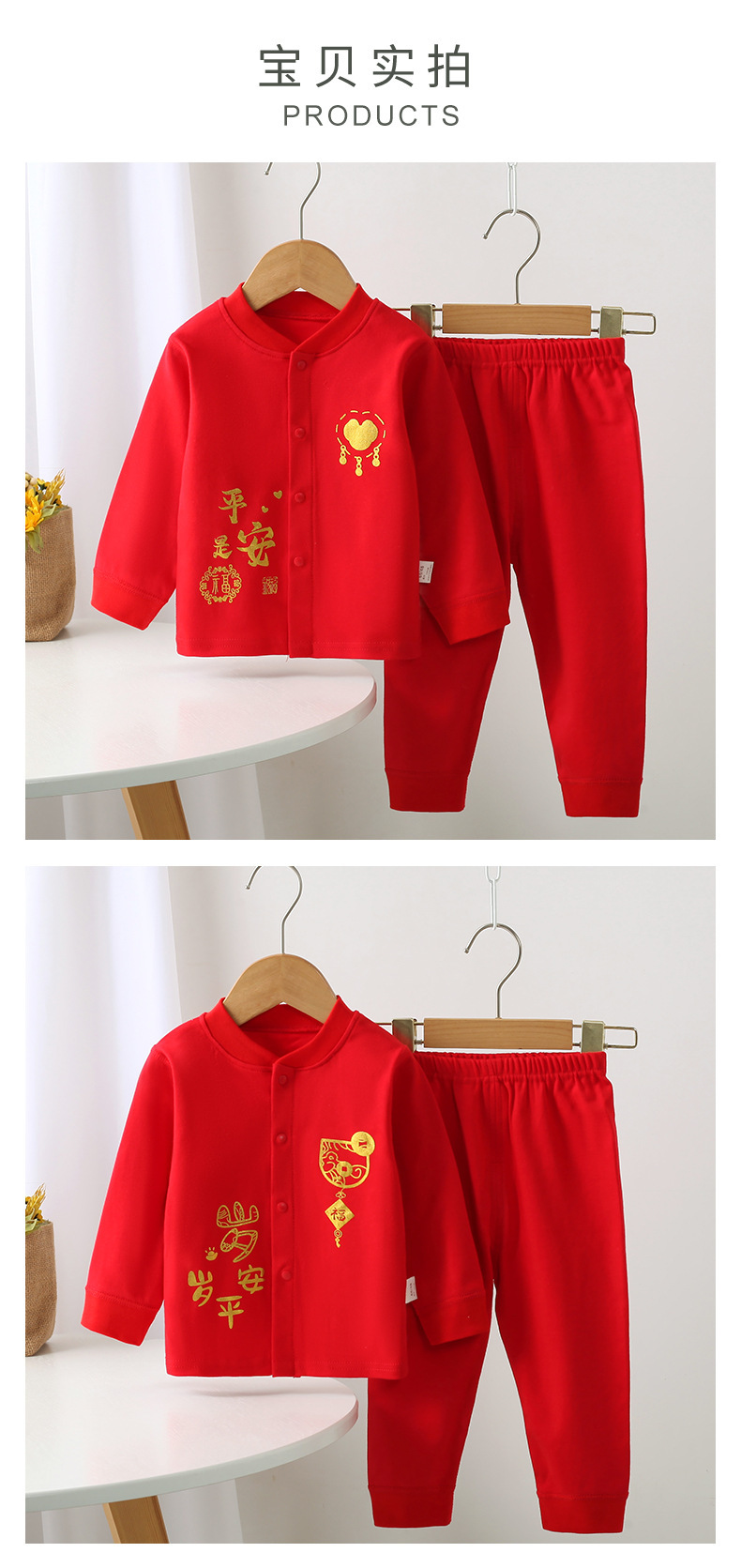 가을과 겨울 새로운 어린이 빨간 속옷 세트 소년 소녀 아기 겉옷 투피스 레드 스플릿 탈착식 가랑이 바지스토어 가기