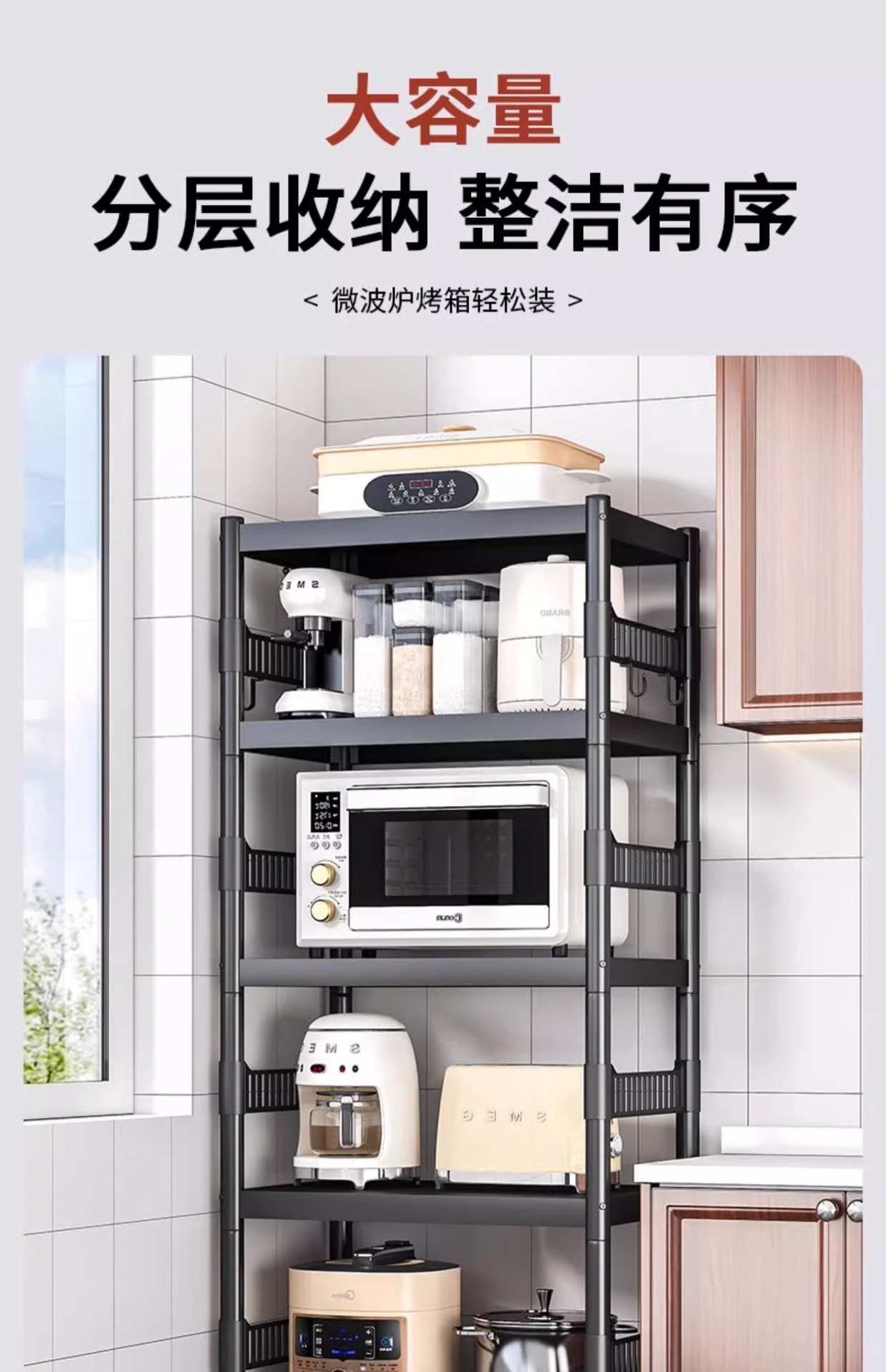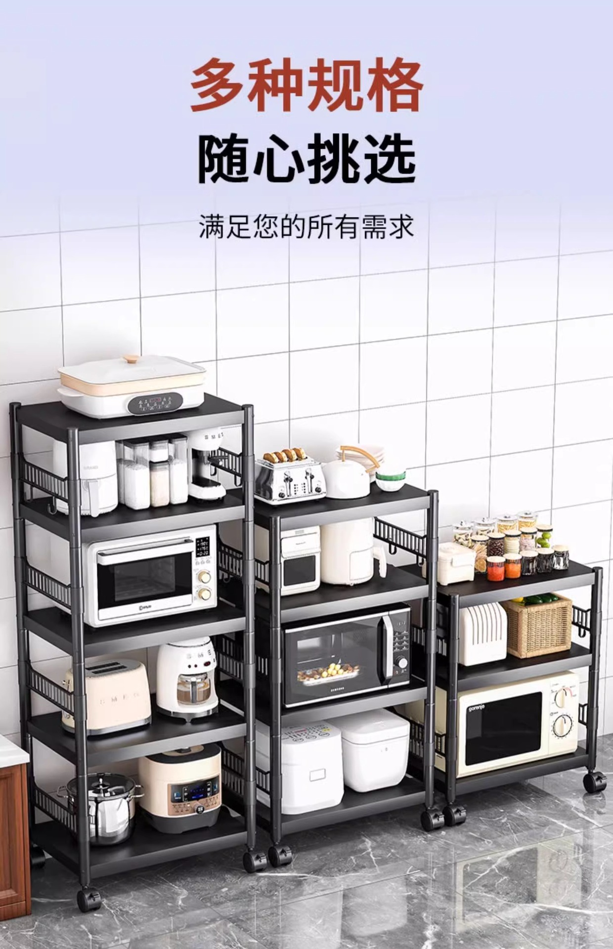 다층 가정용 스토리지 랙 바닥 서 움직일 수있는 전자 레인지 냄비 랙 수직 주방 스토리지 랙