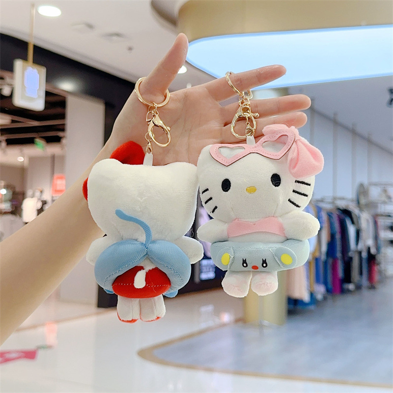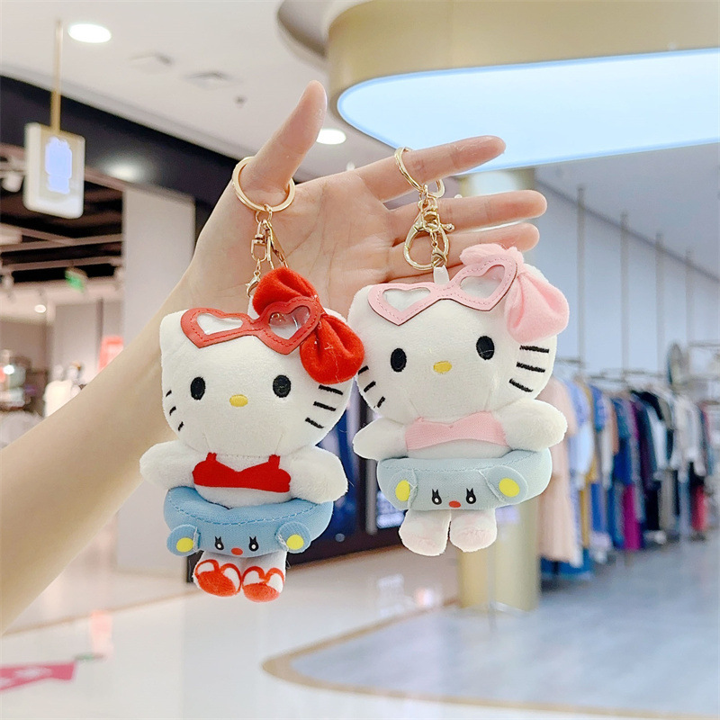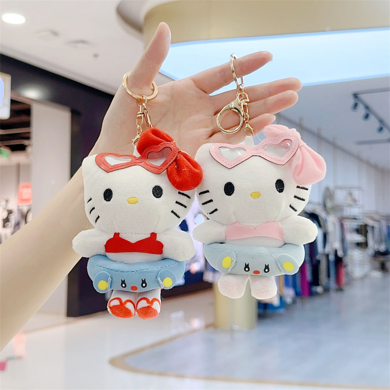 새로운 만화 KT 키 체인 창조적 인 디자인 수영 반지 비키니 고양이 봉제 인형 백팩 봉제 펜던트스토어 가기