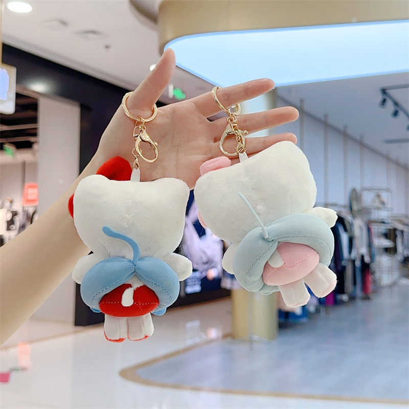 새로운 만화 KT 키 체인 창조적 인 디자인 수영 반지 비키니 고양이 봉제 인형 백팩 봉제 펜던트