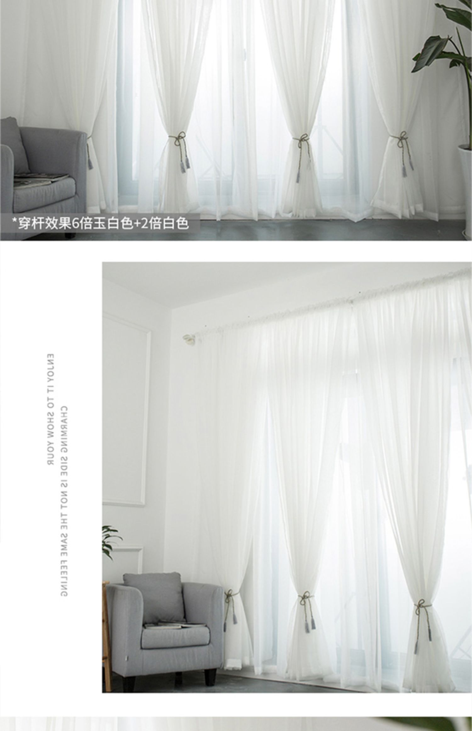 ♡ 커튼 완제품 창 스크린 얇은 명주 그물 목가적 인 간단한 발코니 거실 침실 태양 보호 차광 창 흰색 거즈 판타지