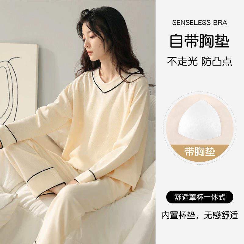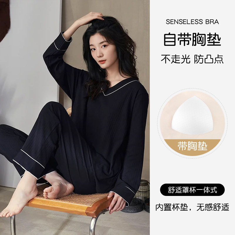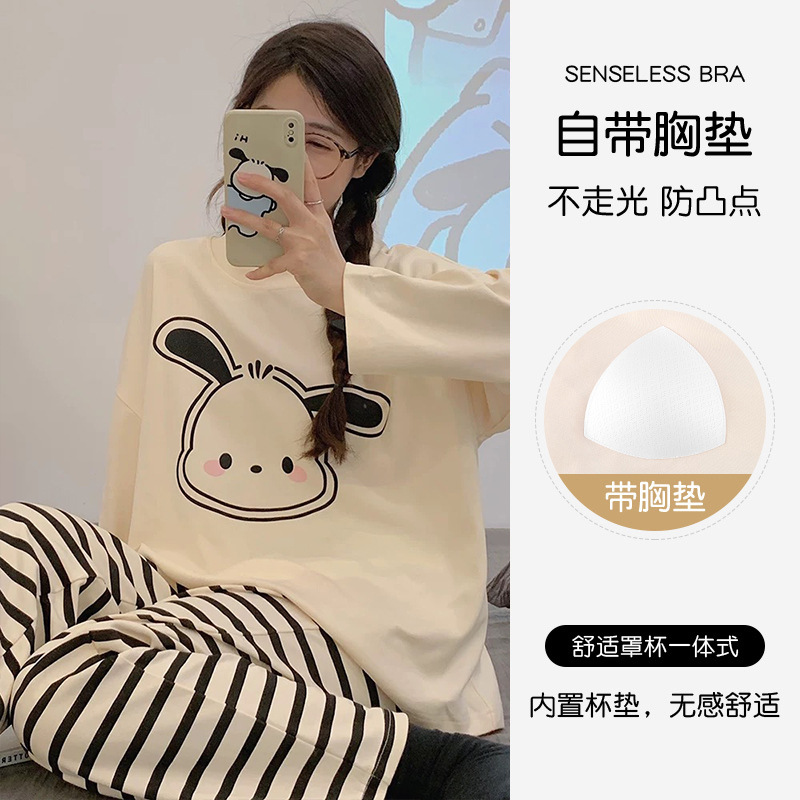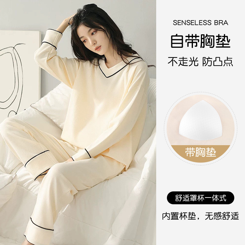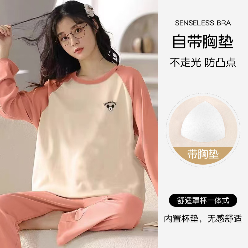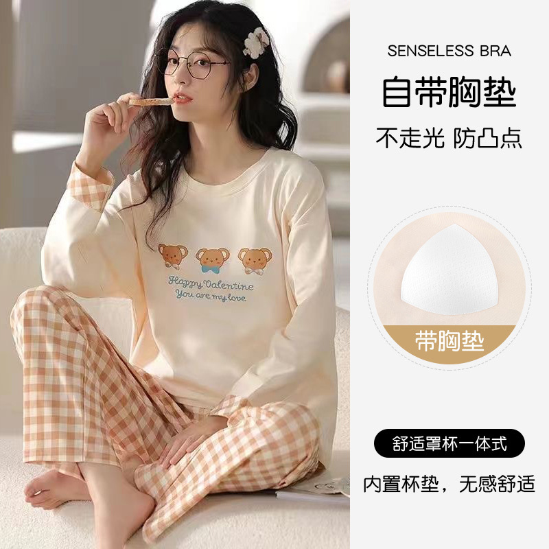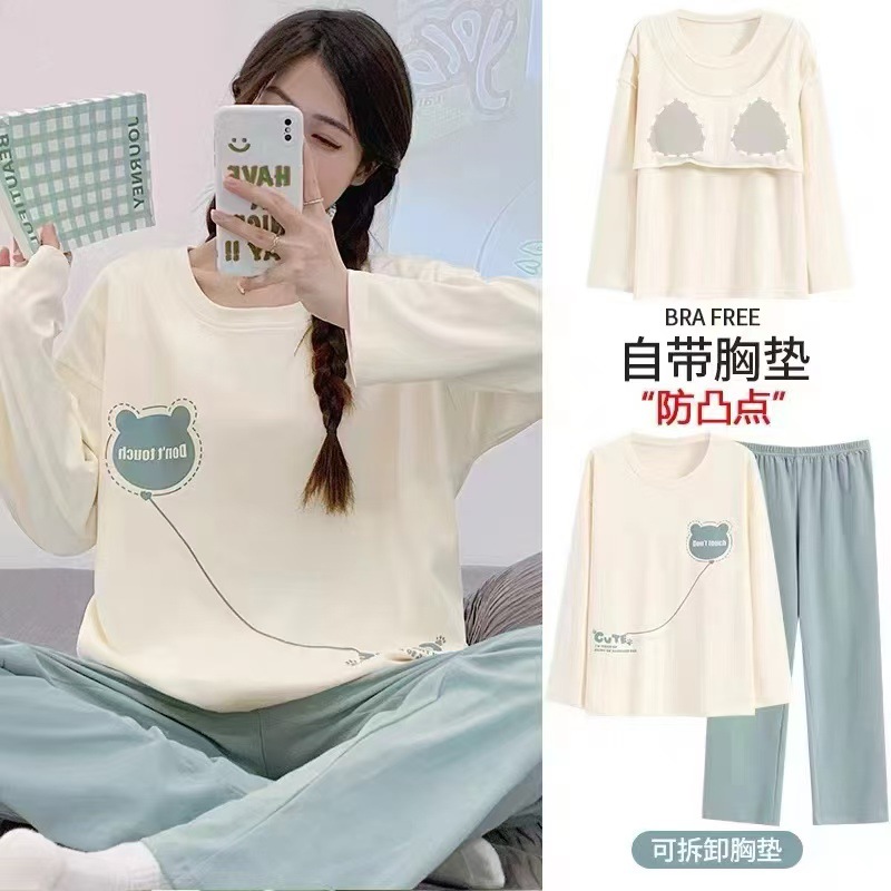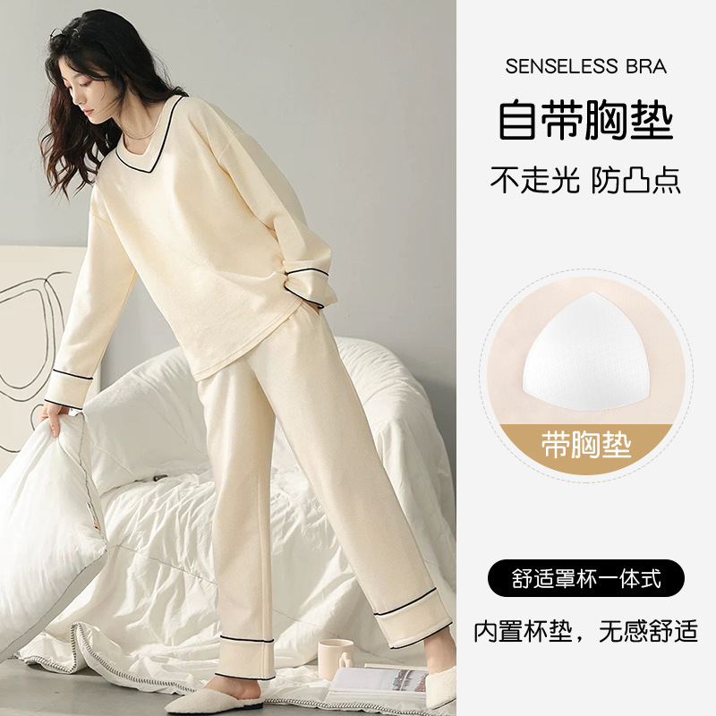 파자마 여성의 가을과 겨울 2024 새로운 스타일 가슴 패드 긴 소매 바지 느슨한 외부 착용 홈 의류 세트스토어 가기