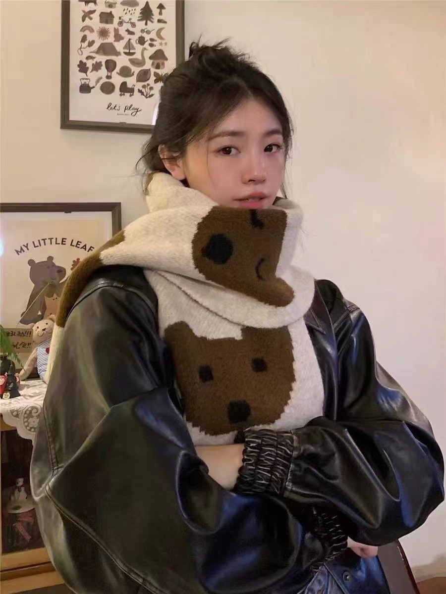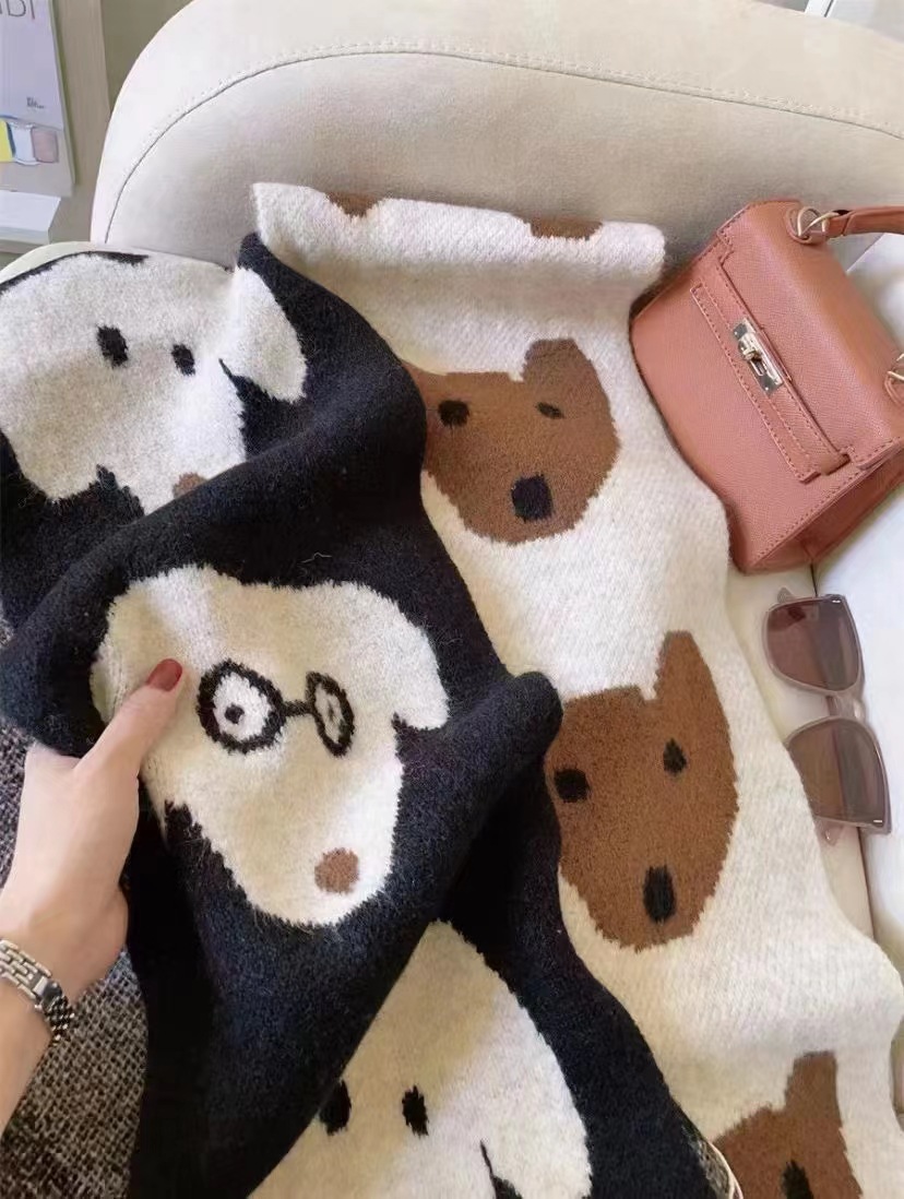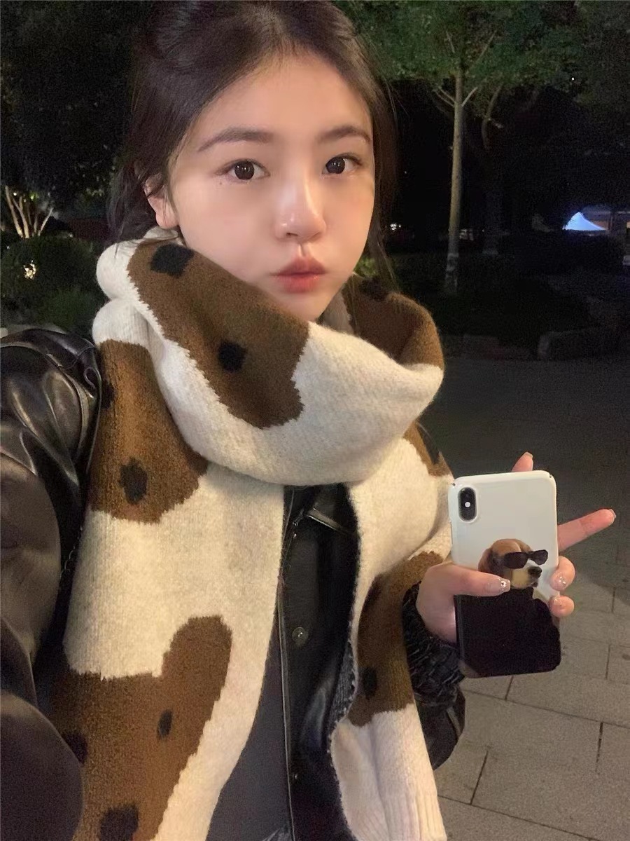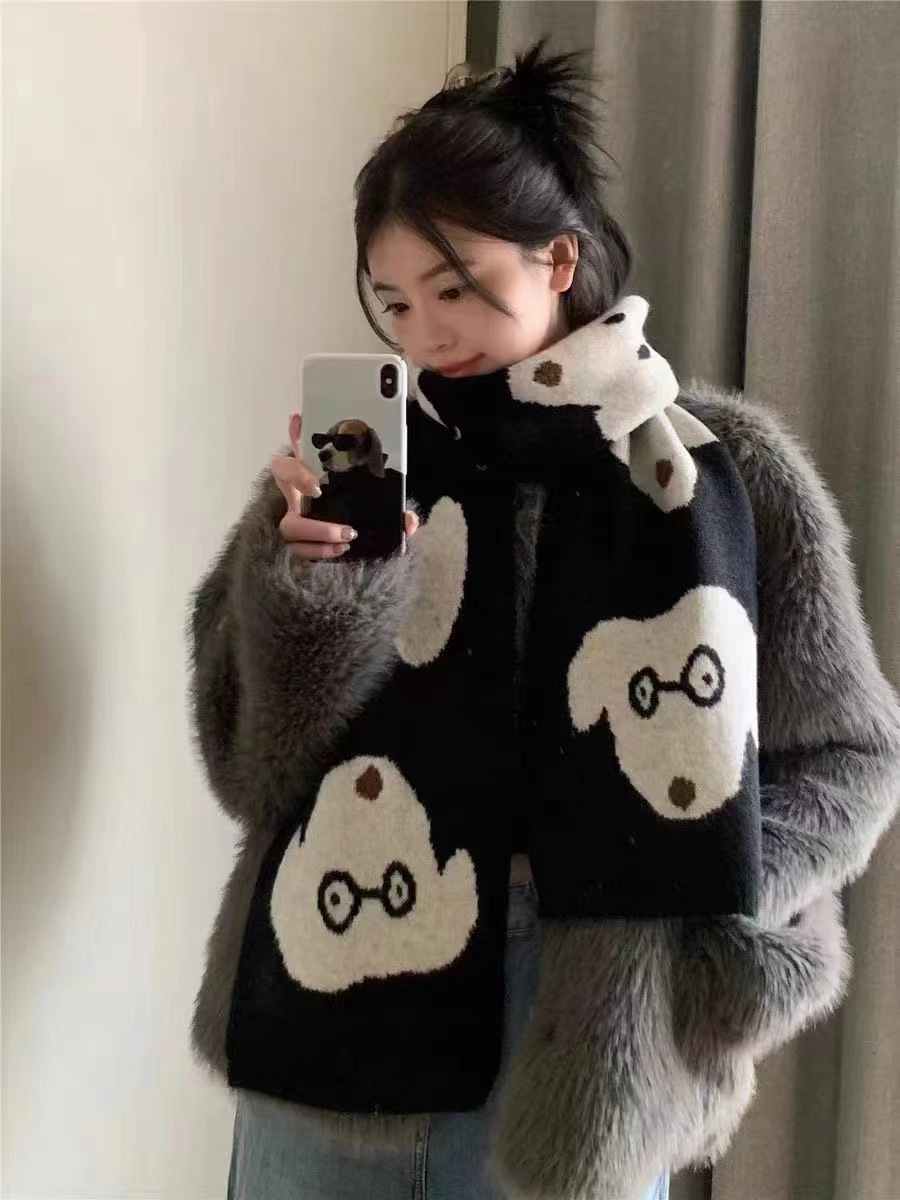 일본 귀여운 강아지 짧은 니트 스카프 여성의 가을과 겨울 냉온 보온 커플 울 스카프