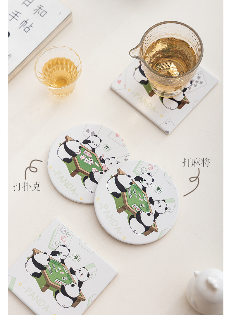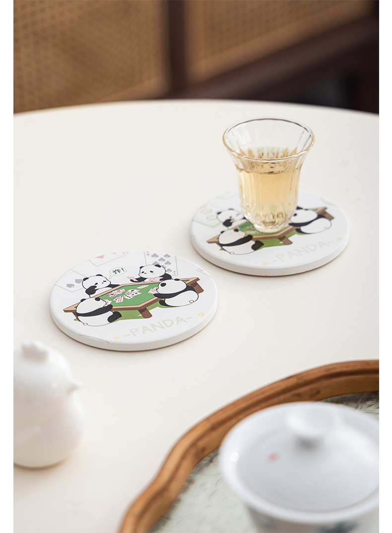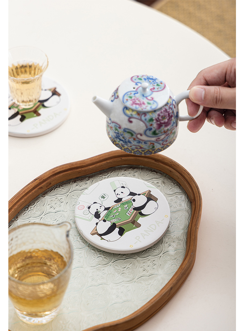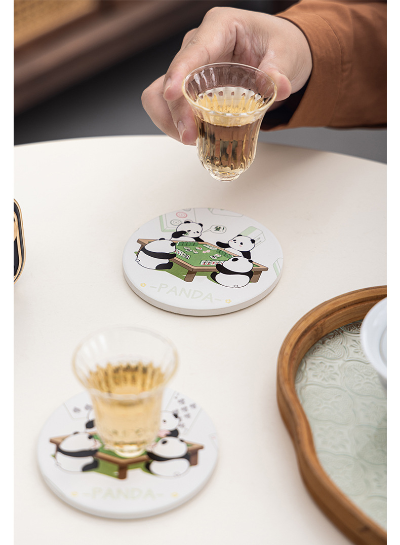 원래 팬더 마작 타격 계란 흡수 세라믹 티 컵 매트 새로운 중국 스타일 동반 손 세례 로고