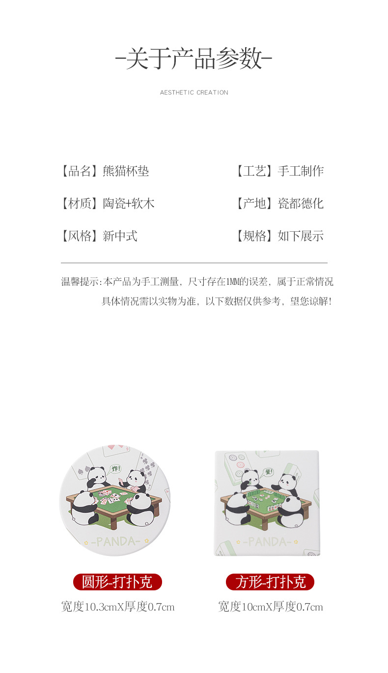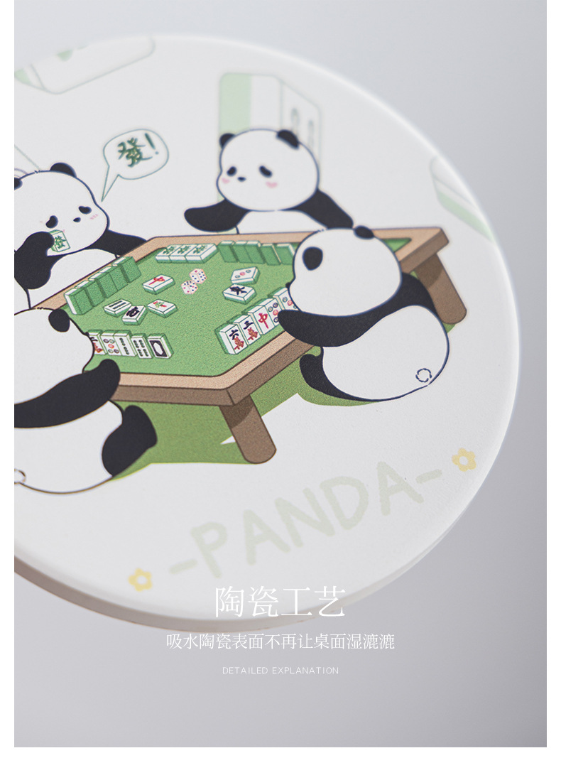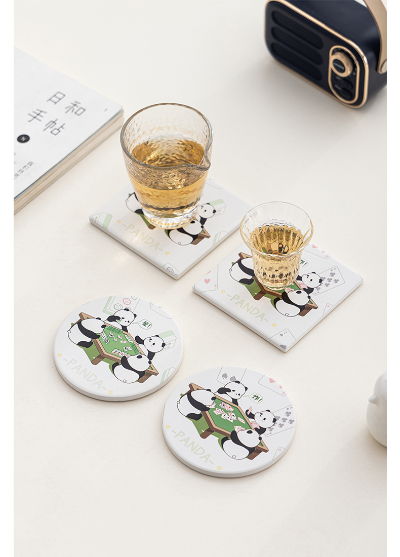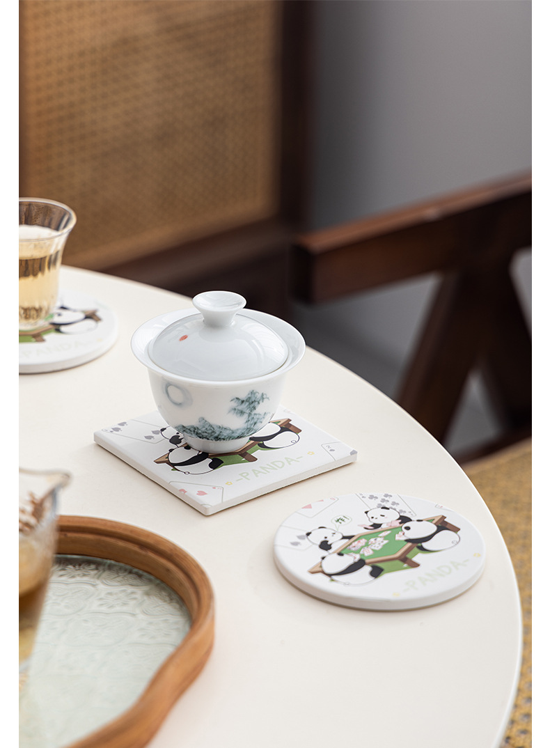 원래 팬더 마작 타격 계란 흡수 세라믹 티 컵 매트 새로운 중국 스타일 동반 손 세례 로고