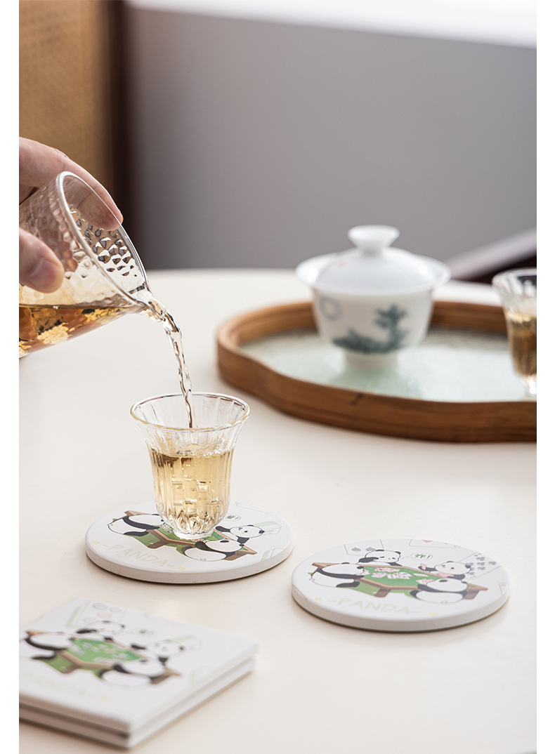 원래 팬더 마작 타격 계란 흡수 세라믹 티 컵 매트 새로운 중국 스타일 동반 손 세례 로고스토어 가기