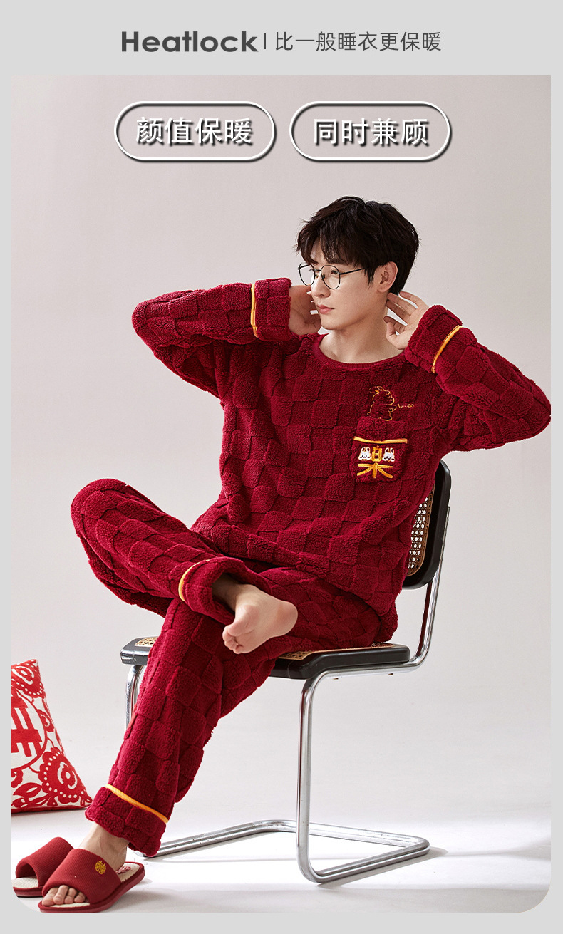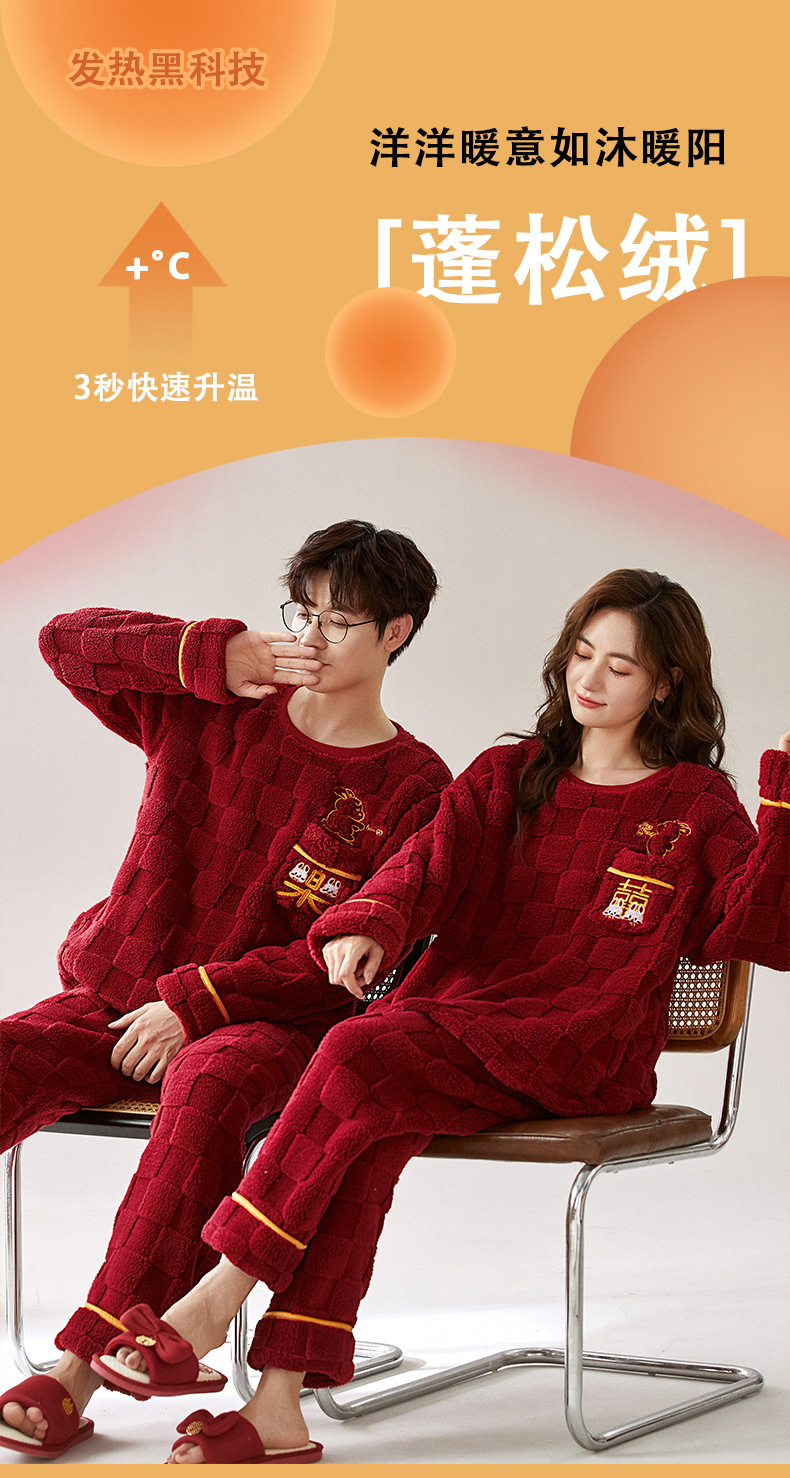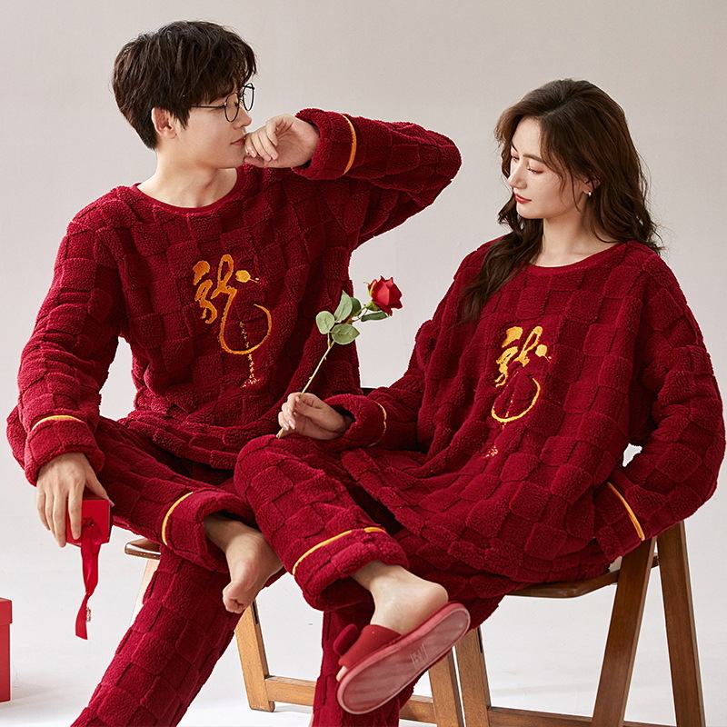 커플 잠옷 가을과 겨울 산호 양털 여성의 붉은 가족 년 결혼식 축제 홈 의류 플란넬 남성 세트