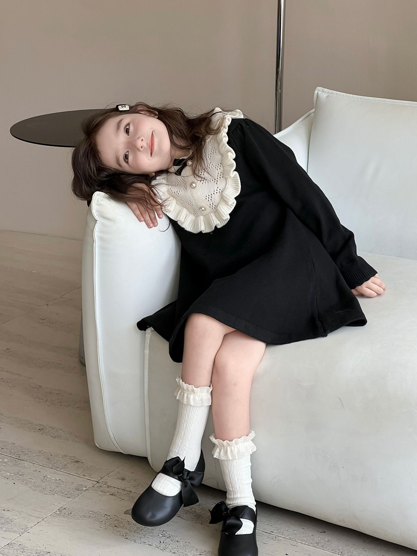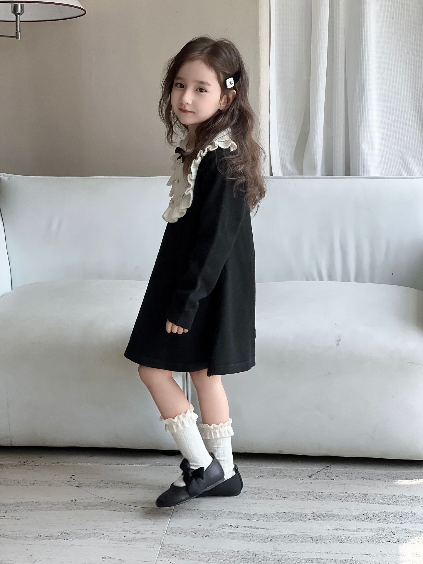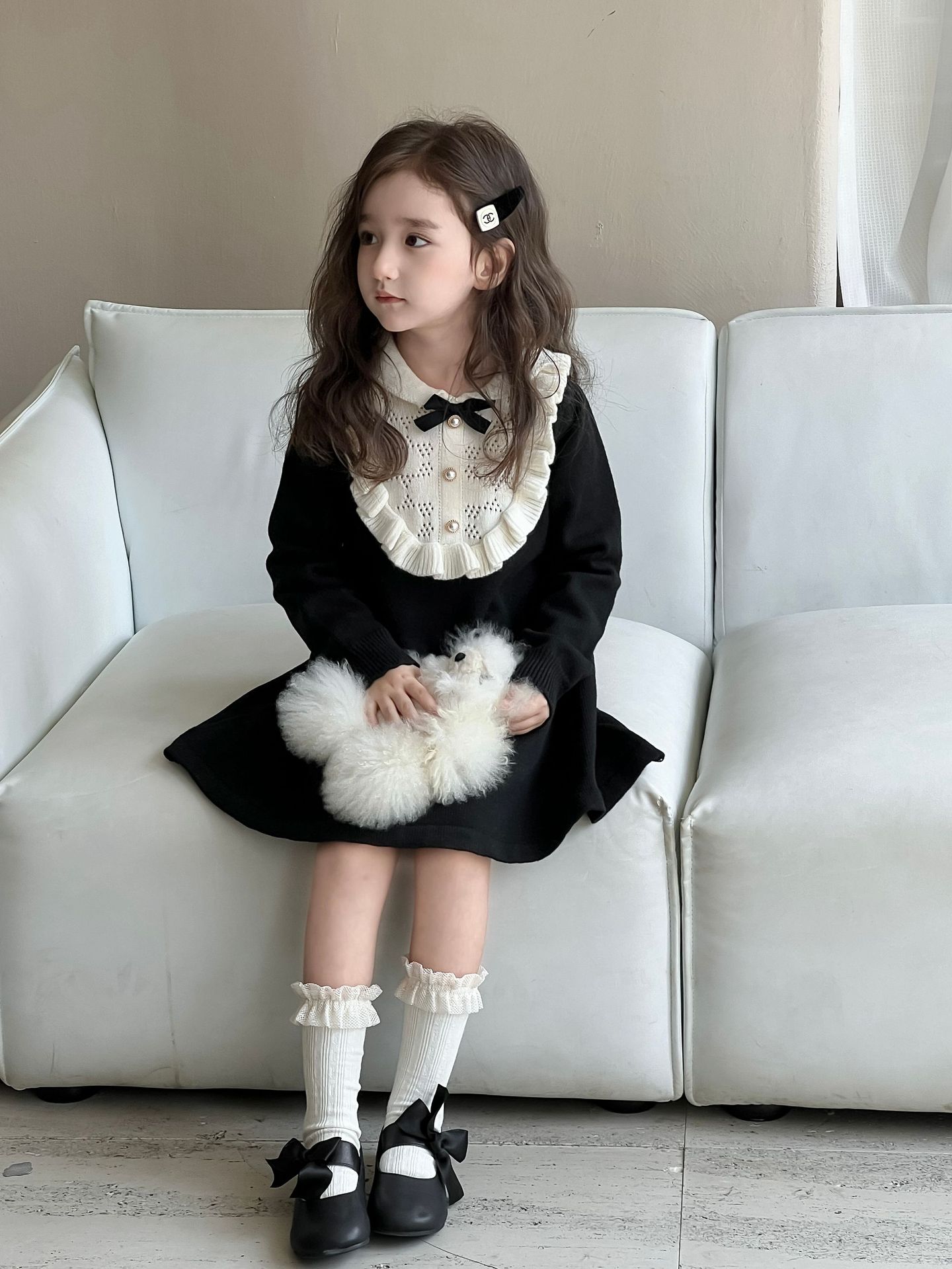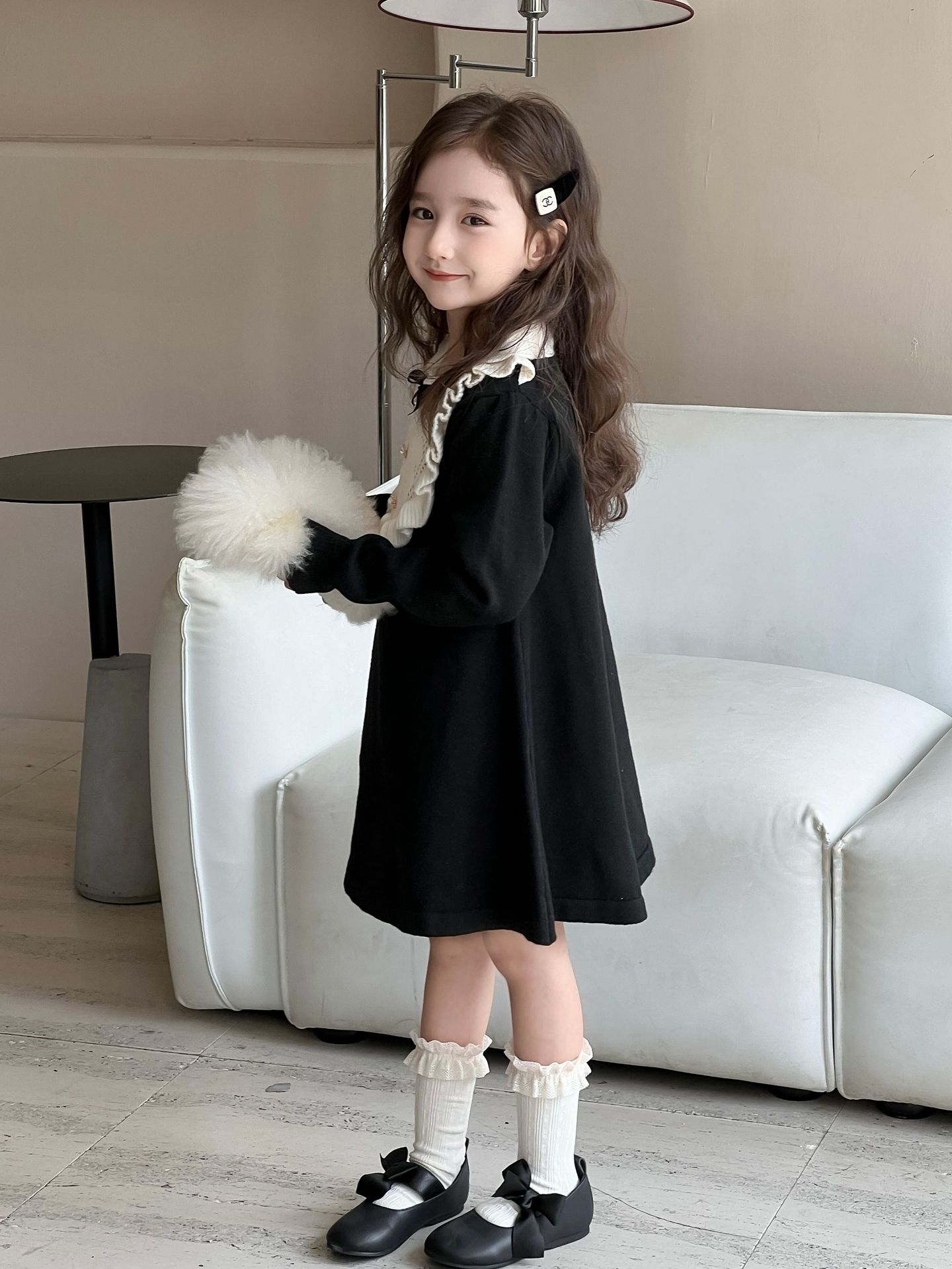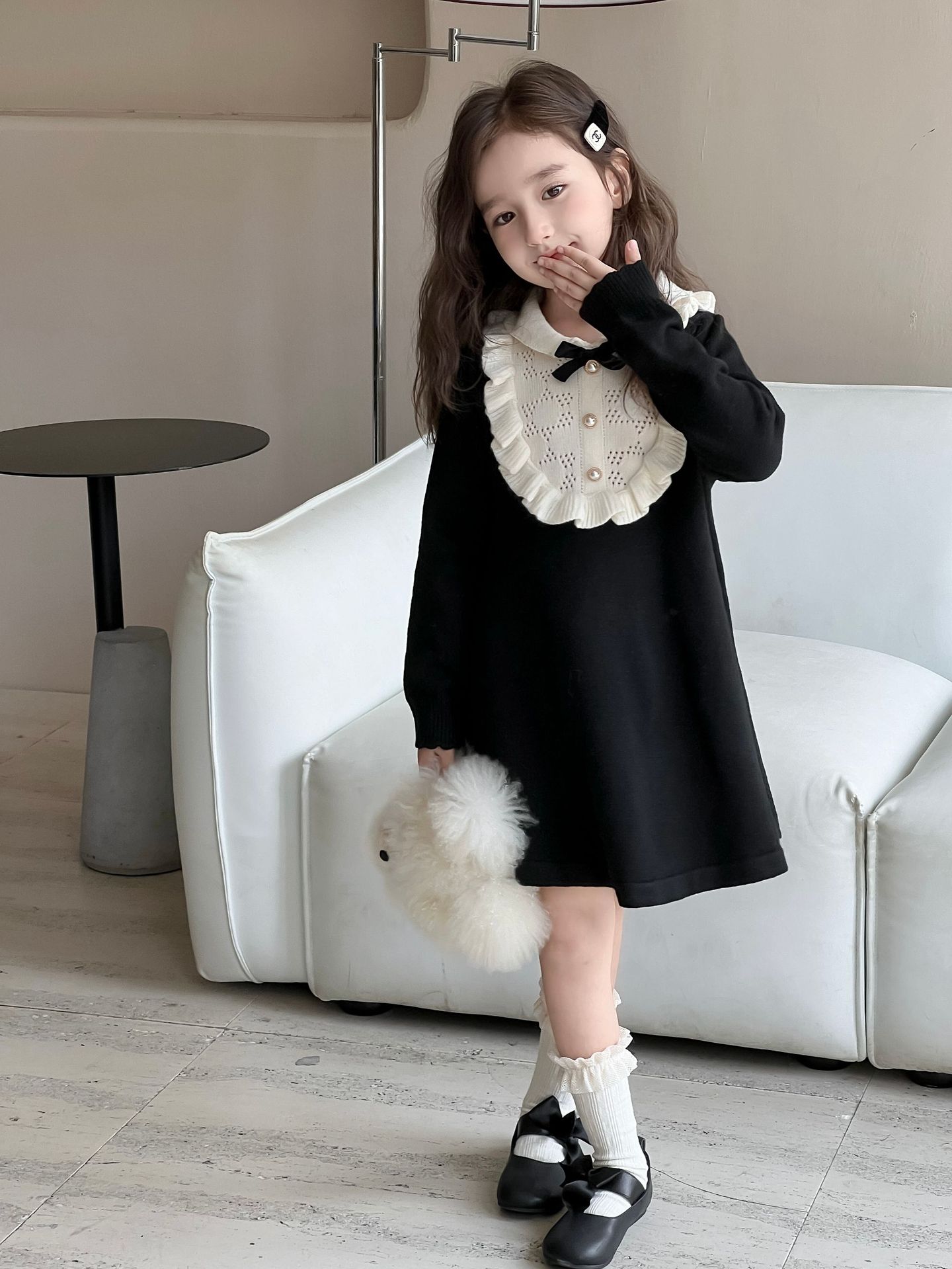 여자 니트 드레스 2024 가을, 겨울 새로운 프랑스 햅번 스타일 모직 스커트 어린이 스타일 중공업 바닥 스커트스토어 가기