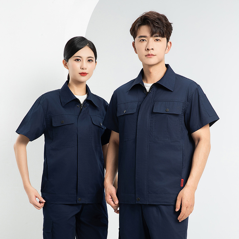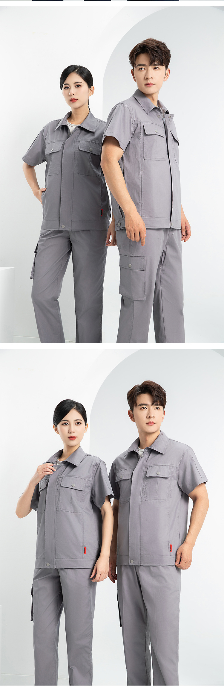순면 반팔 작업복 세트, 얇은 면 소재, 남녀 공용 작업복, 공장 작업장 보호복, 맞춤 제작 가능, 자수 및 인쇄 가능, 통기성스토어 가기