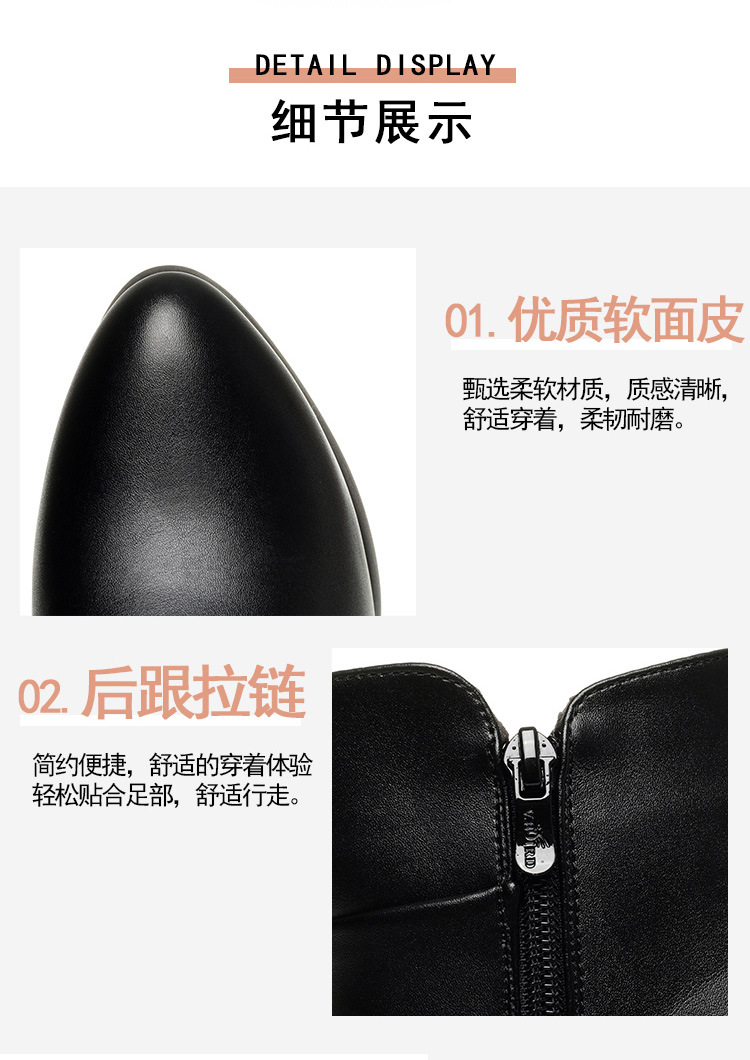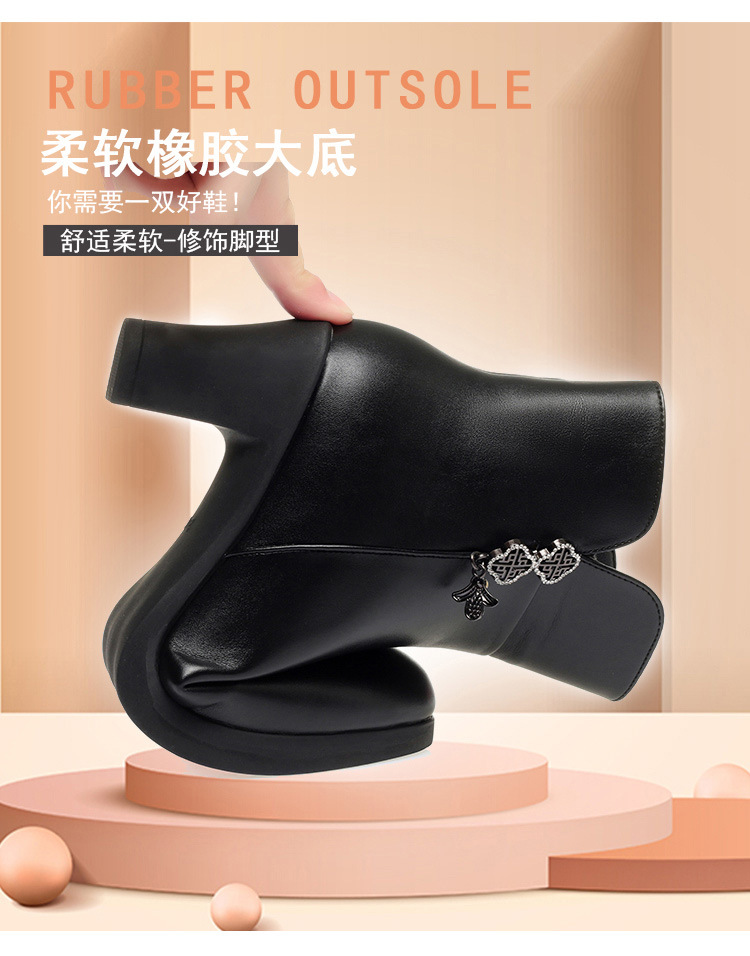 가을과 겨울 새로운 두꺼운 굽 짧은 부츠 여성의 하이힐 여성 부츠 여성의 따뜻한 모면 신발 기모 가죽 신발