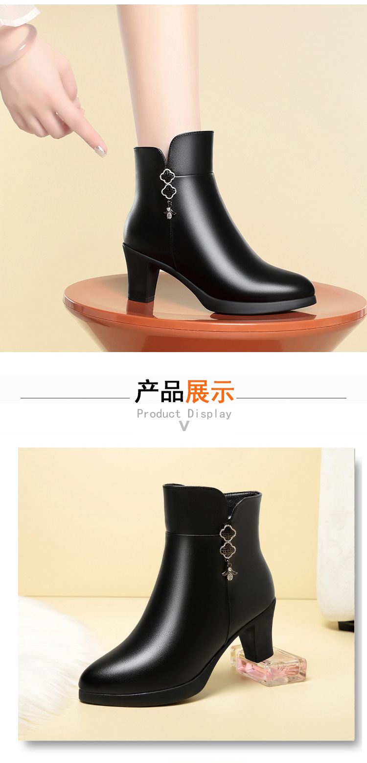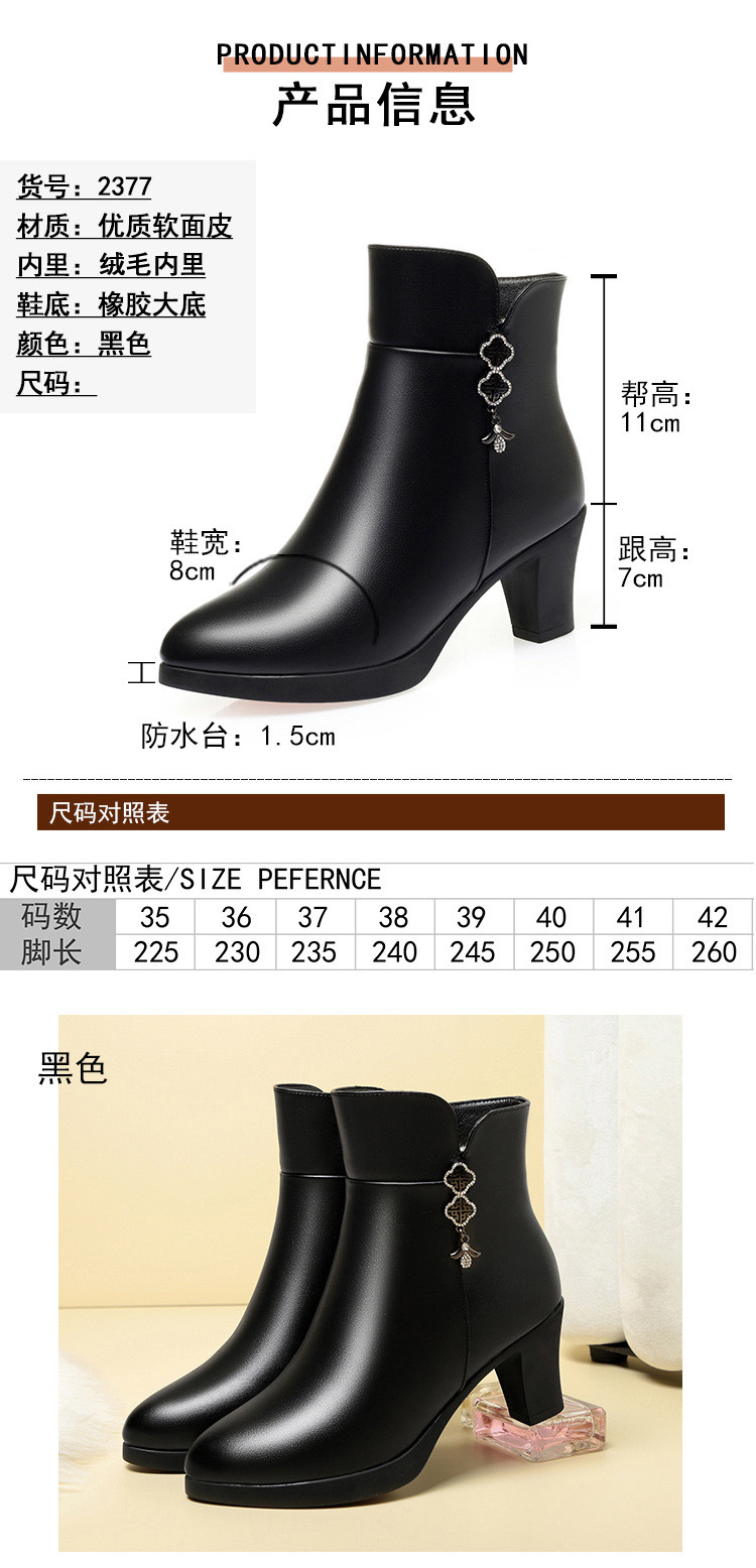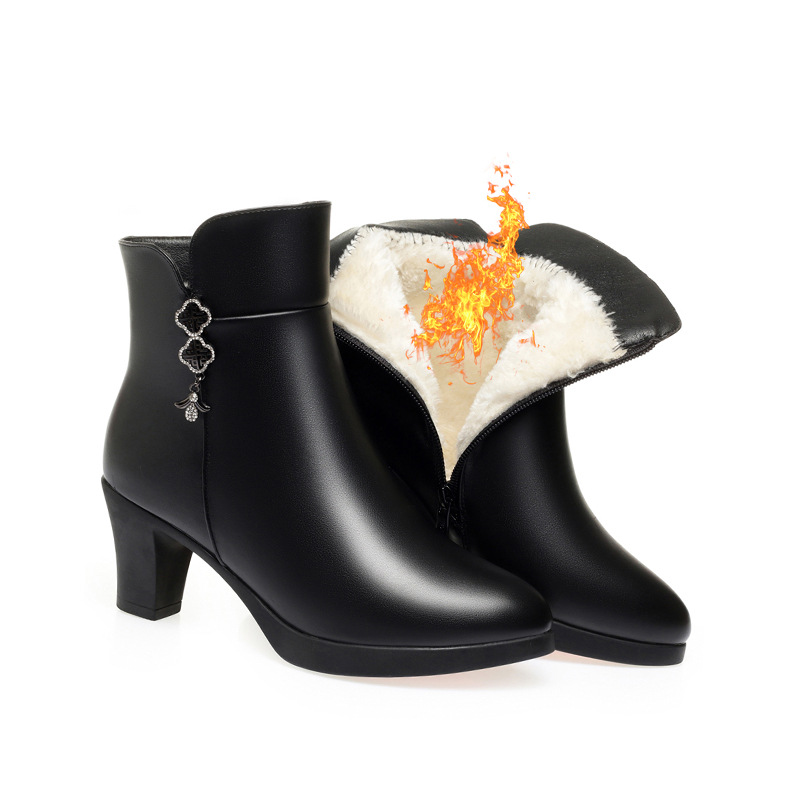 가을과 겨울 새로운 두꺼운 굽 짧은 부츠 여성의 하이힐 여성 부츠 여성의 따뜻한 모면 신발 기모 가죽 신발스토어 가기