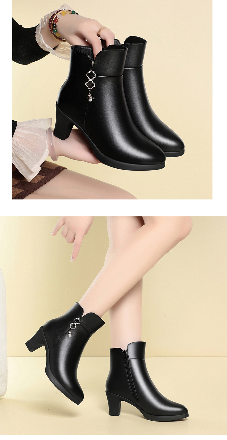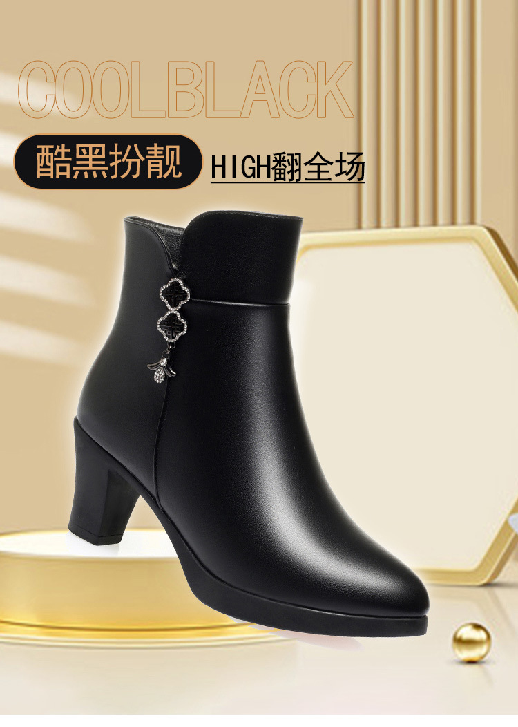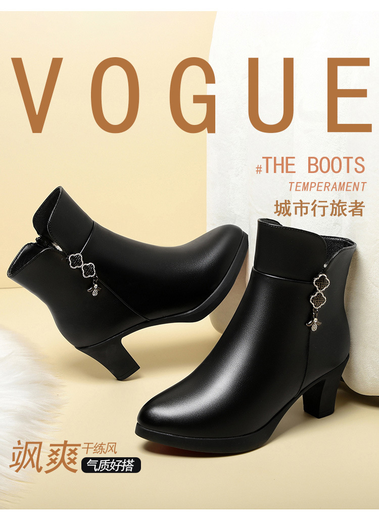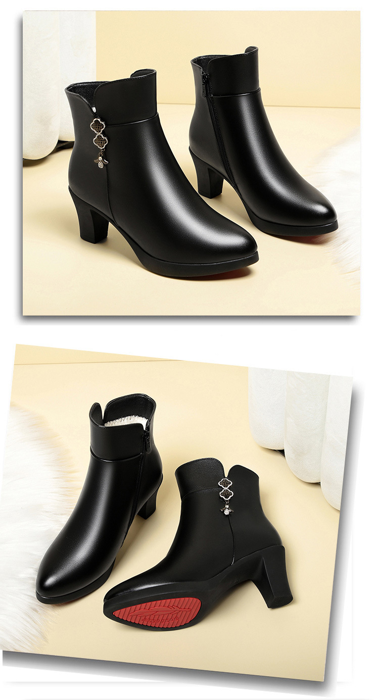 가을과 겨울 새로운 두꺼운 굽 짧은 부츠 여성의 하이힐 여성 부츠 여성의 따뜻한 모면 신발 기모 가죽 신발스토어 가기