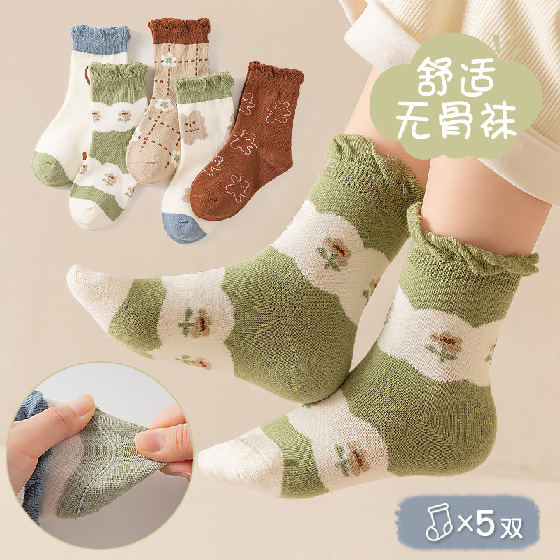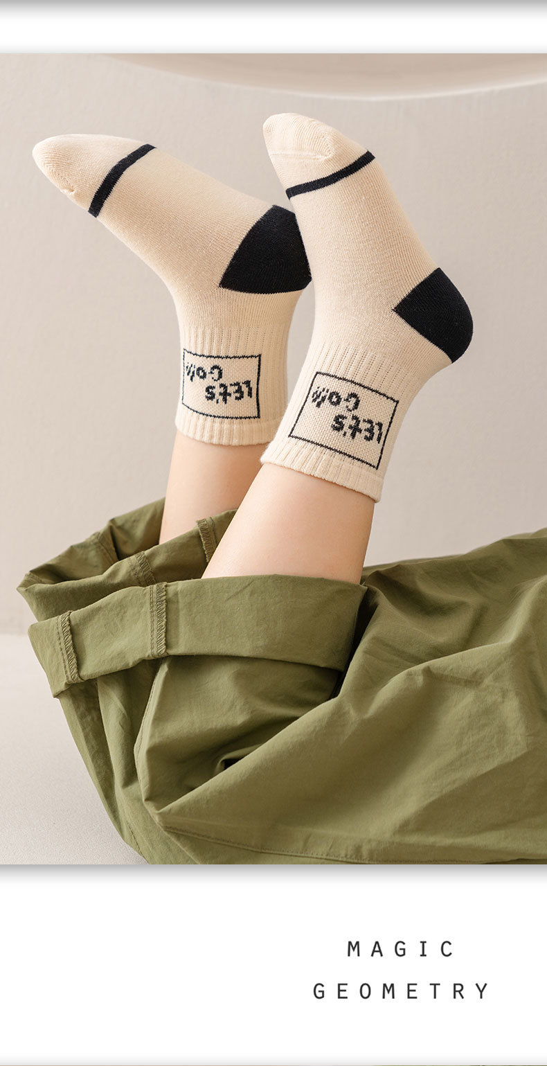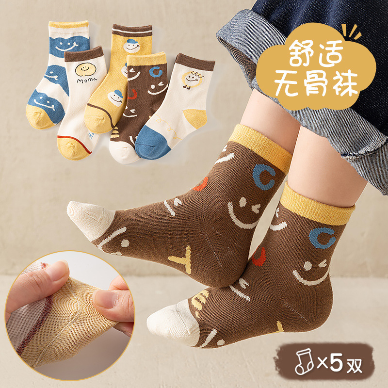 2024 년 어린이 양말 가을 겨울 한국 편지 유행 양말 봄 및 가을 통기성 중간 튜브 양말 코튼 양말 소년 소녀 스포츠 양말스토어 가기