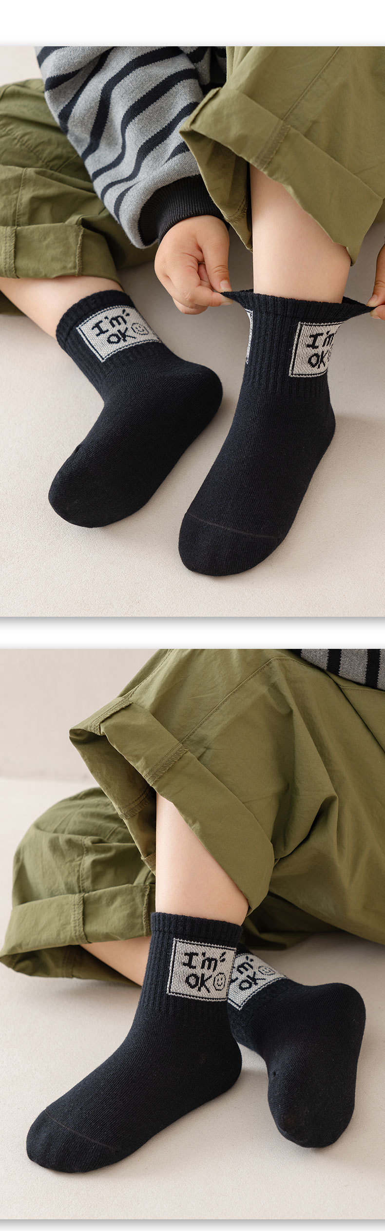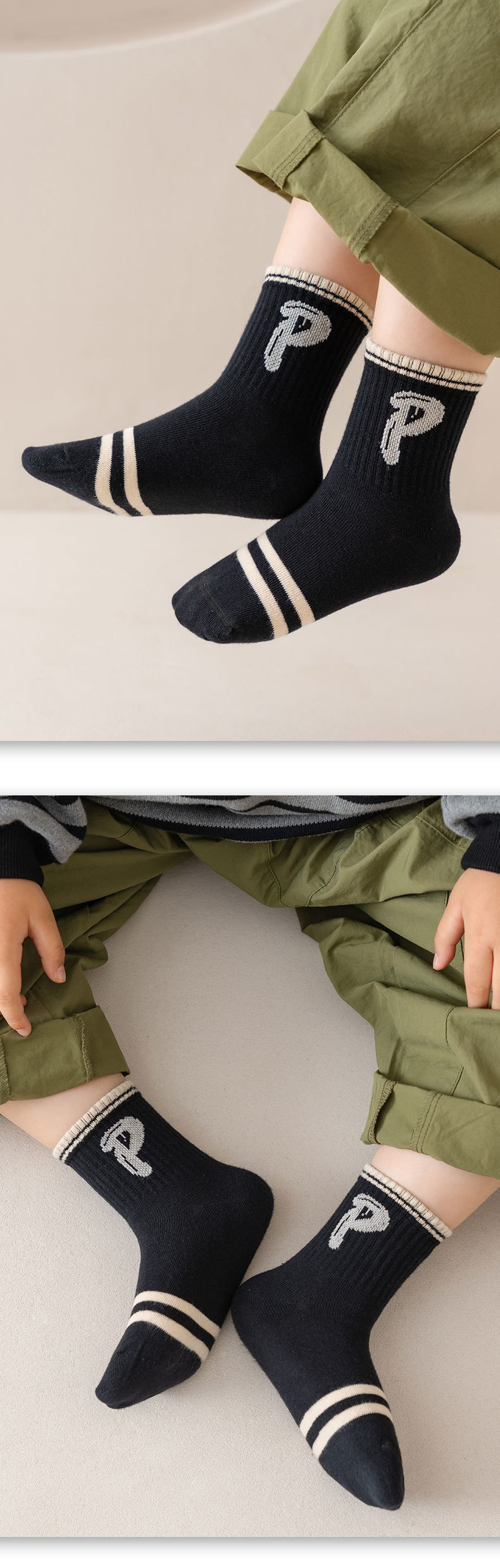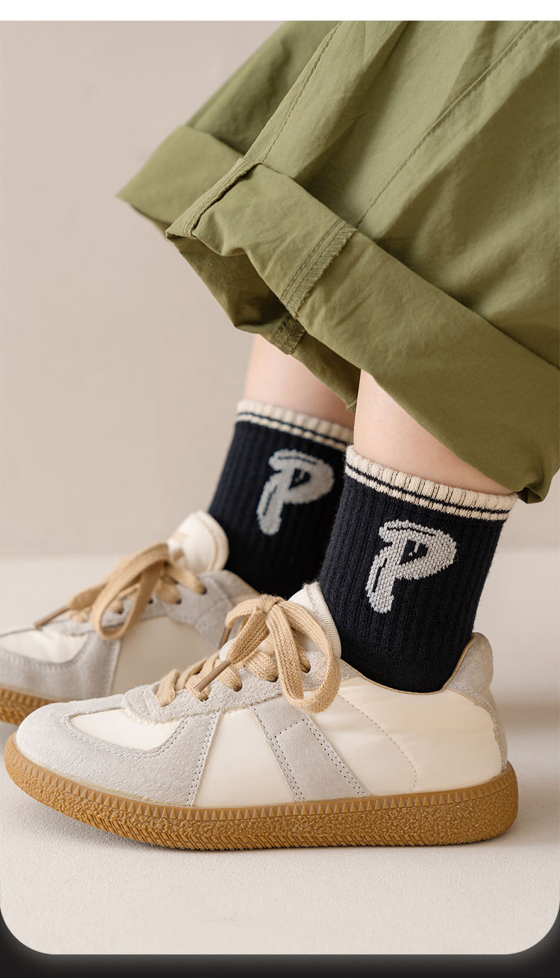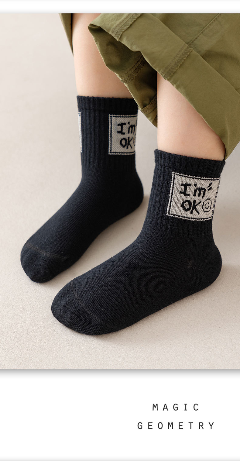 2024 년 어린이 양말 가을 겨울 한국 편지 유행 양말 봄 및 가을 통기성 중간 튜브 양말 코튼 양말 소년 소녀 스포츠 양말