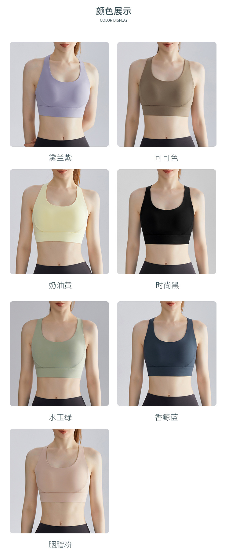 Chuandun 새로운 피트니스 스포츠 속옷 여성의 고강도 고정 컵 대조 액세서리 밀크 메쉬 스티칭 뷰티 백 요가 조끼스토어 가기