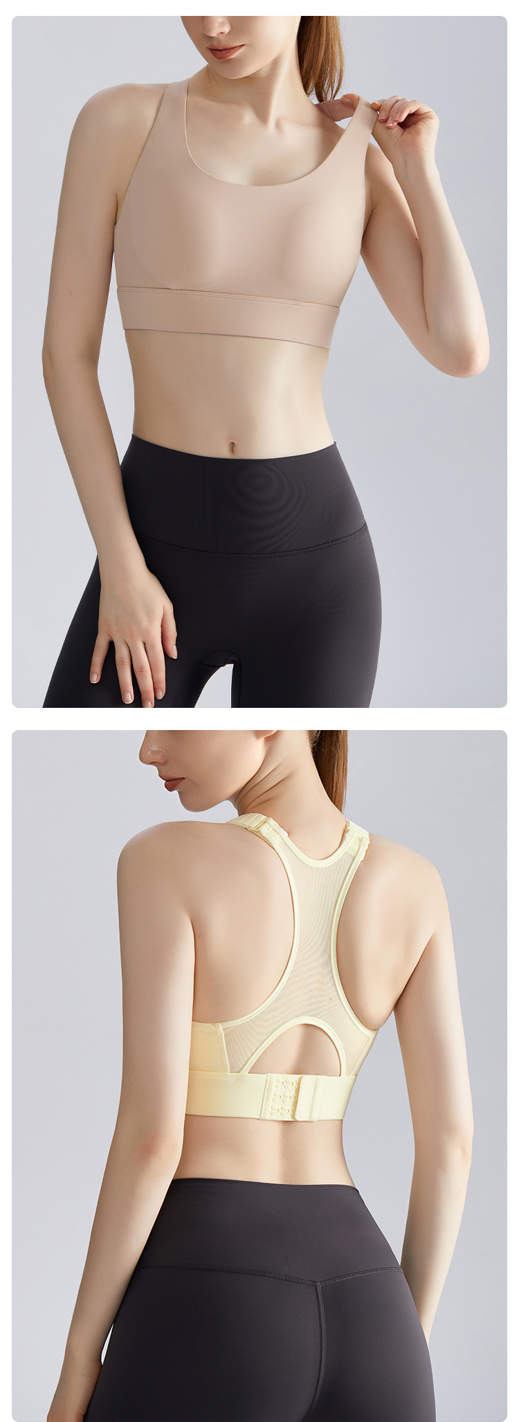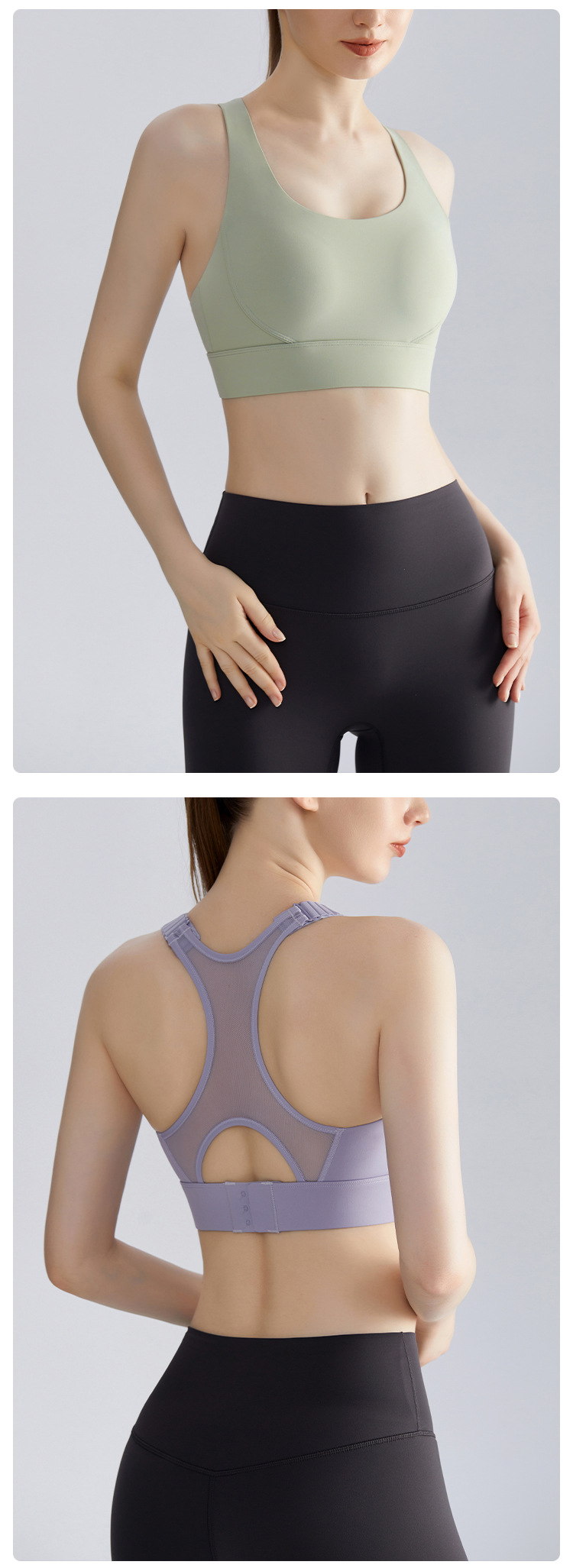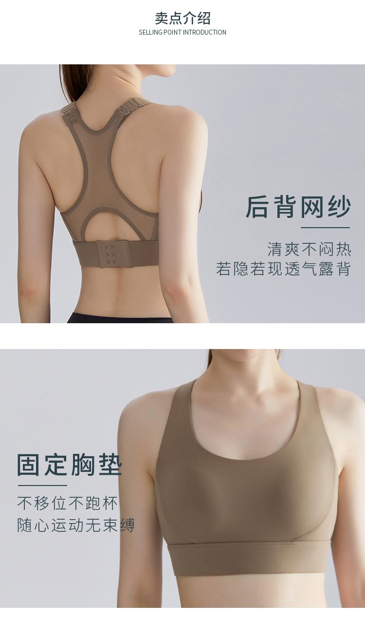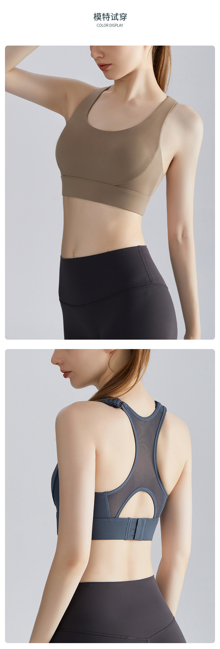Chuandun 새로운 피트니스 스포츠 속옷 여성의 고강도 고정 컵 대조 액세서리 밀크 메쉬 스티칭 뷰티 백 요가 조끼
