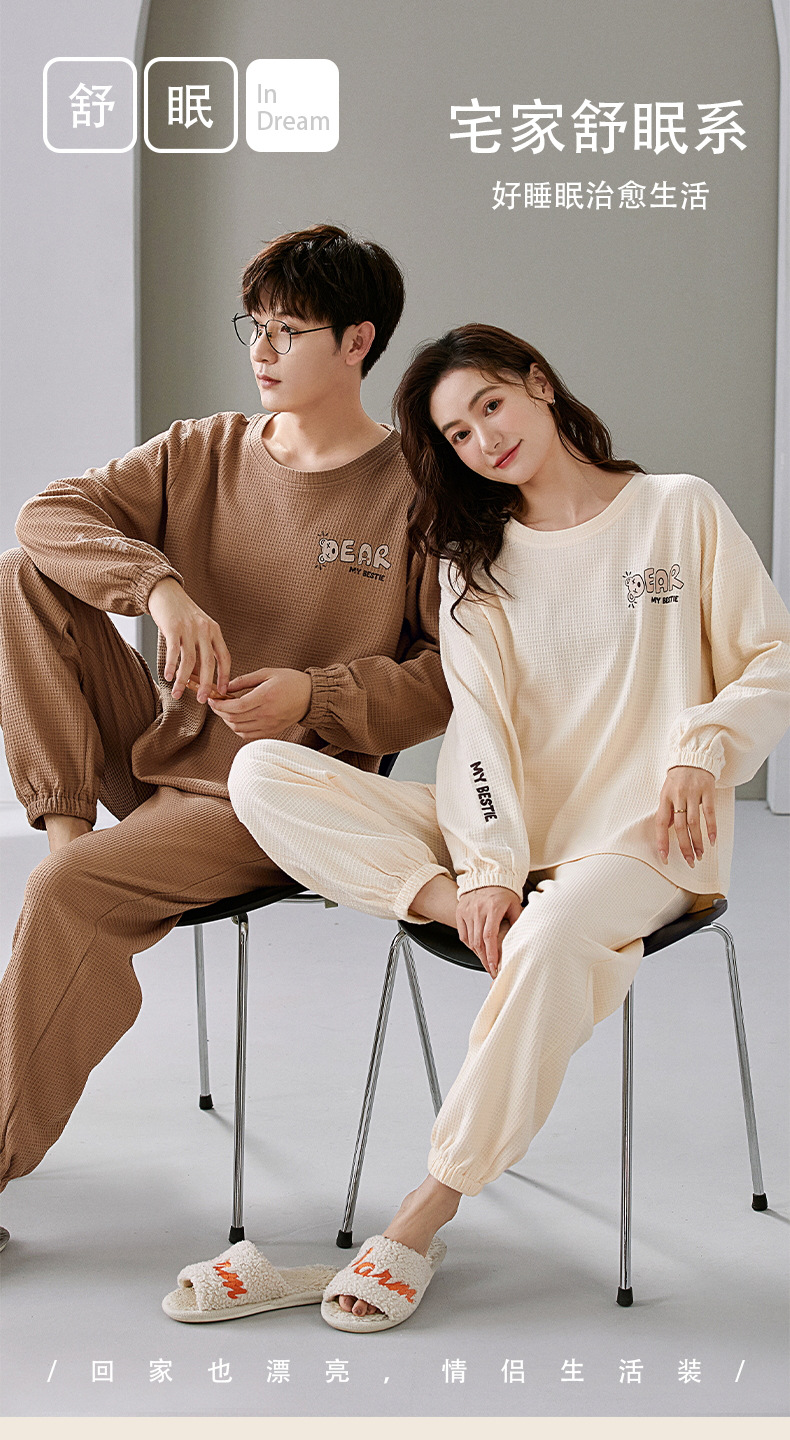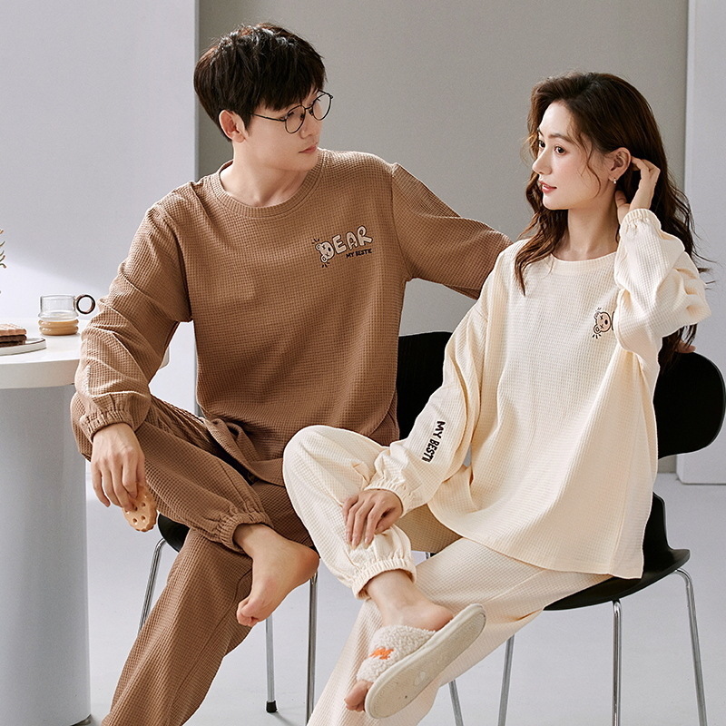 가을 2024 년 새 잠옷 홈 옷 긴 소매 남성 커플 파자마 긴 소매 바지를 입을 수 세트스토어 가기
