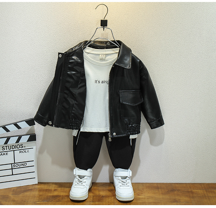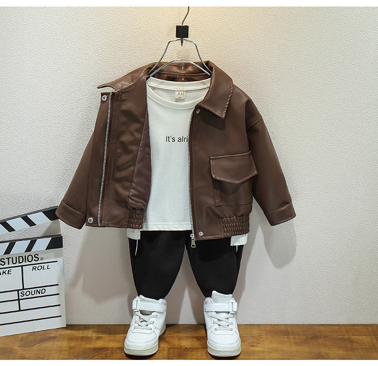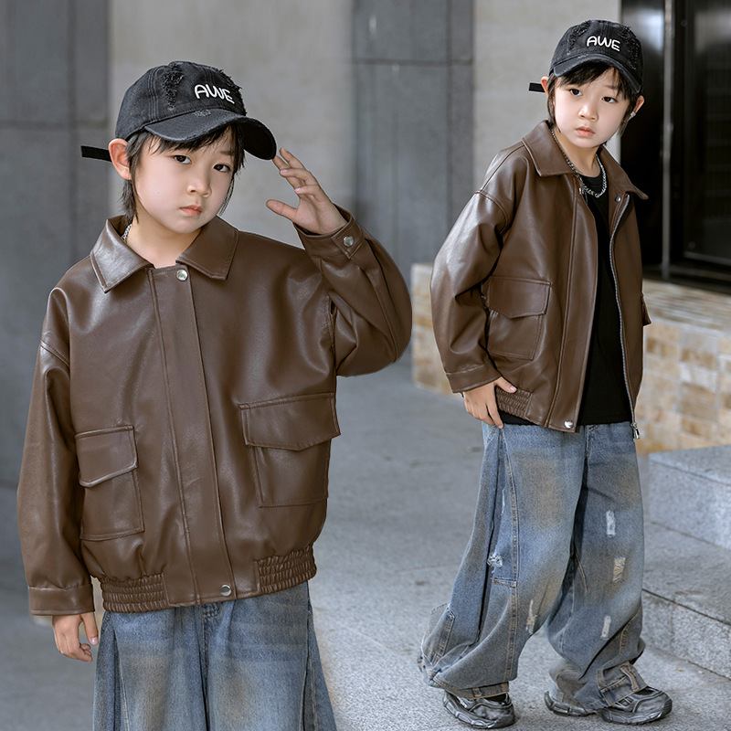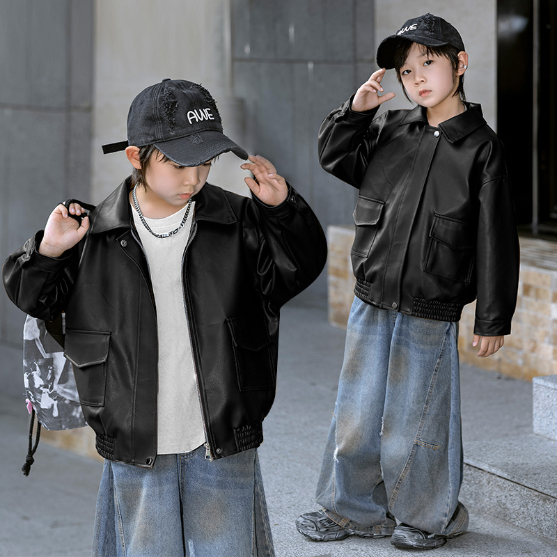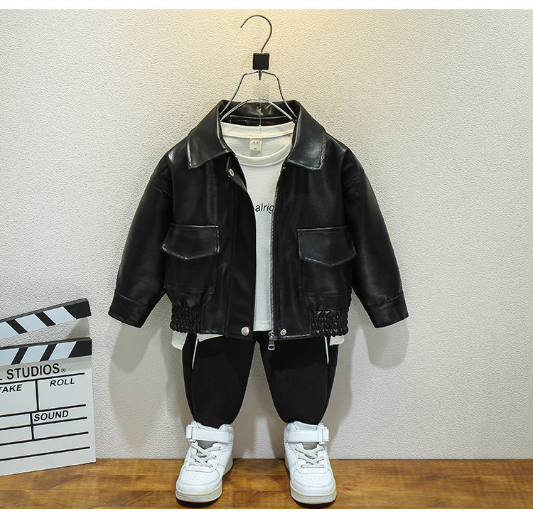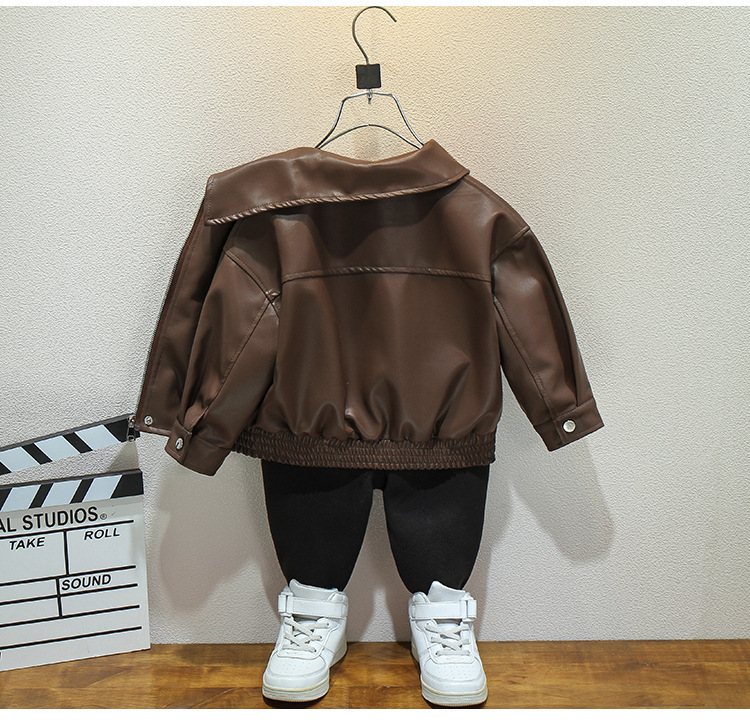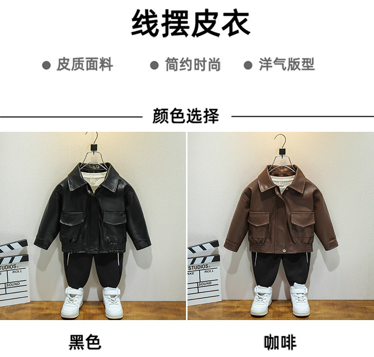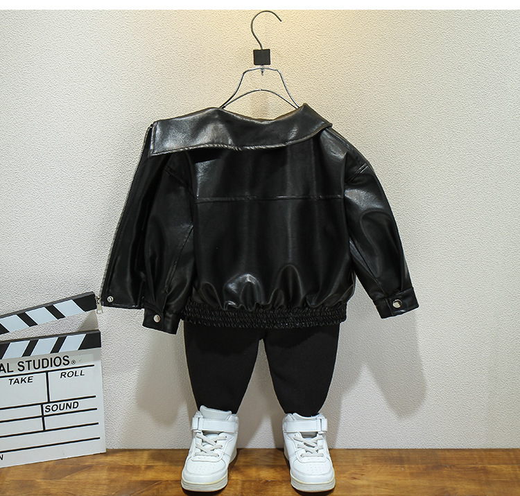 어린이 가죽 자켓 봄과 가을 새로운 소년과 소녀 솔리드 컬러 옷깃 가죽 자켓 아기 한국 짧은 자켓 유행 간단스토어 가기
