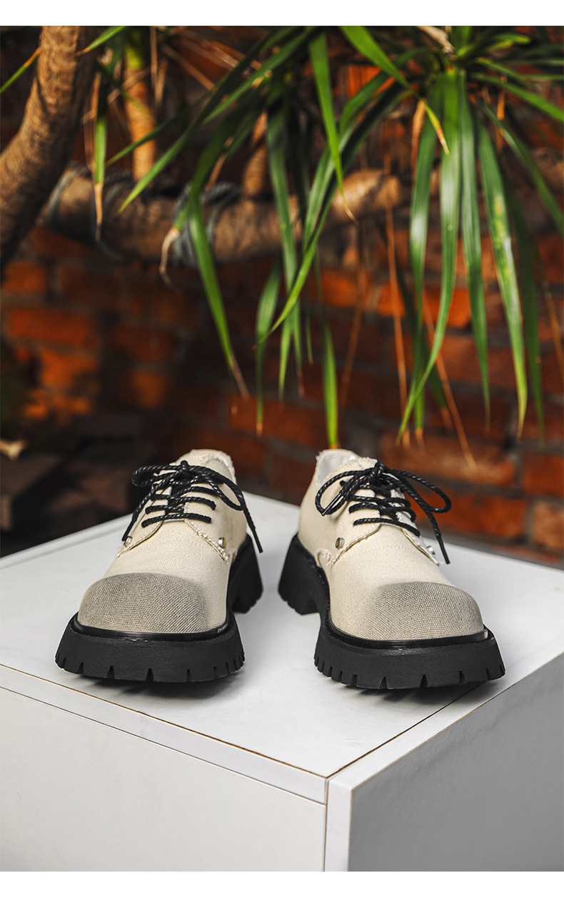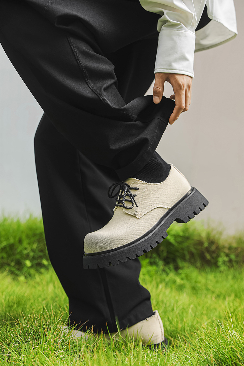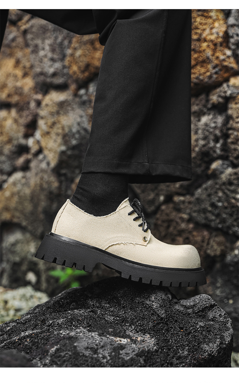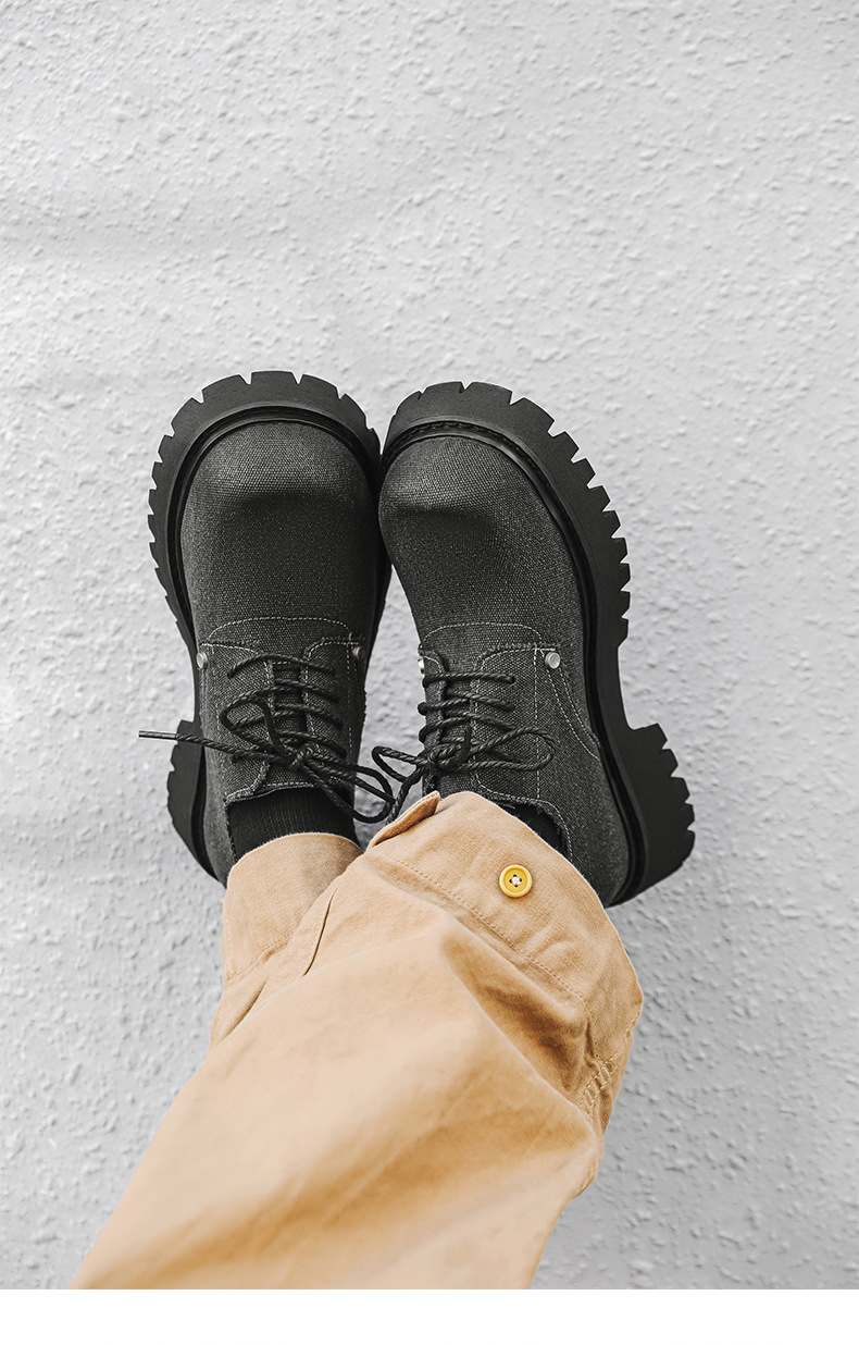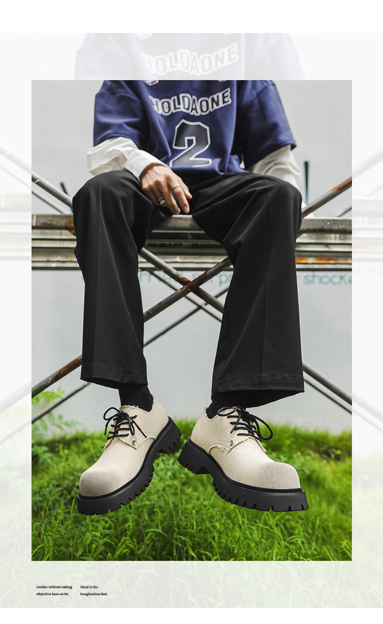가을 2024 새로운 두꺼운 솔이 통기성 높이 증가 유행 올 매치 캐주얼 신발 영국 스타일 복고풍 작업복 남성 신발