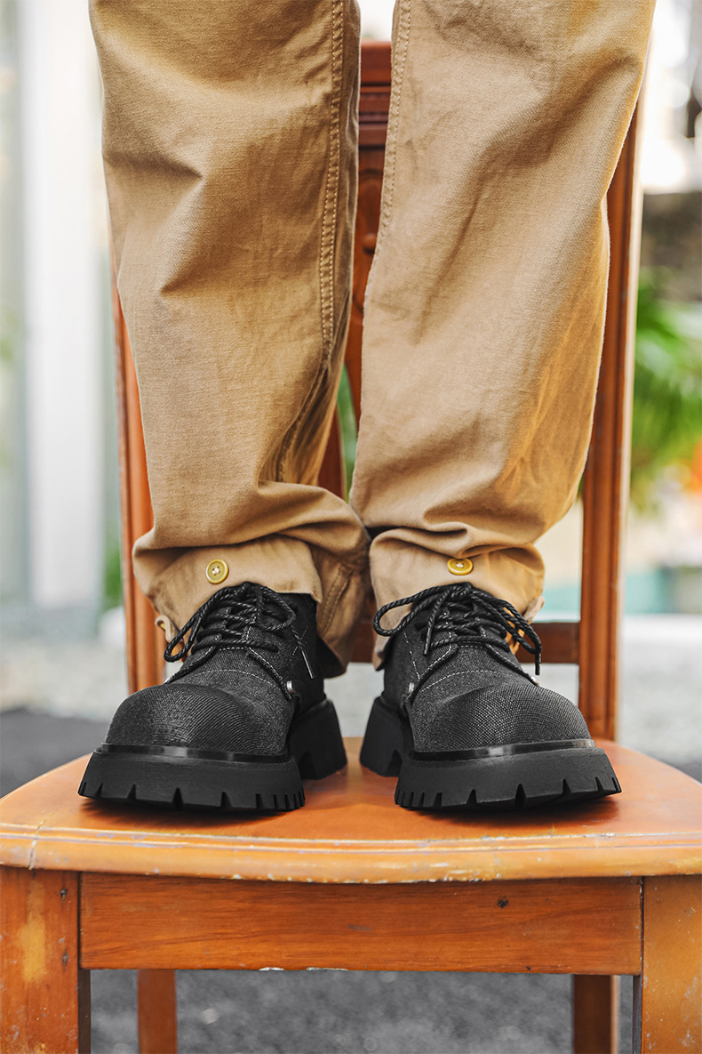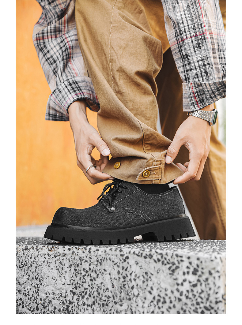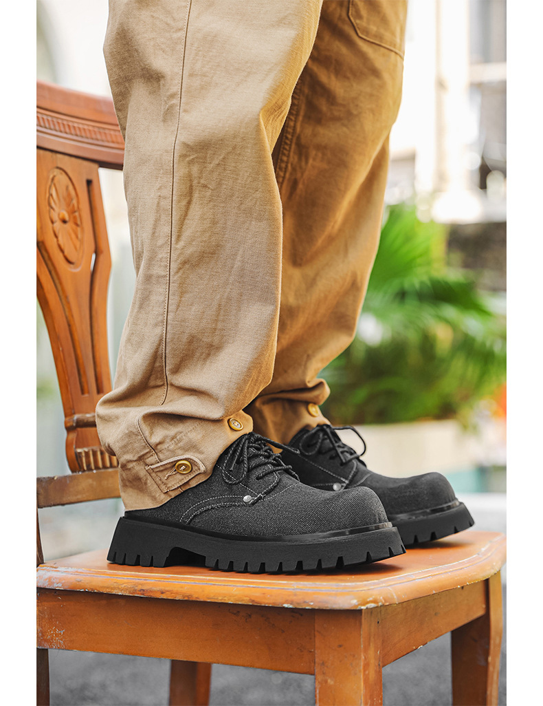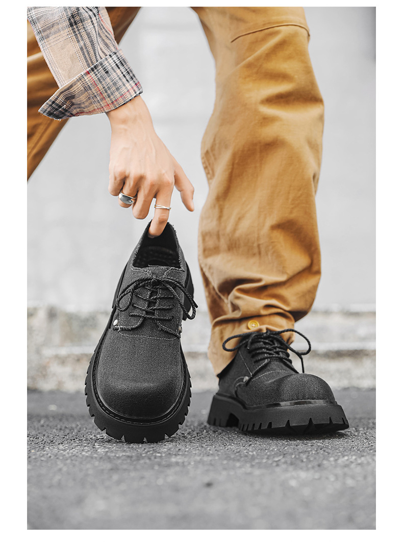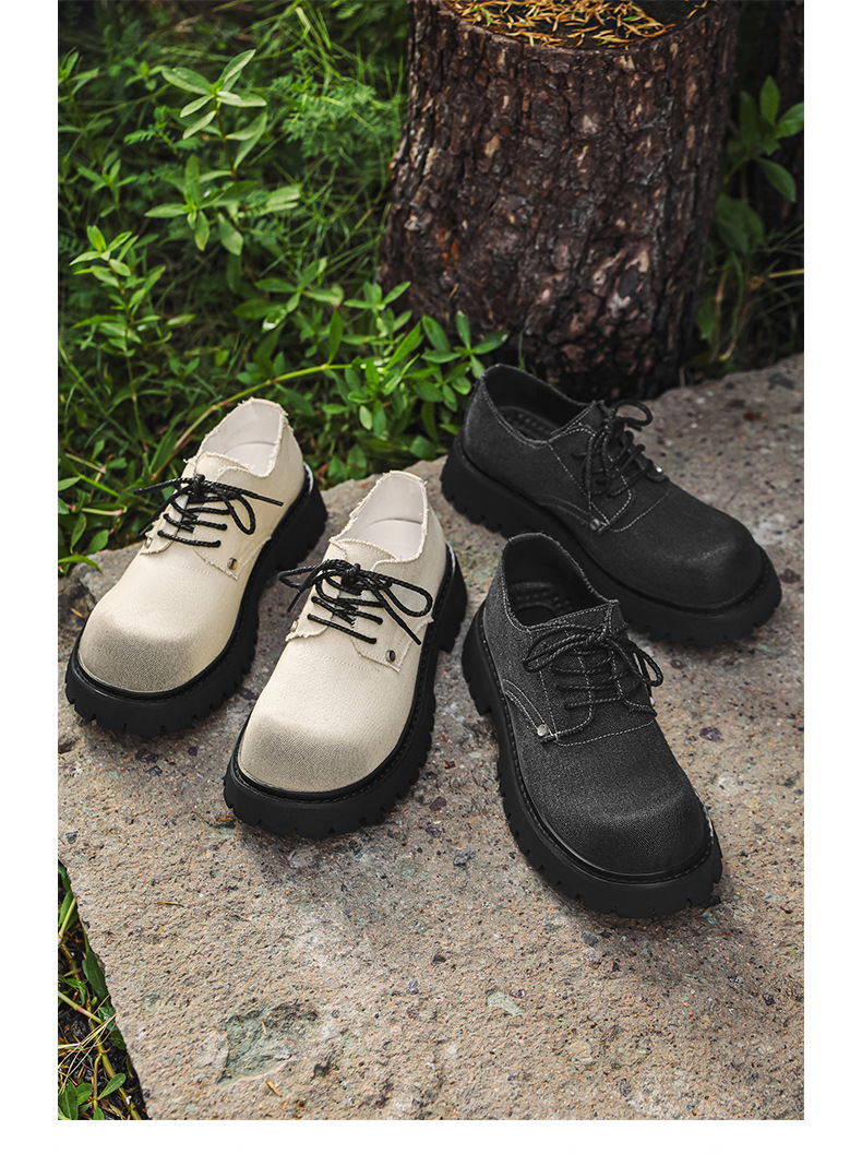 가을 2024 새로운 두꺼운 솔이 통기성 높이 증가 유행 올 매치 캐주얼 신발 영국 스타일 복고풍 작업복 남성 신발스토어 가기