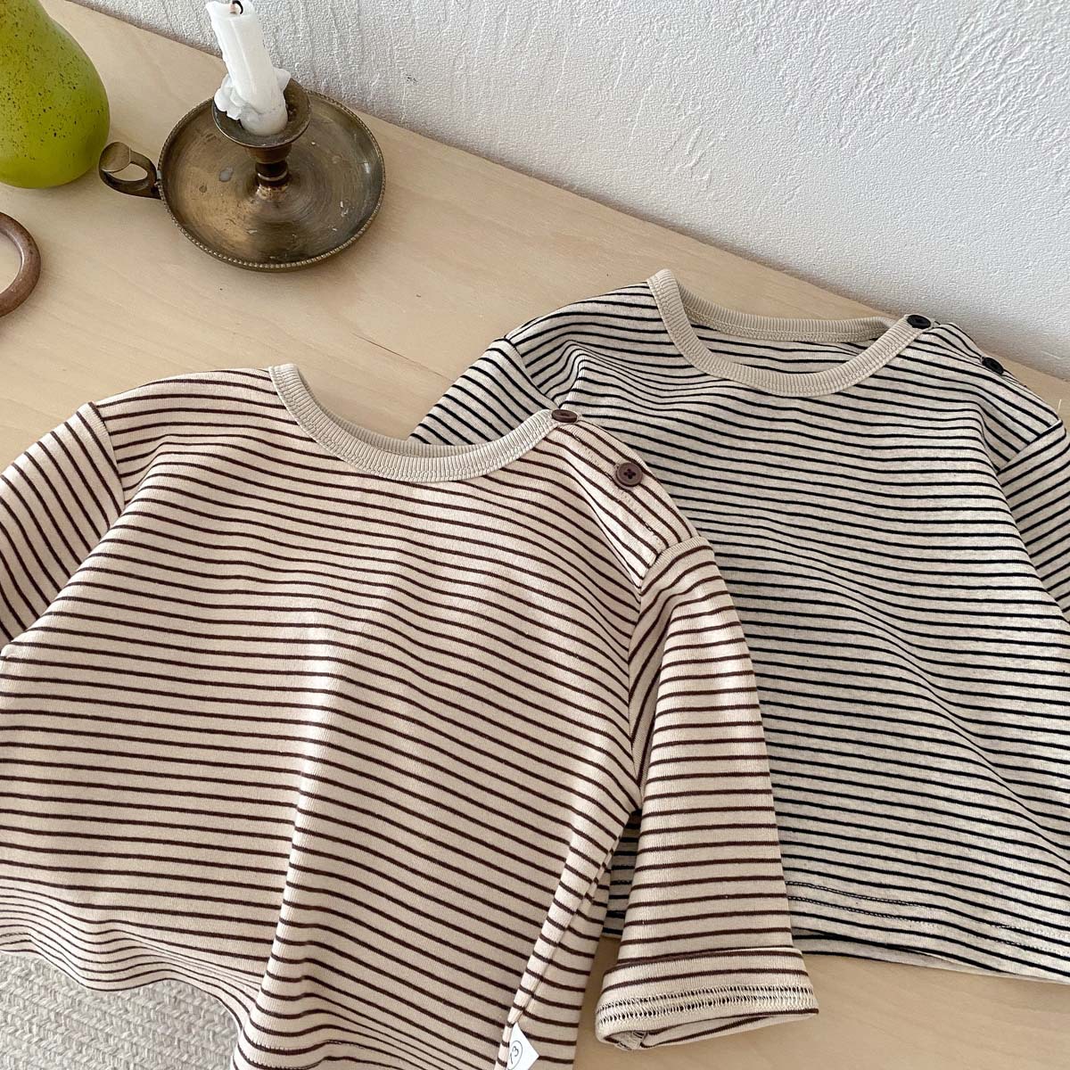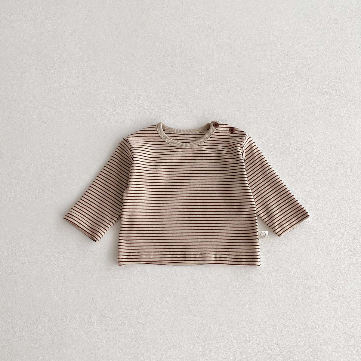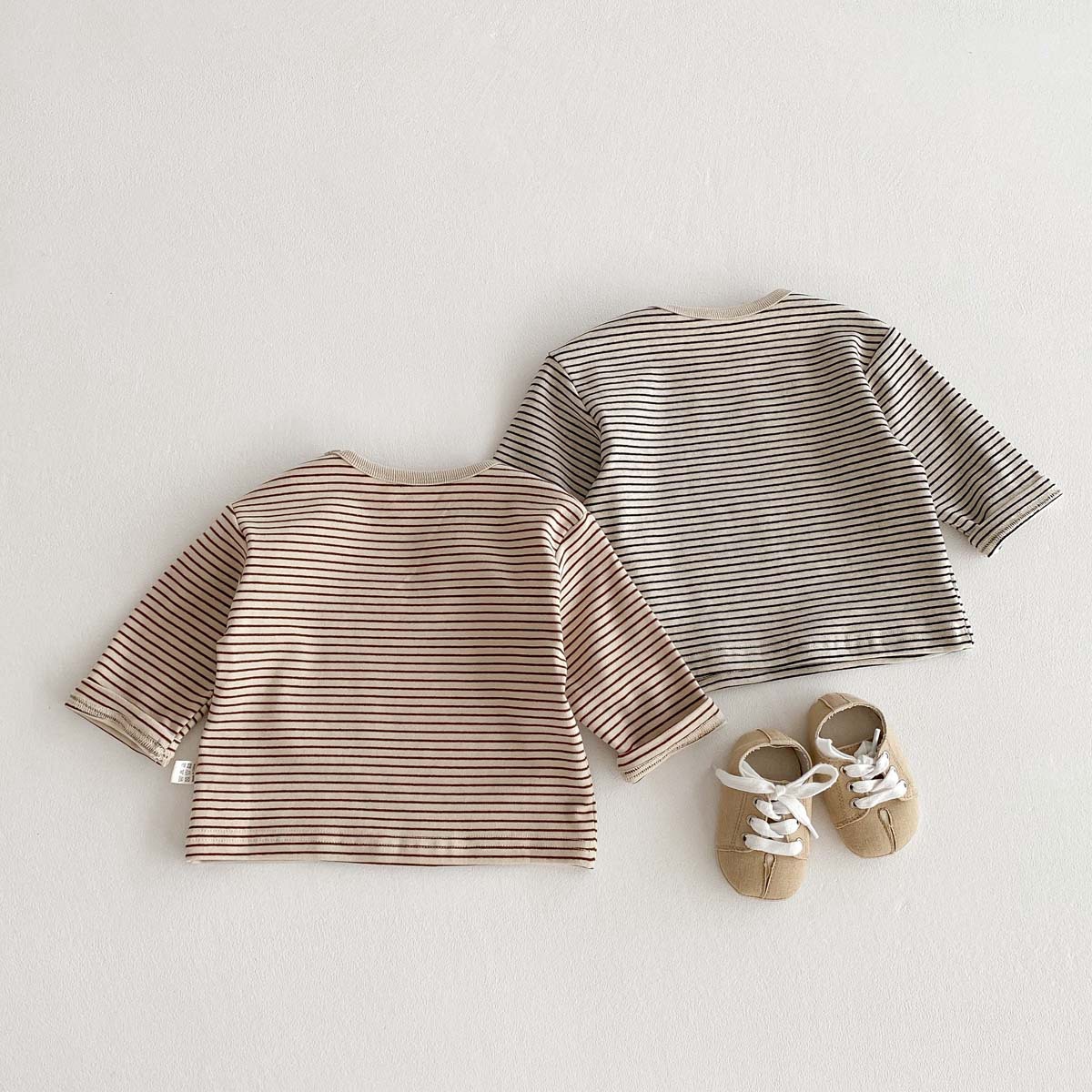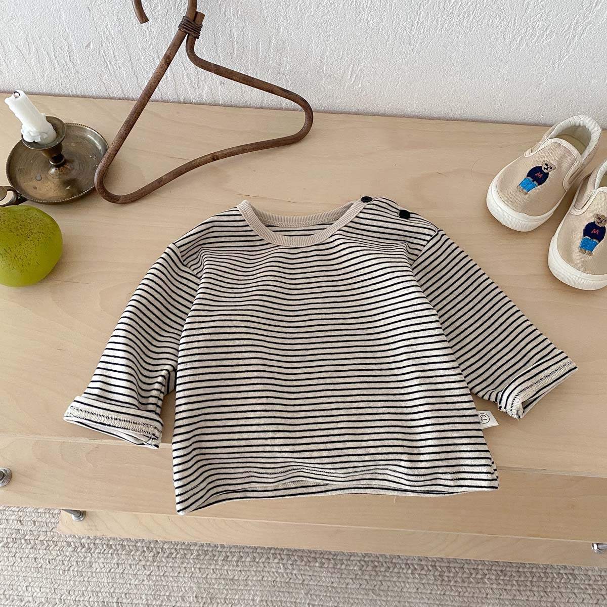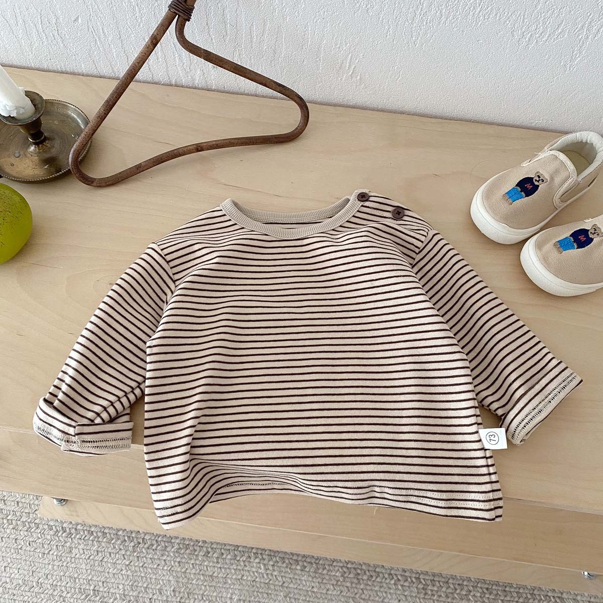 봄가을 남아 스트라이프 오프숄더 버튼 긴팔 상의 유아 한국 스타일 이너웨어 여아 다용도 아우터 티셔츠스토어 가기