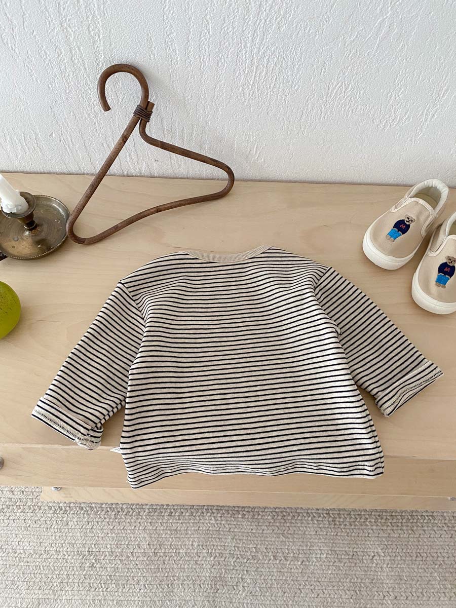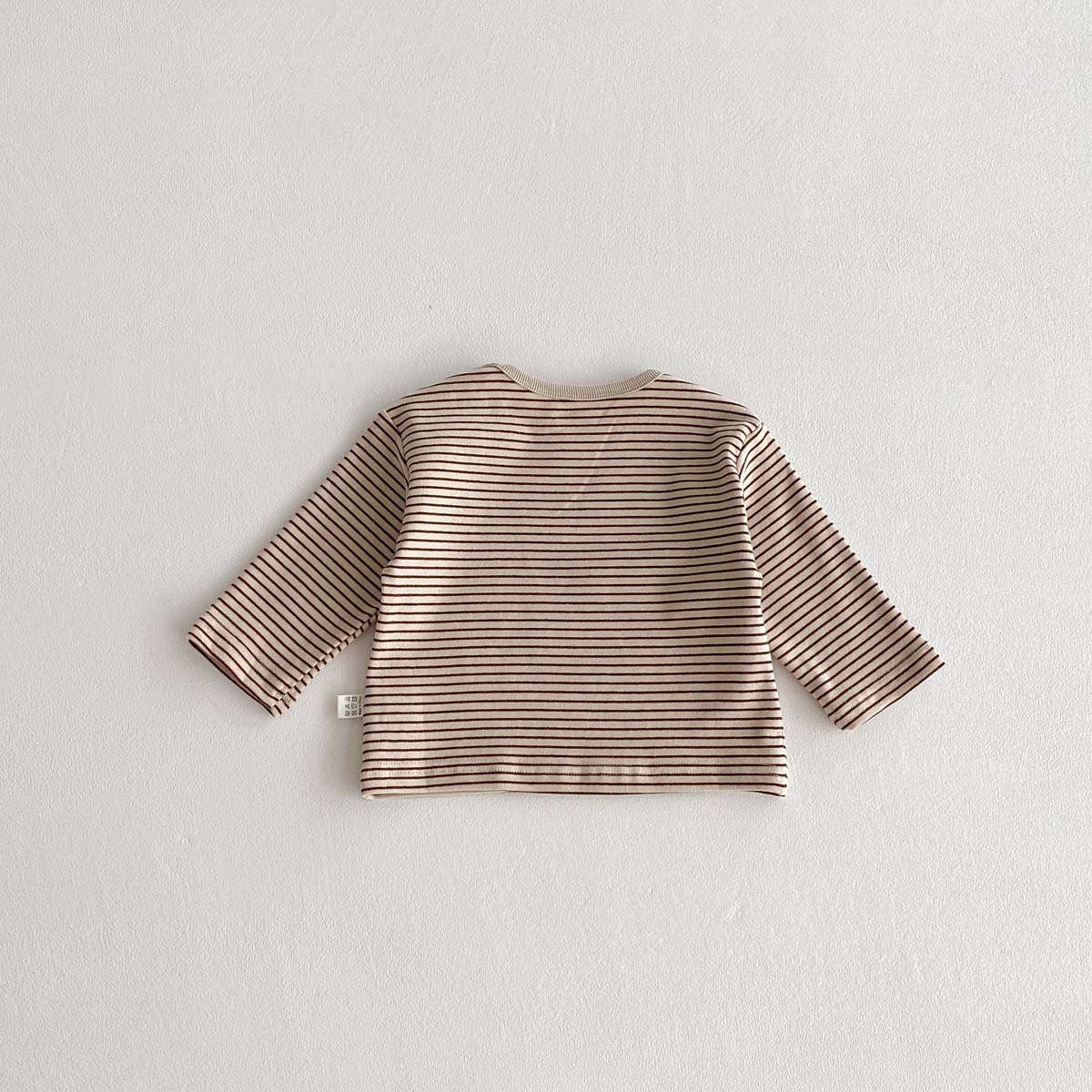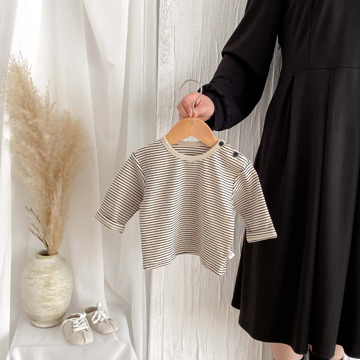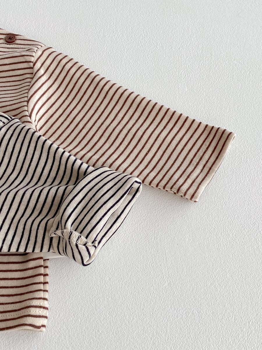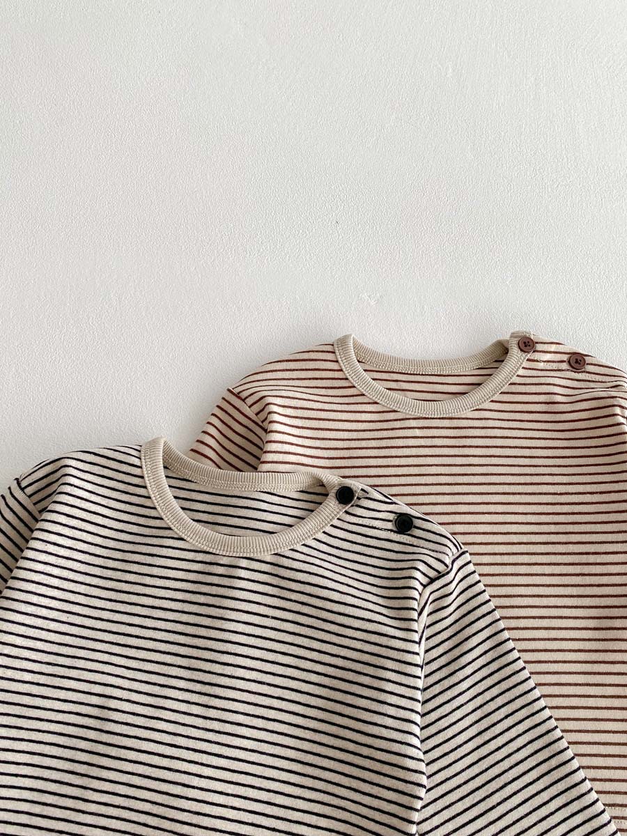 봄가을 남아 스트라이프 오프숄더 버튼 긴팔 상의 유아 한국 스타일 이너웨어 여아 다용도 아우터 티셔츠스토어 가기