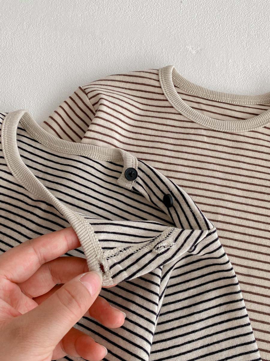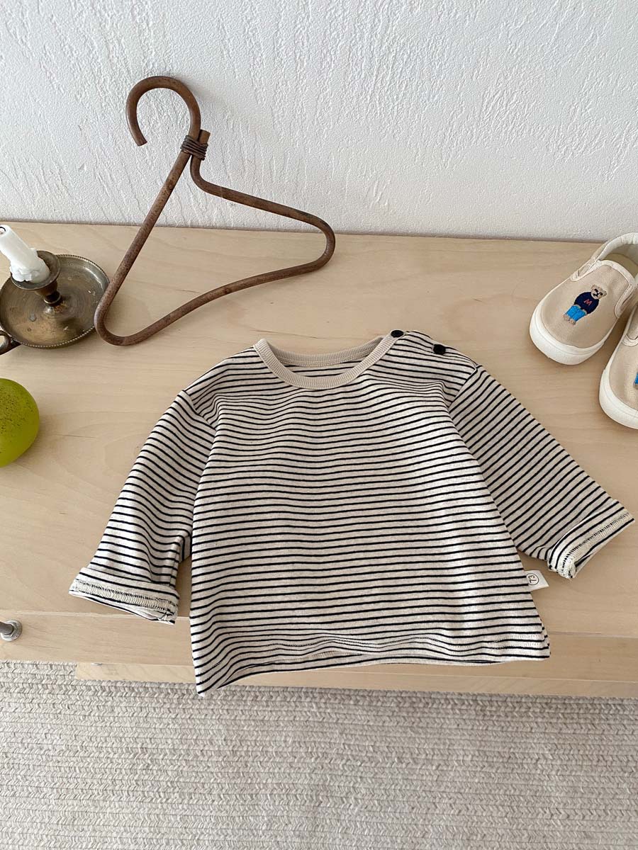 봄가을 남아 스트라이프 오프숄더 버튼 긴팔 상의 유아 한국 스타일 이너웨어 여아 다용도 아우터 티셔츠