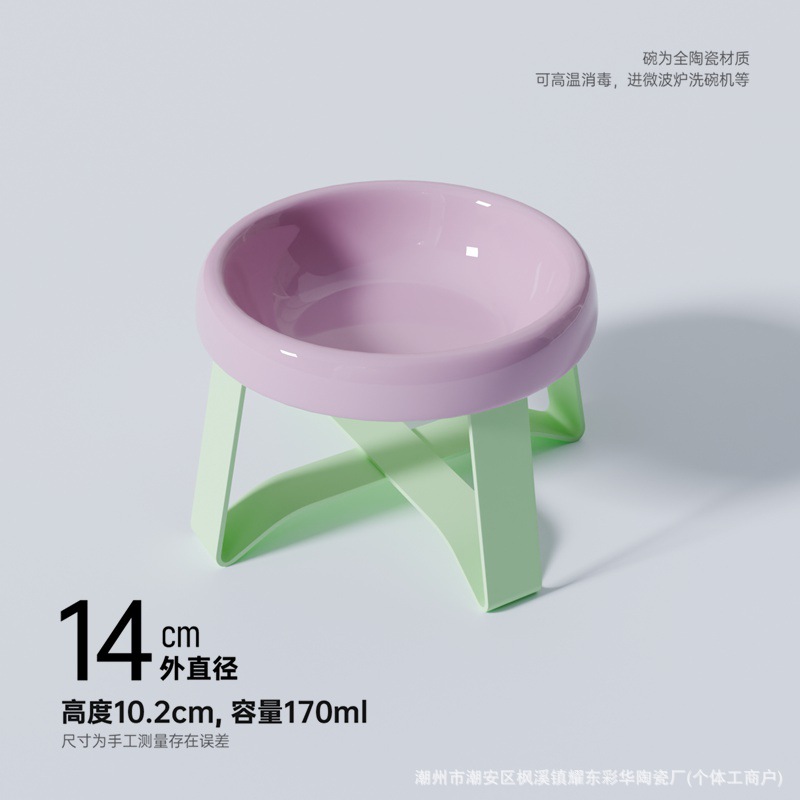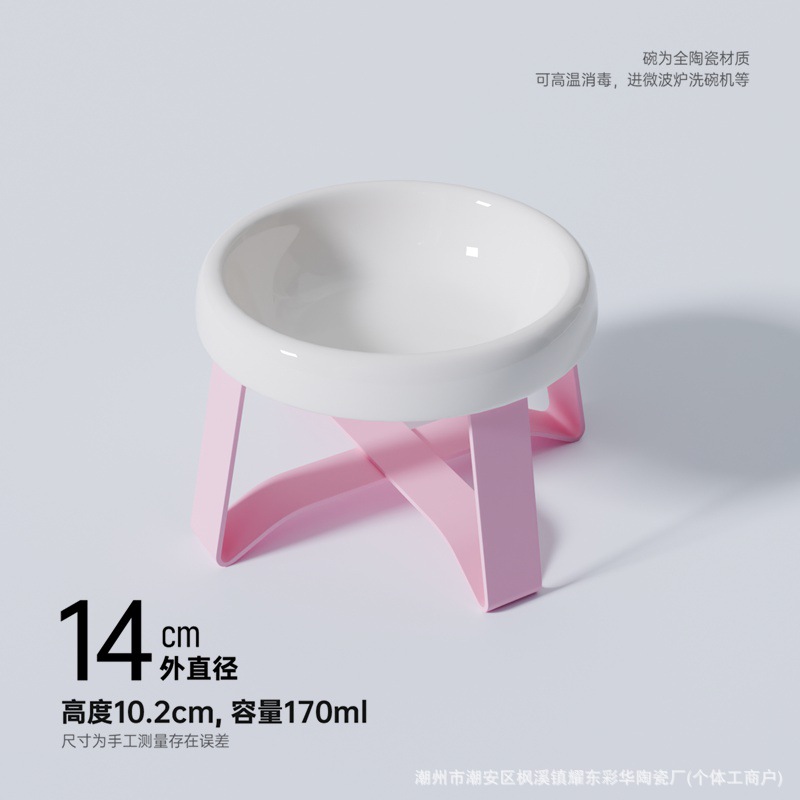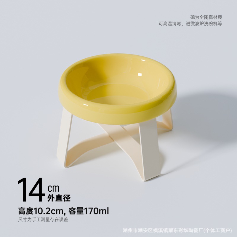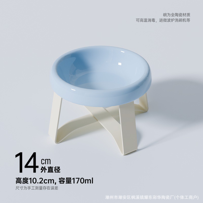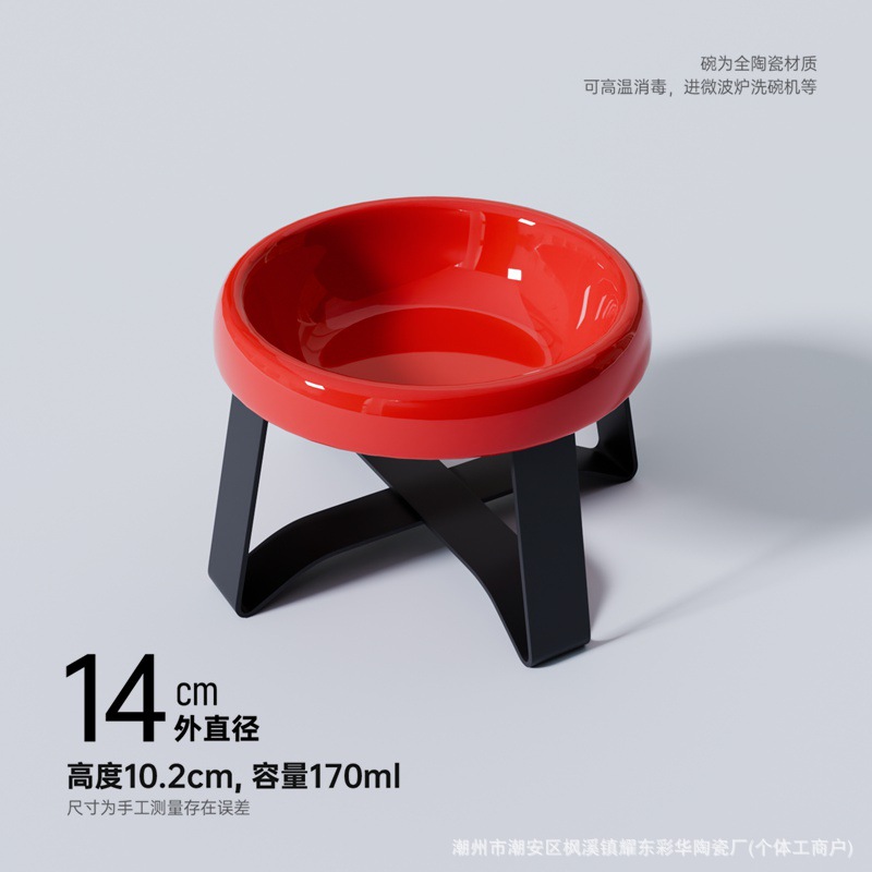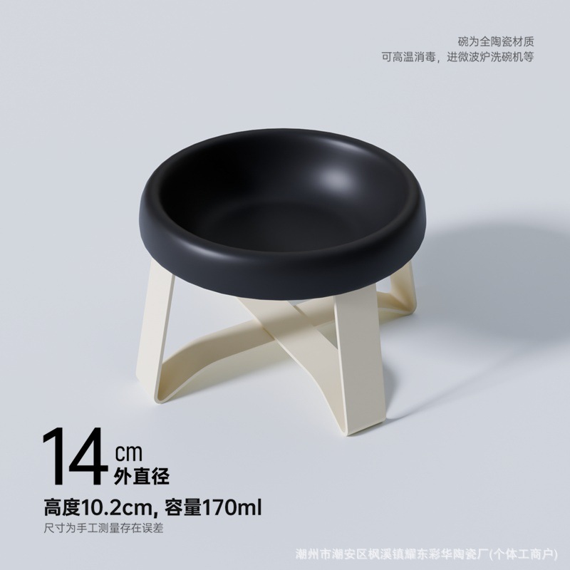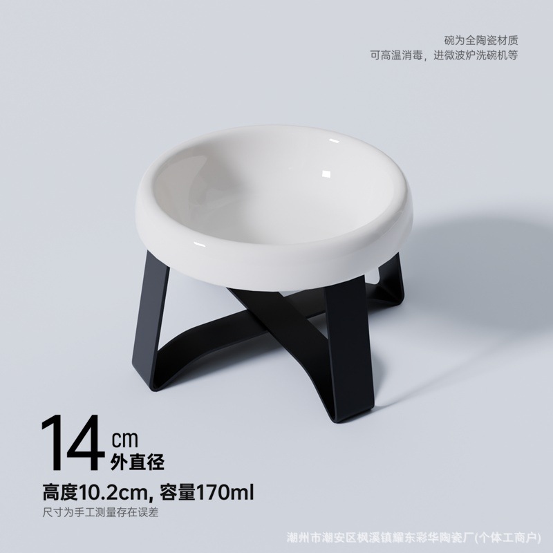 페콜로 정품 목 보호 높은 개 고양이 먹이 그릇 마시는 그릇 세라믹 고양이 그릇 검은 턱 보호 애완 동물 그릇 비행 접시 그릇스토어 가기