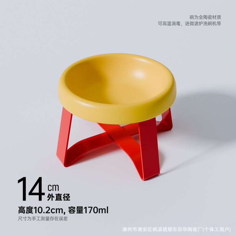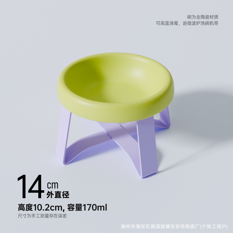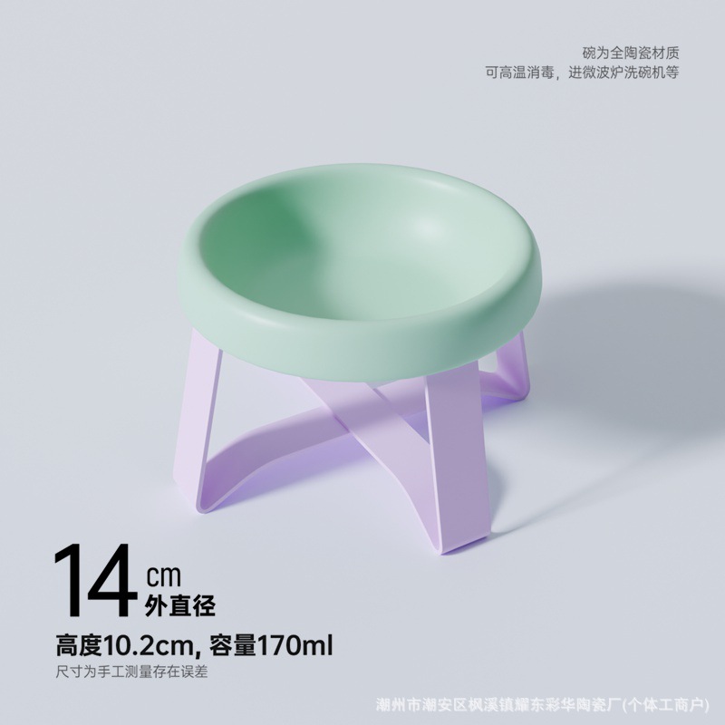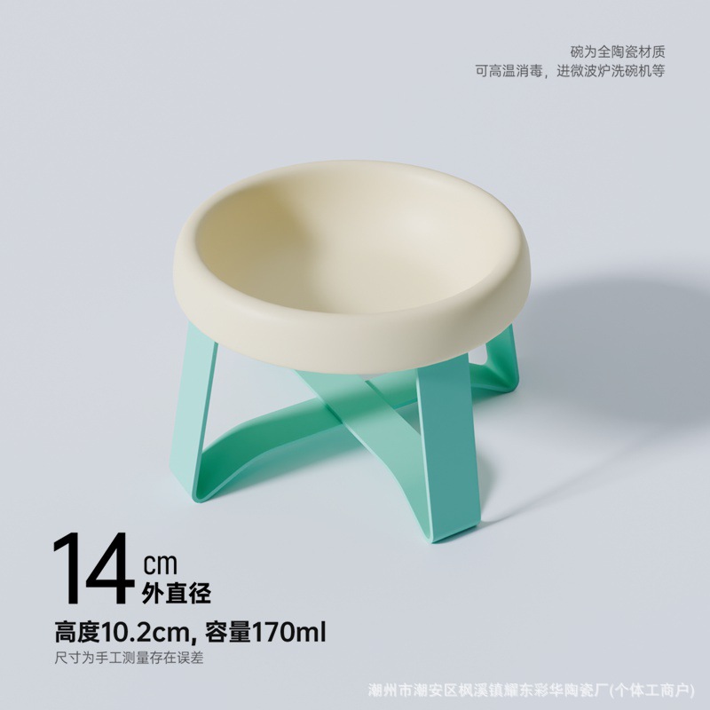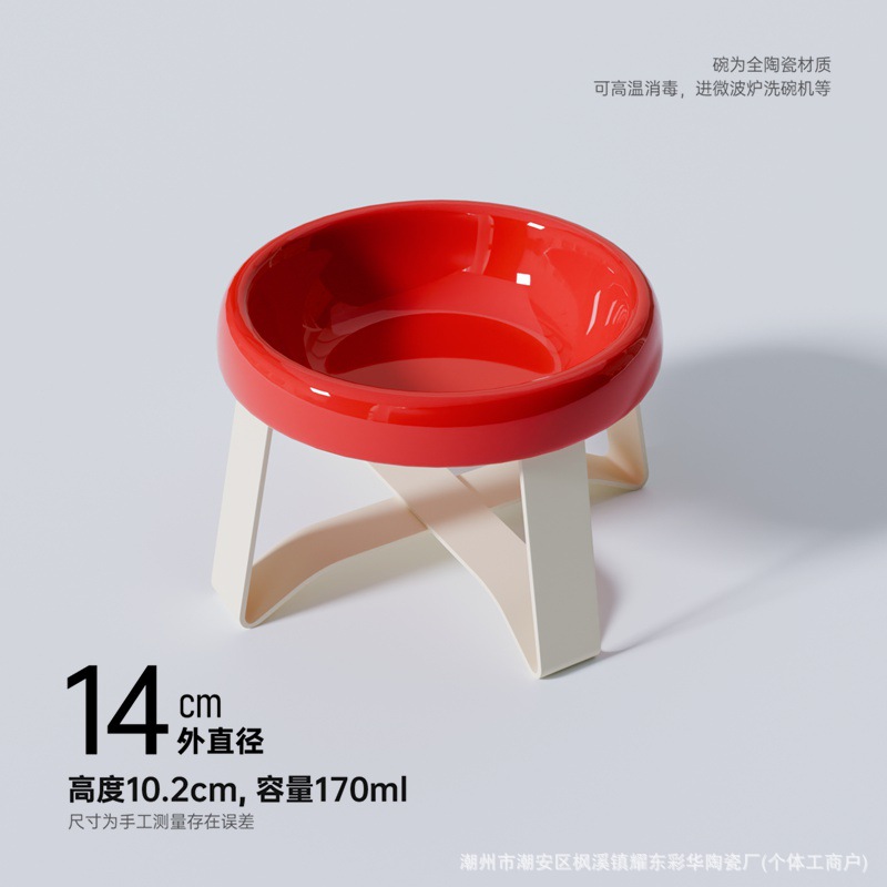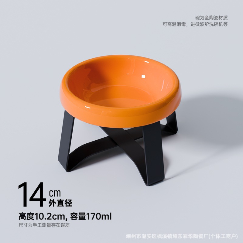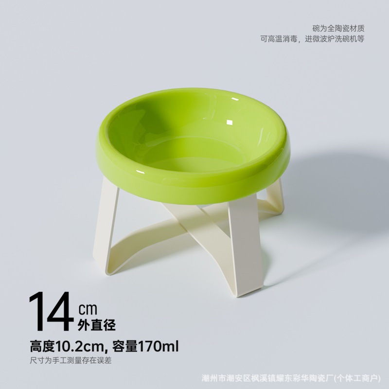 페콜로 정품 목 보호 높은 개 고양이 먹이 그릇 마시는 그릇 세라믹 고양이 그릇 검은 턱 보호 애완 동물 그릇 비행 접시 그릇스토어 가기