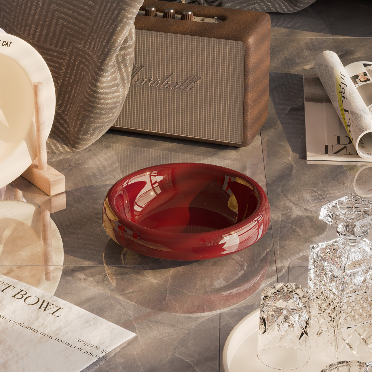 • 광택 있는 보라색 그릇 + 검정색 선반