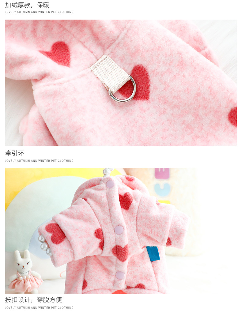 개 옷 가을과 겨울 옷 고양이 공주 핑크 모자 견인 작은 개 테디 애완 동물 6394