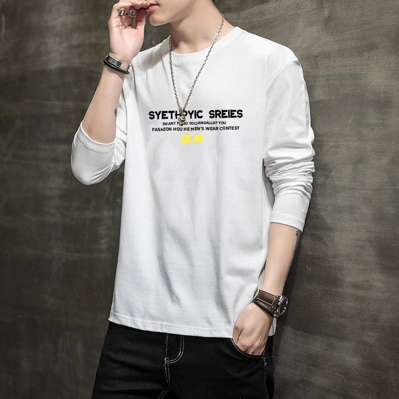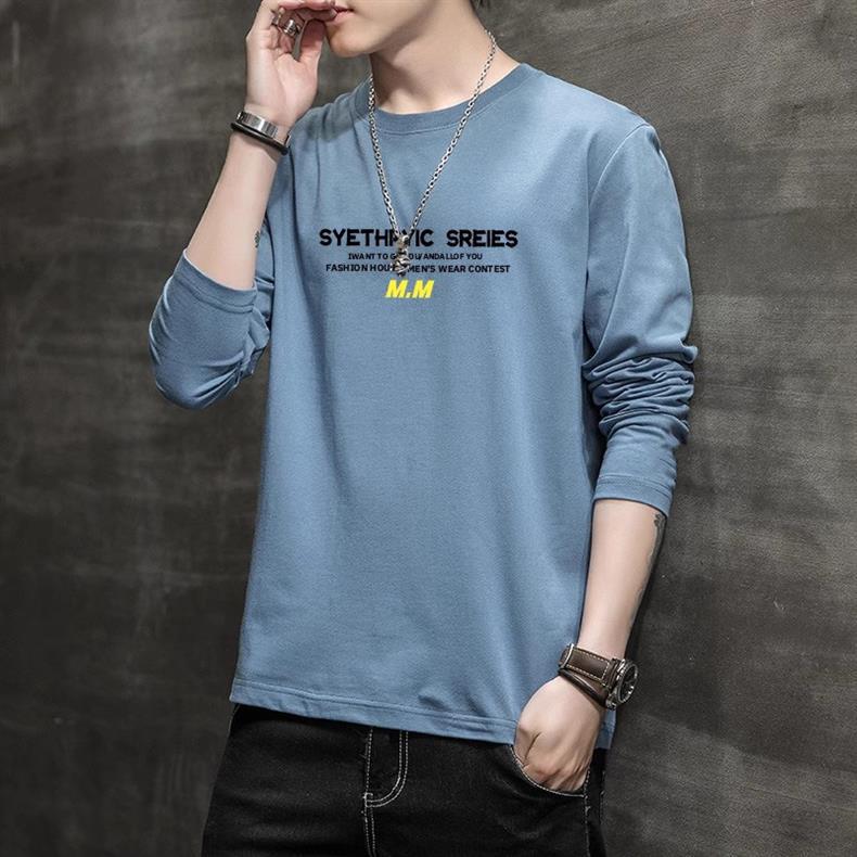 가을 뉴 남성 긴팔 티셔츠 트렌디 올 매치 티셔츠 슬림 핏 크루 넥 가을 옷베이스 셔츠 남성용 티셔츠 트렌디스토어 가기