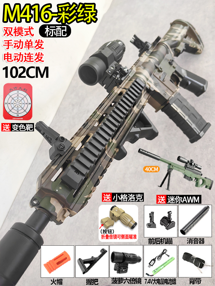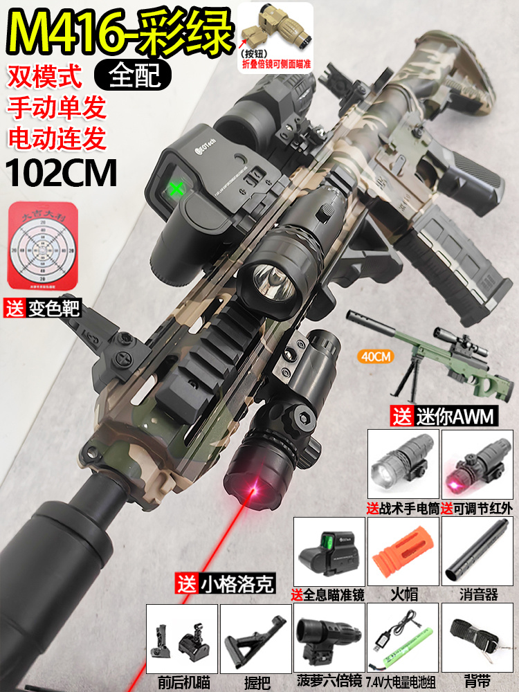 • [표준 구성] 대형 M416 그린(조절 가능한 파인애플 돋보기) - 수동 단발/전기 연속발(85cm)