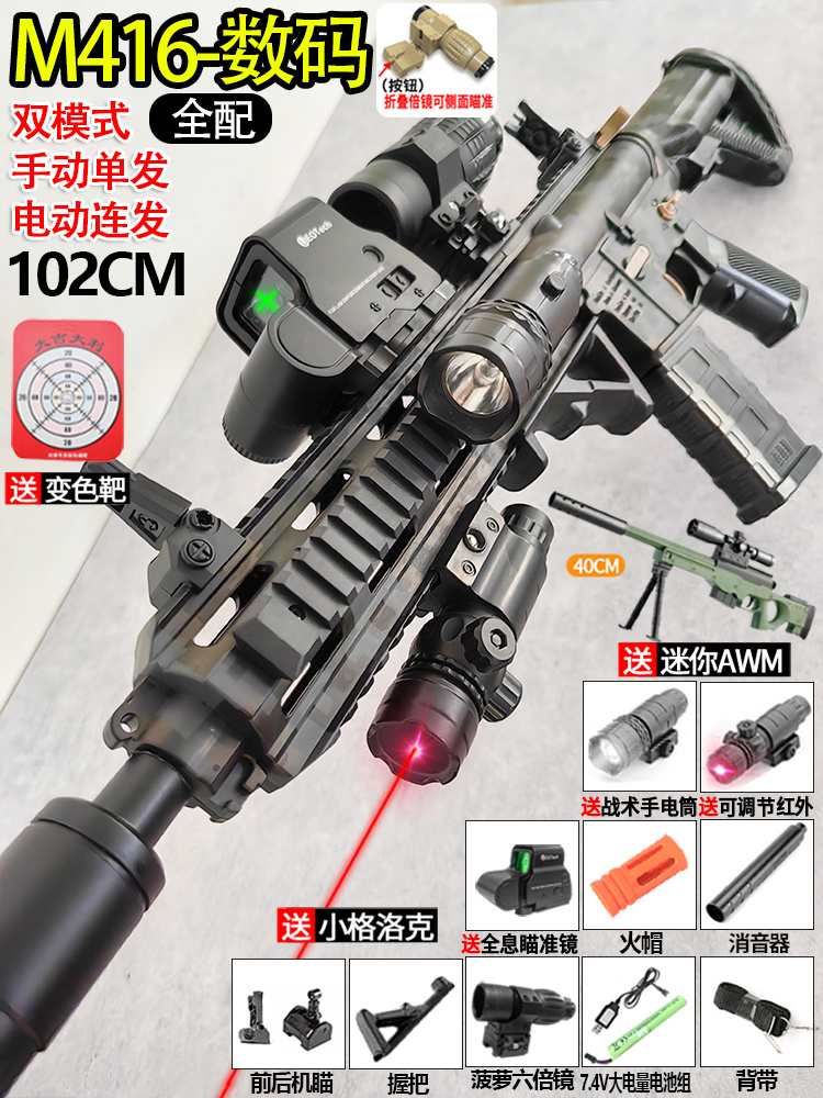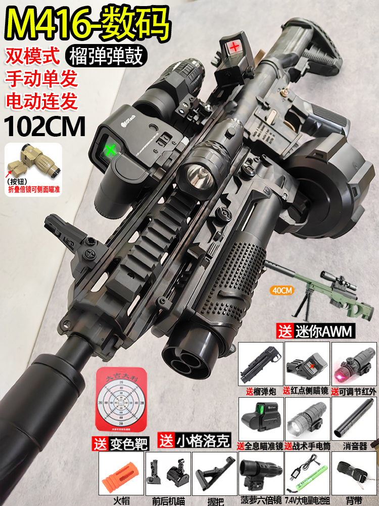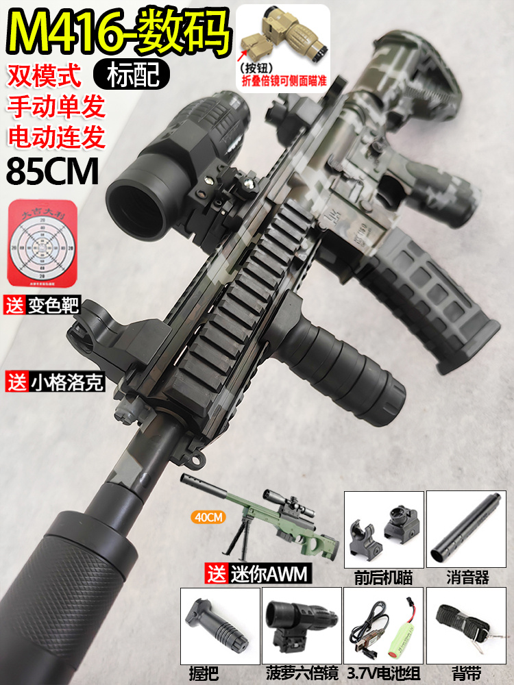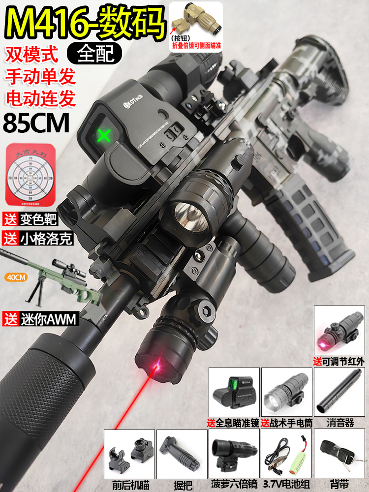 • [완전 구성 + 적외선 손전등 홀로그램] 대형 M416 디지털(조정 가능한 파인애플 돋보기) - 수동 단일/전기 버스트(85cm)