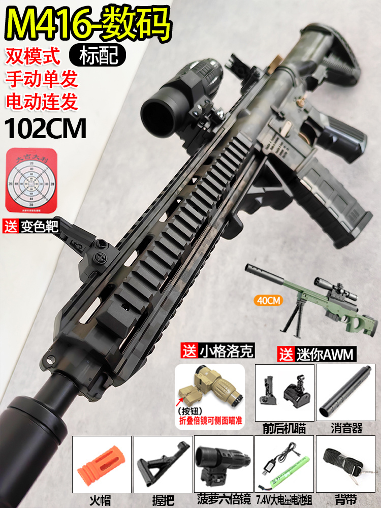 • [완전 구성 + 적외선 손전등 홀로그램] 확대된 M416 디지털(조정 가능한 파인애플 돋보기) - 수동 단일/전기 버스트(102cm)