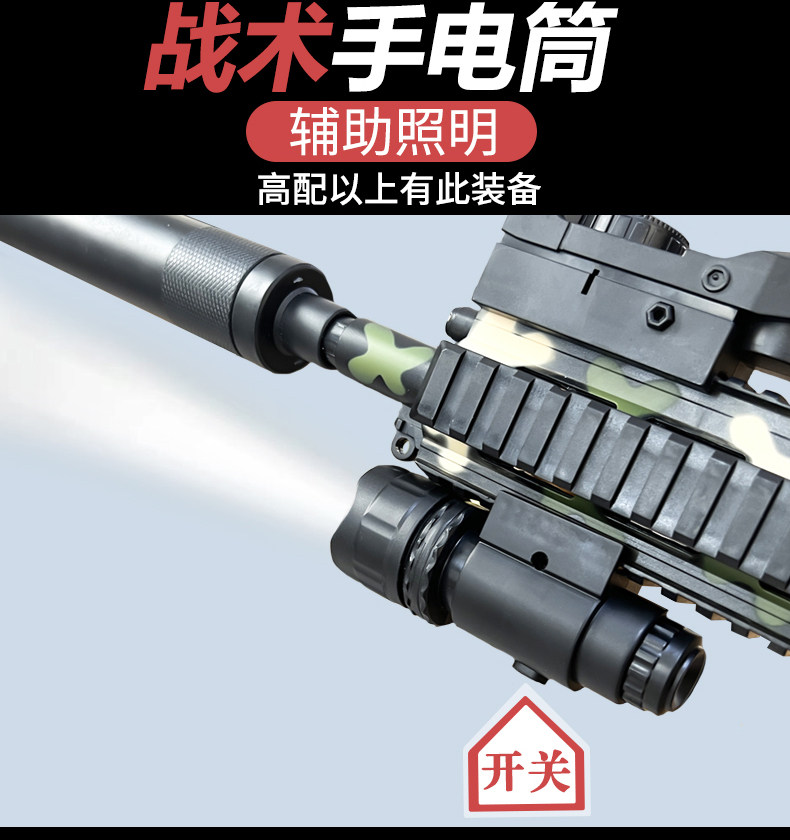 • 총알 10팩 + AWM + 핸드 그랩 + 예비 탄창 + 예비 배터리 + 다채로운 불을 뿜는 돼지 + 전술 상자 + 색상 변경 타겟 장착