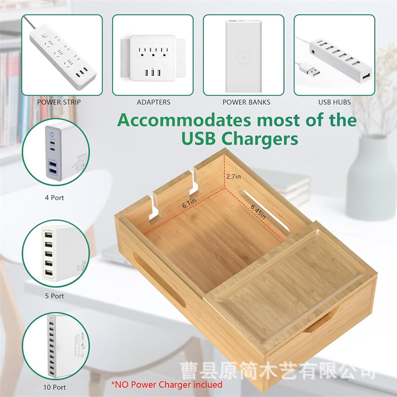대나무 충전 스테이션 데스크탑 휴대 전화 브래킷 멀티 그리드 스토리지 랙 서랍 유형 데이터 케이블 박스 솔리드 우드 스토리지 박스