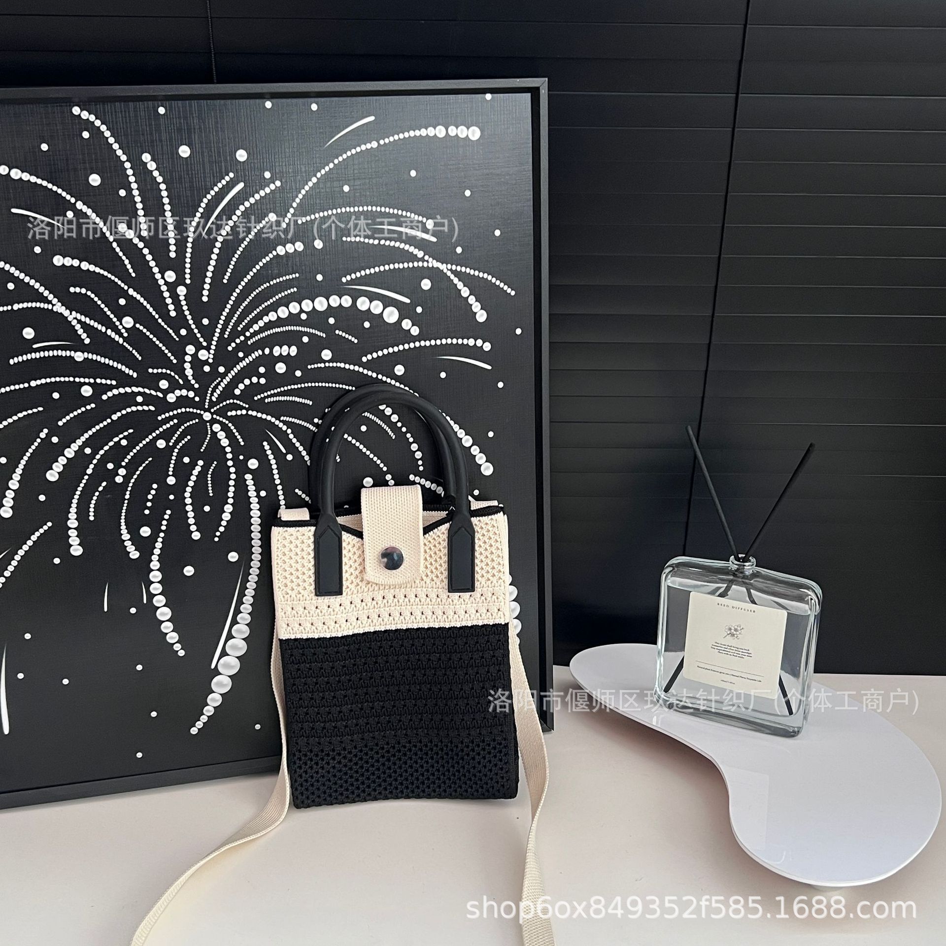 여름 미니 휴대용 소형 가방 2024 새로운 인기있는 짠 크로스 바디 니트 틈새 휴대 전화 가방스토어 가기