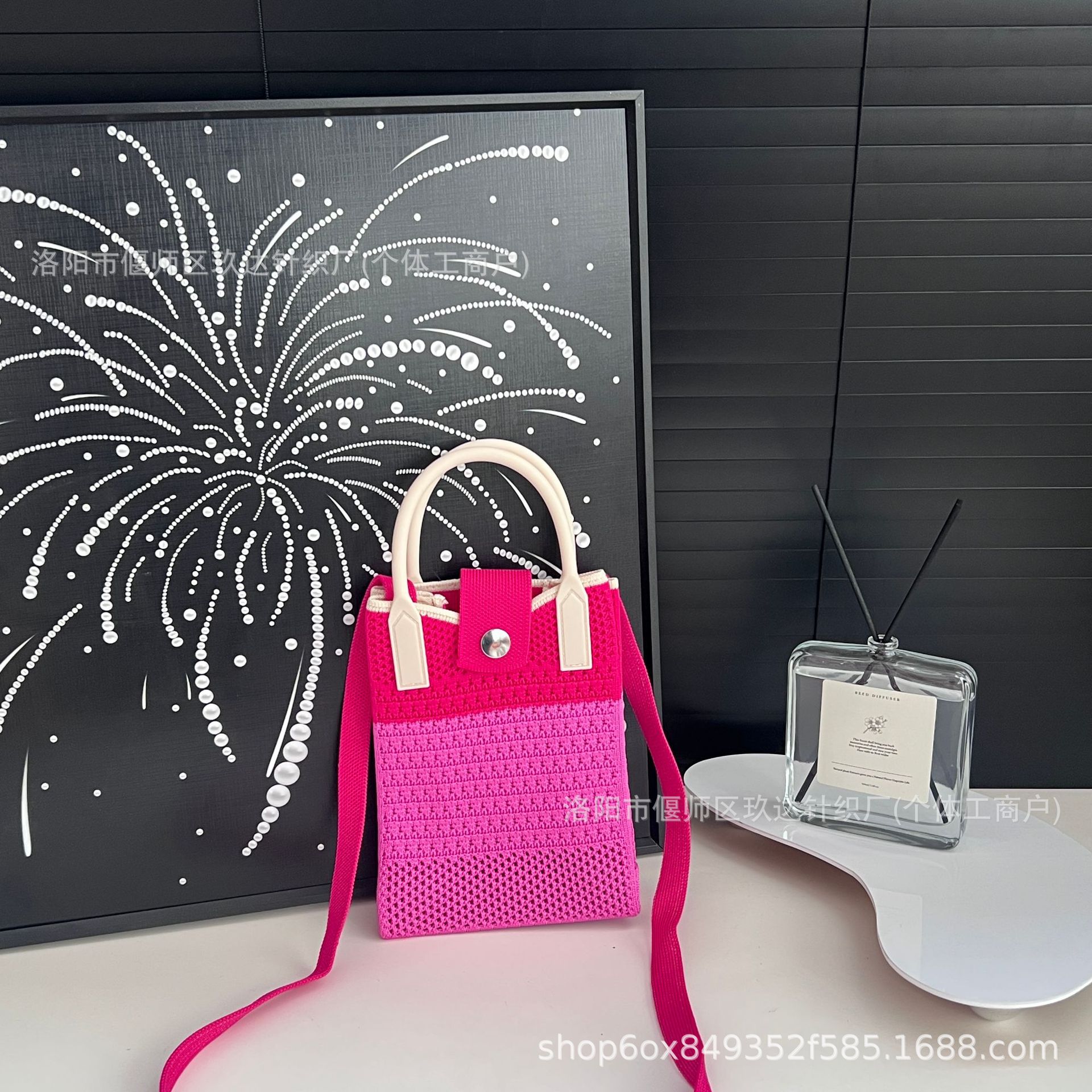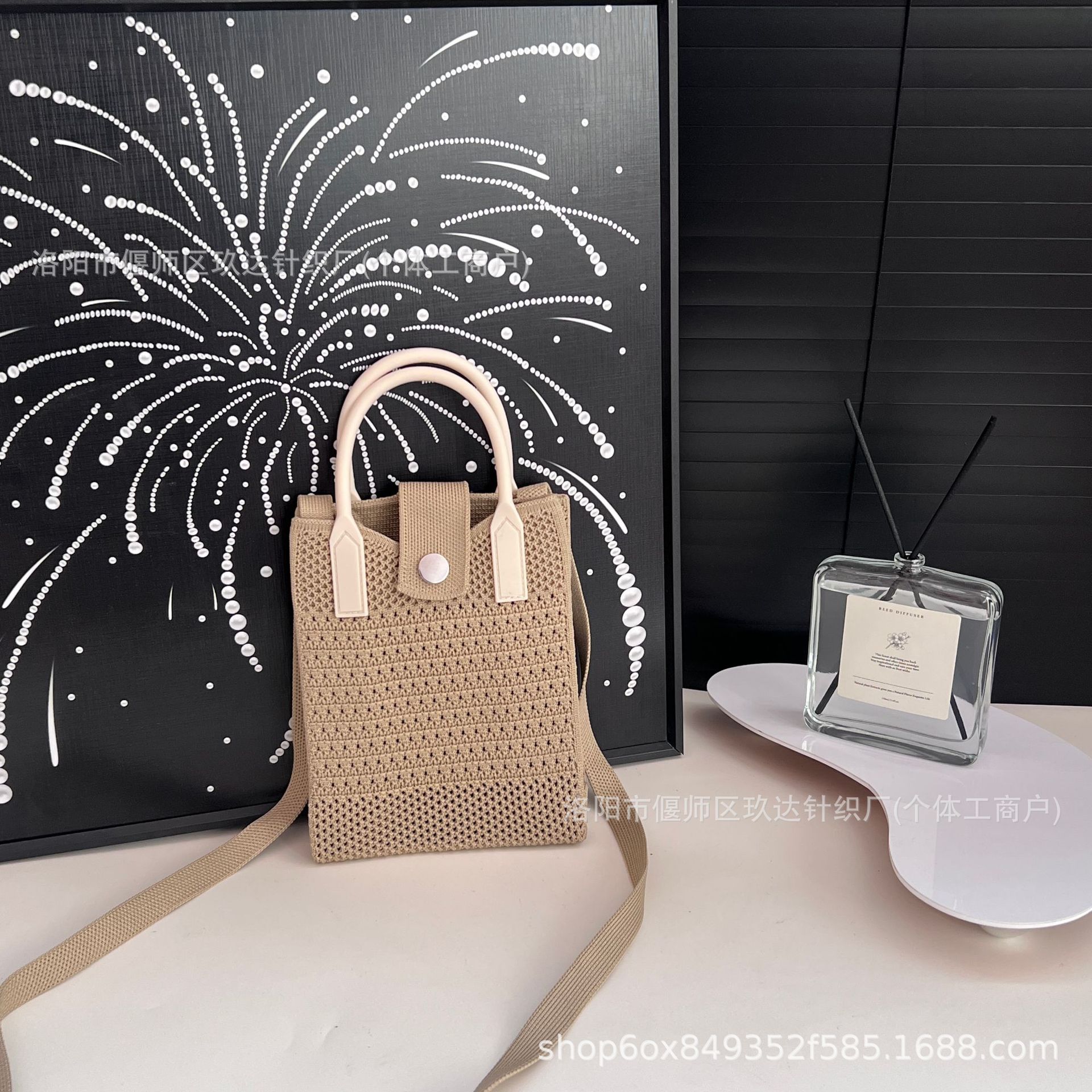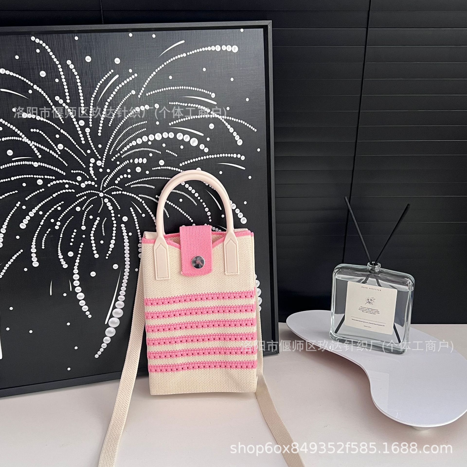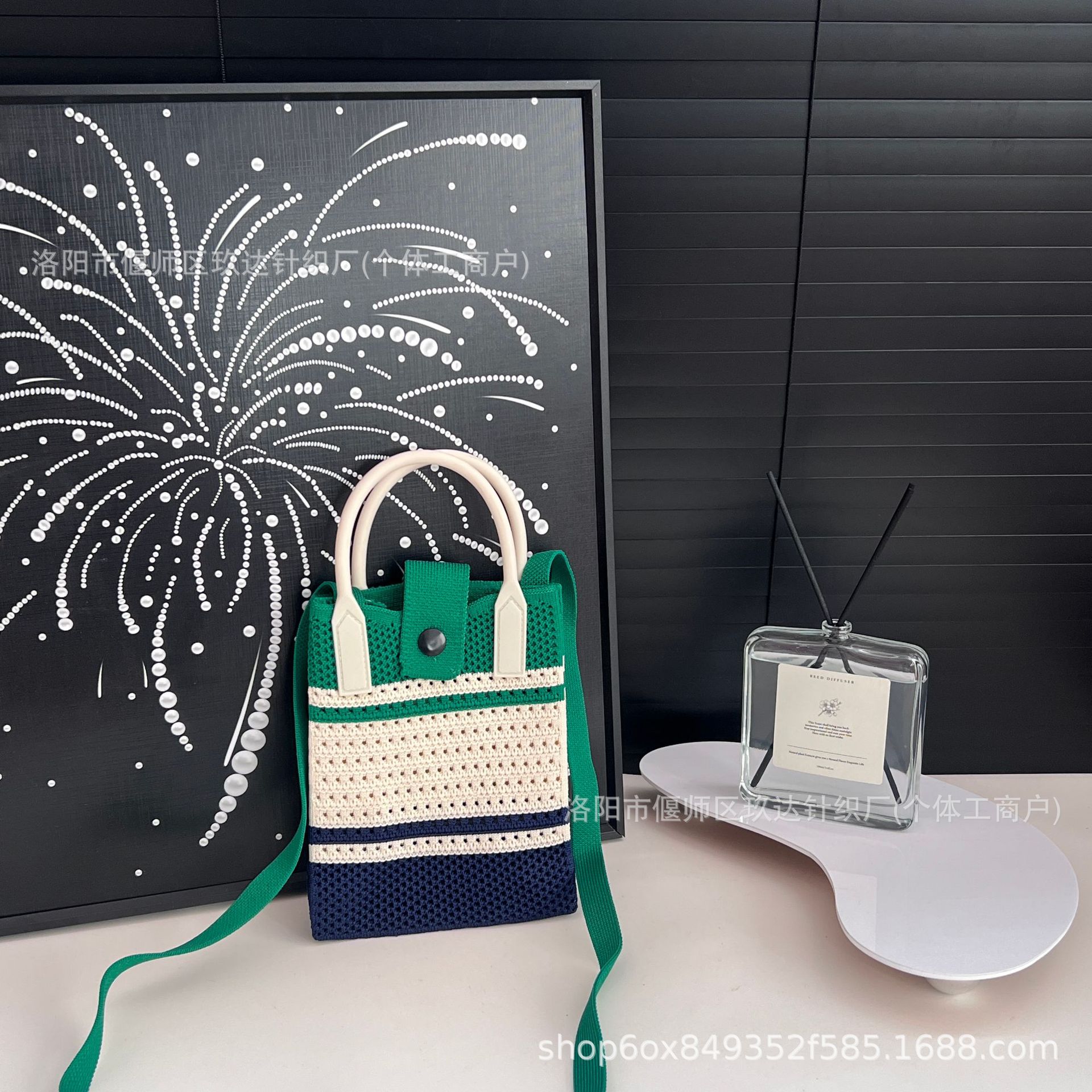 여름 미니 휴대용 소형 가방 2024 새로운 인기있는 짠 크로스 바디 니트 틈새 휴대 전화 가방