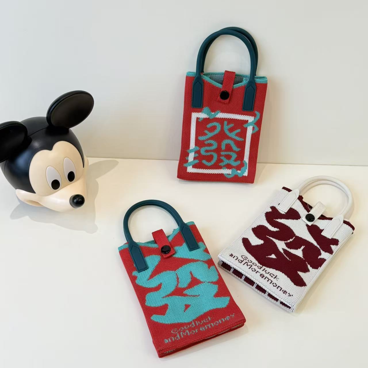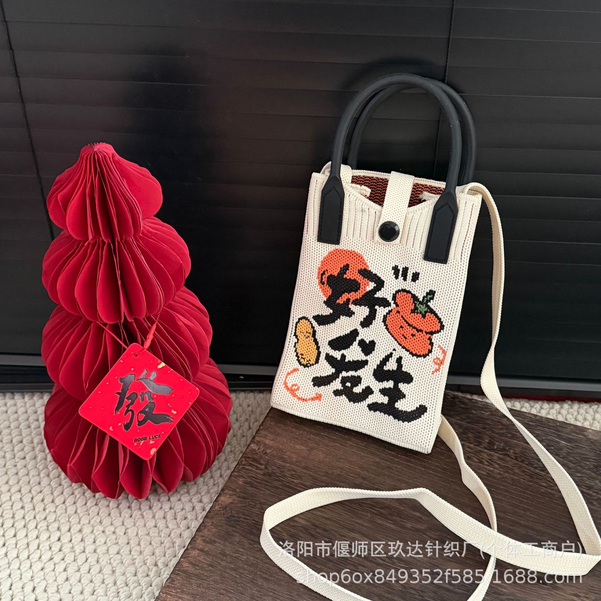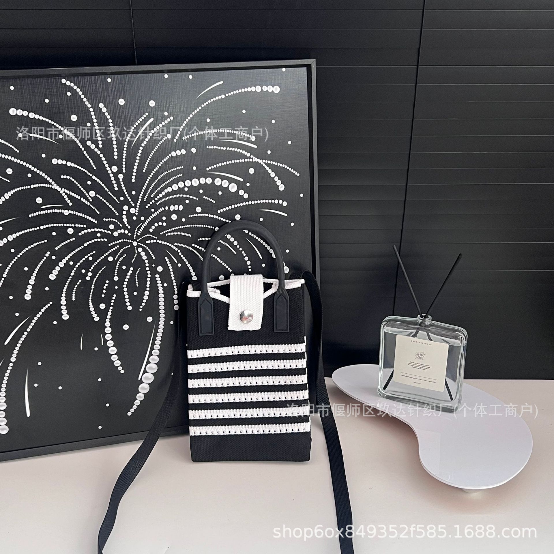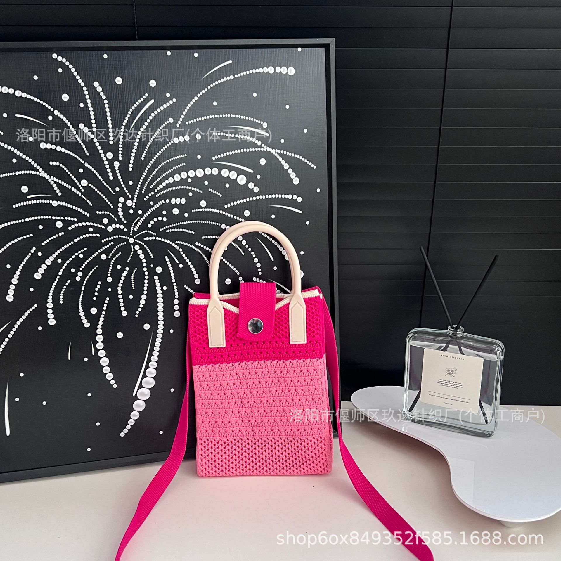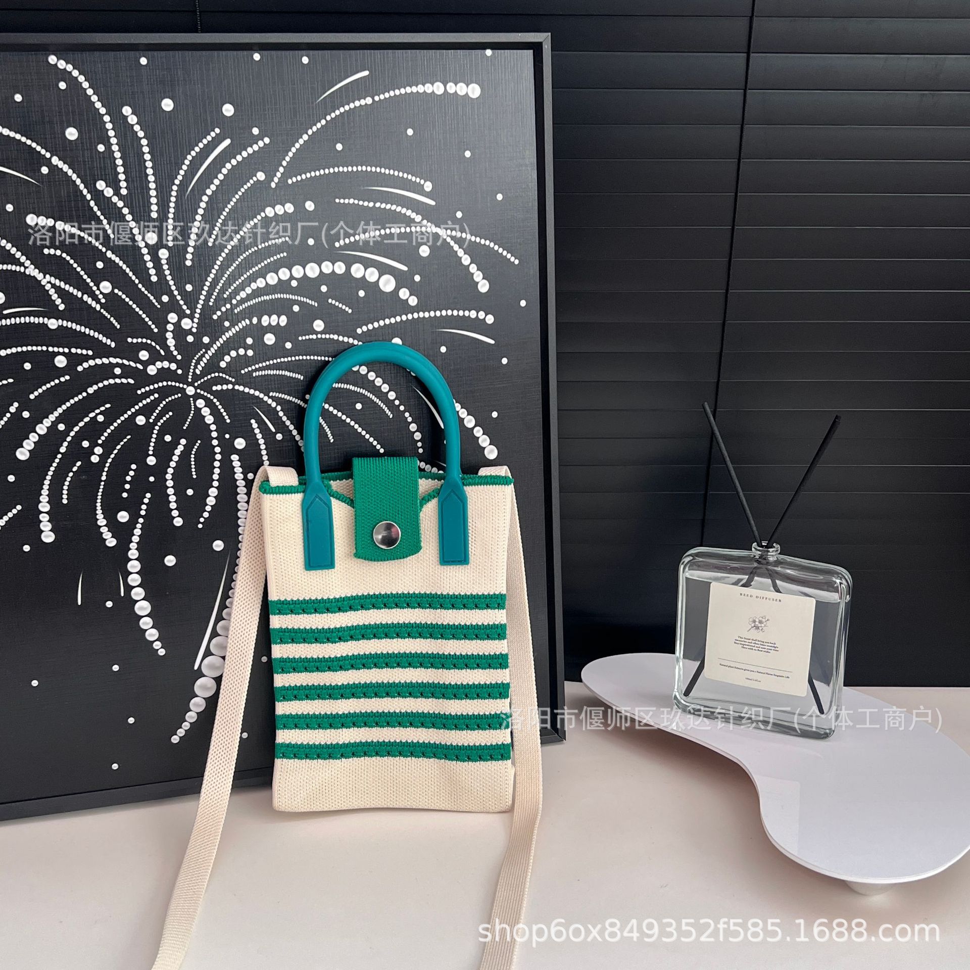여름 미니 휴대용 소형 가방 2024 새로운 인기있는 짠 크로스 바디 니트 틈새 휴대 전화 가방